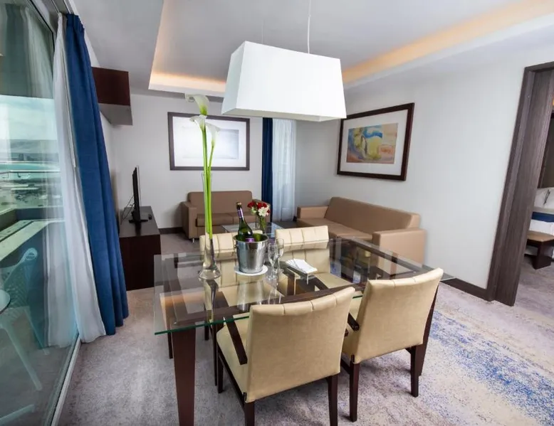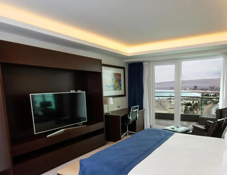 Elegant Accommodations: Antay Hotel & Spa in Arica offers luxurious rooms with sea views, air-conditioning, and private balconies. Each room includes a mini-bar, flat-screen TV, and free WiFi, ensuring a comfortable stay. Exceptional Facilities: Guests can enjoy spa facilities, a sauna, fitness center, sun terrace, and lush gardens. The hotel features a year-round outdoor and indoor swimming pool, hot tub, and steam room. Additional amenities include a casino, nightclub, and yoga classes. Dining Experience: The on-site restaurant serves local cuisine with continental, American, and buffet breakfast options. Breakfast includes local specialties, juice, pancakes, cheese, and fruits. The bar offers a variety of beverages in a relaxed setting. Prime Location: Located 7.5 mi from Chacalluta International Airport, the hotel is close to attractions such as Chinchorro Beach (less than 0.6 mi) and Arica Port (14-minute walk). Nearby points of interest include the Cathedral of San Marcos de Arica and Arms and Historical Museum. Guests will have a special experience as this double room features a pool with a view. The spacious double room offers air conditioning, a mini-bar, a terrace with sea views as well as a private bathroom featuring a shower. The unit offers 1 bed.