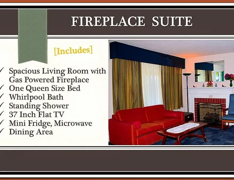 Comfortable Accommodations: The Cardinal Inn in Luray offers adults-only rooms with private bathrooms, air-conditioning, and free WiFi. Each room includes a dining table, work desk, and soundproofing for a restful stay. Outdoor Spaces: Guests can relax on the terrace or enjoy the outdoor seating area and picnic spots. The inn features a hot tub, balcony, and spa bath, perfect for unwinding after a day of exploration. Convenient Amenities: The property offers free on-site private parking, an electric vehicle charging station, and barbecue facilities. Additional amenities include a refrigerator, microwave, and TV, ensuring a comfortable stay. Local Attractions: Located 3.7 mi from Luray Caverns and 48 mi from Shenandoah Valley Regional Airport, the inn is close to Pinnacles Viewpoint (12 mi) and Massanutten Resort Water Park (30 mi). Guests appreciate the room cleanliness and convenient location for nature trips. A fireplace, spa bath, microwave and refrigerator are featured in this room.