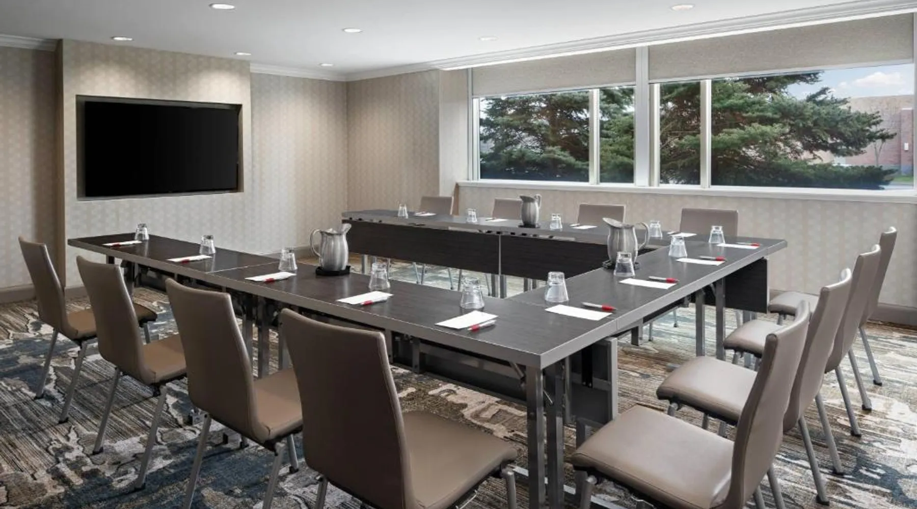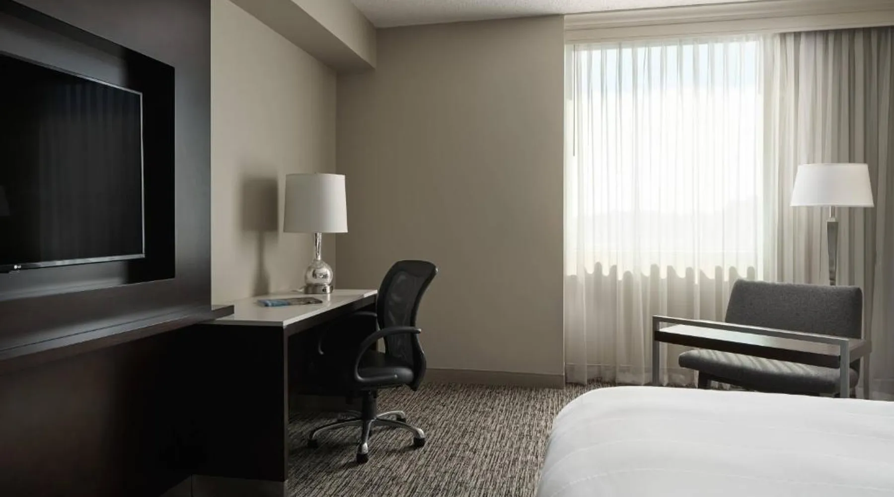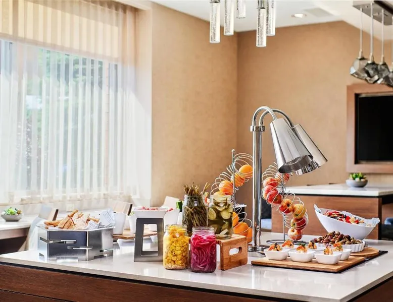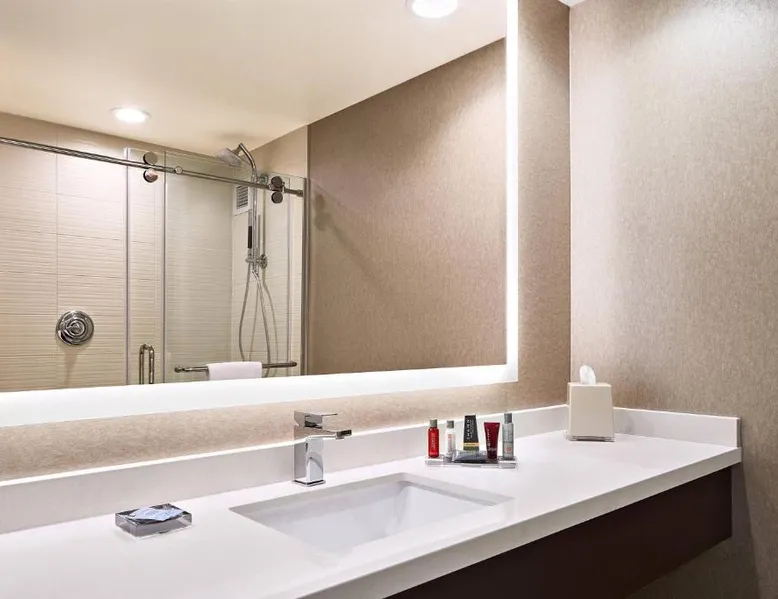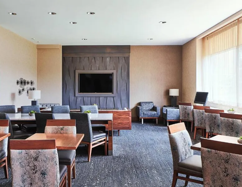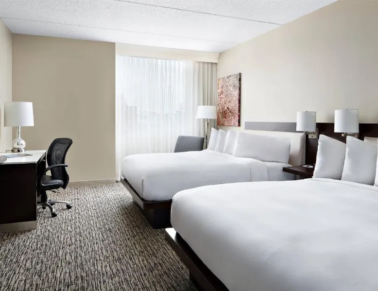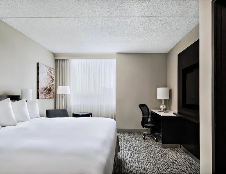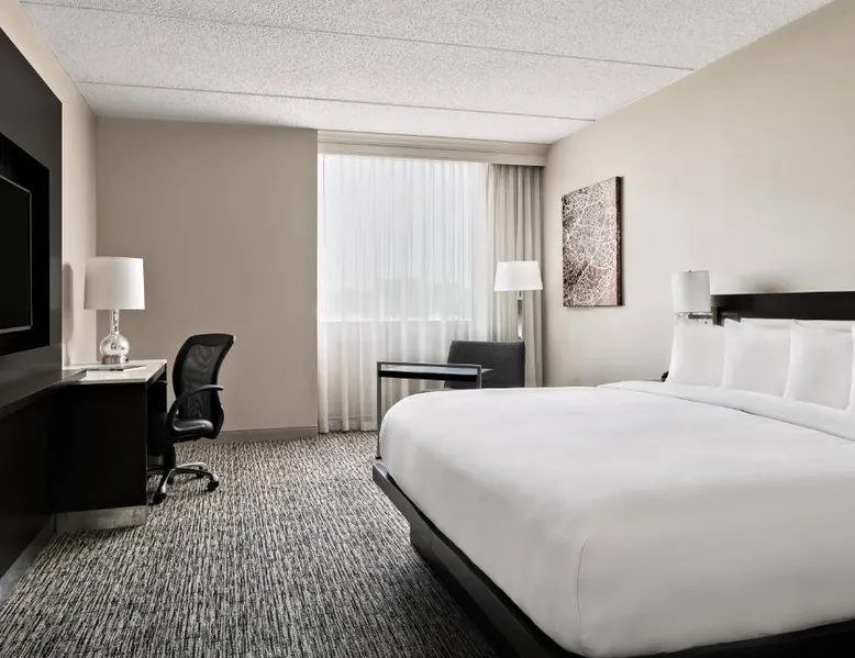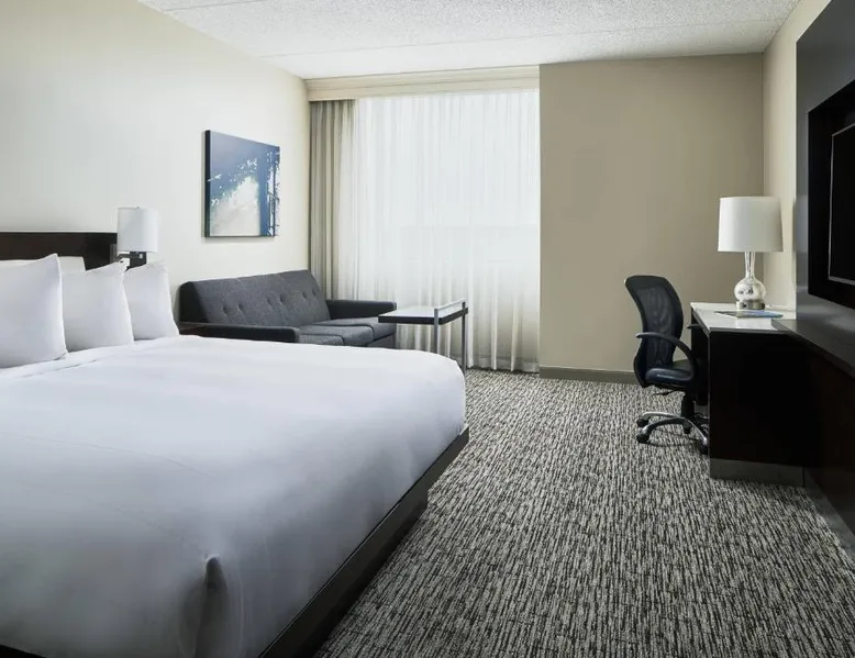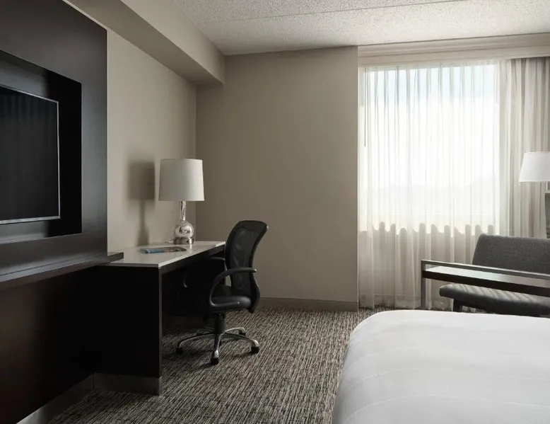 Comfortable Accommodations: Cleveland Marriott East in Warrensville Heights offers air-conditioned rooms with private bathrooms, bathrobes, and free toiletries. Each room includes a work desk, TV, and wardrobe, ensuring a pleasant stay. Dining and Leisure: Guests can enjoy an à la carte breakfast, lunch, and dinner at the modern, family-friendly restaurant. The hotel features a fitness center, indoor swimming pool, bar, and lounge. Additional amenities include a minimarket, coffee shop, and free on-site private parking. Prime Location: Located 9.3 mi from the Cleveland Orchestra and Cleveland Botanical Garden, the hotel is also close to the Cleveland Museum of Art and Rock and Roll Hall of Fame. Free WiFi is available throughout the property. Exceptional Service: Highly rated for its attentive staff and excellent service support, Cleveland Marriott East ensures a comfortable and memorable stay for all guests. This room features a flat-screen TV with satellite channels, desk and seating area.