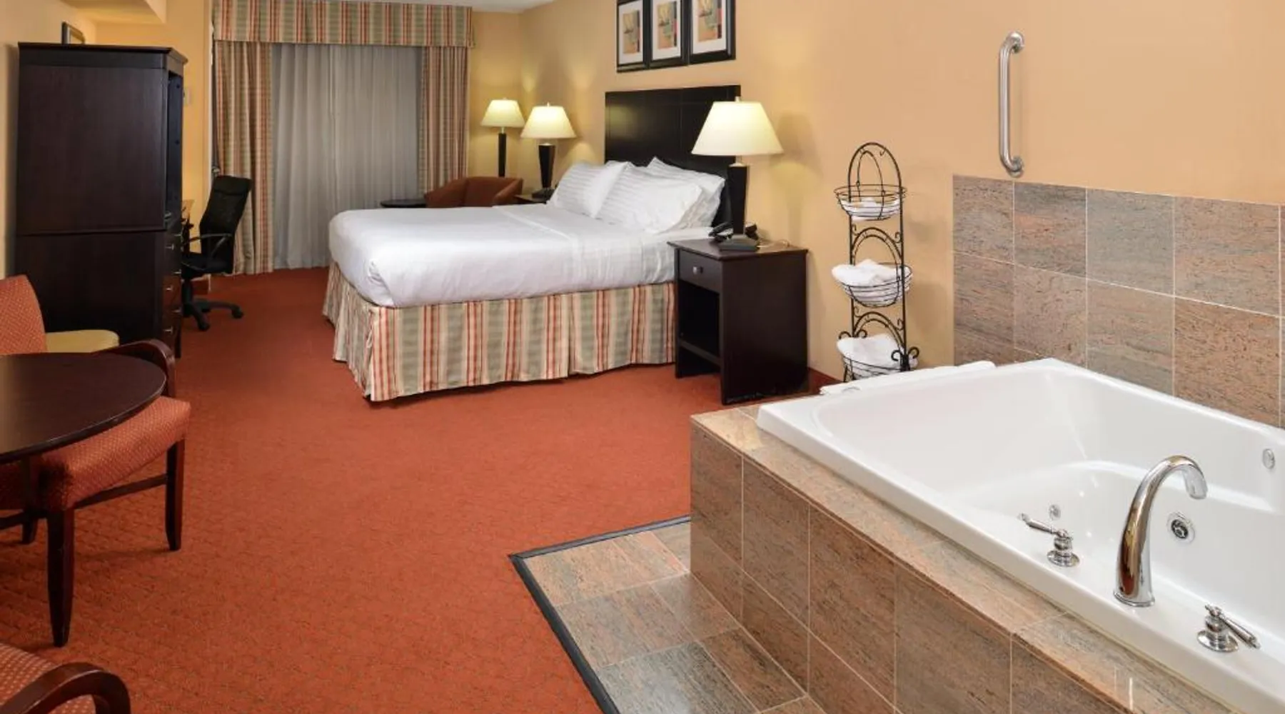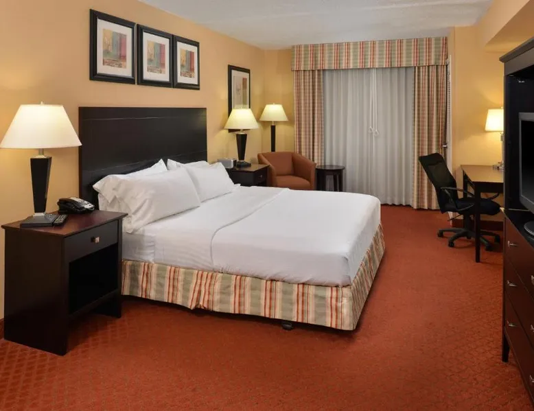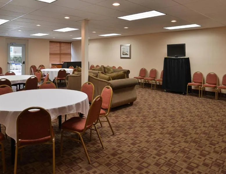 Comfortable Accommodations: Holiday Inn Martinsburg by IHG in Martinsburg offers air-conditioned rooms with private bathrooms, free WiFi, and modern amenities. Each room includes a work desk, TV, and complimentary toiletries. Dining and Leisure: Guests can enjoy a saltwater swimming pool, indoor pool, and fitness room. The family-friendly restaurant serves American cuisine with vegetarian and gluten-free options. Live music and a bar enhance the dining experience. Convenient Location: Located 24 mi from Hagerstown Regional Airport, the hotel is near attractions such as Queen Street Gallery (1.7 mi) and Antietam National Battlefield (15 mi). Free on-site parking and fishing activities are available. Bedding is determined upon check-in and based on availability.