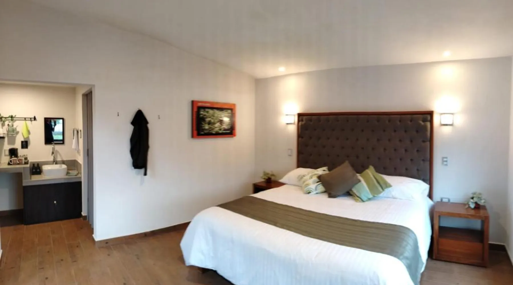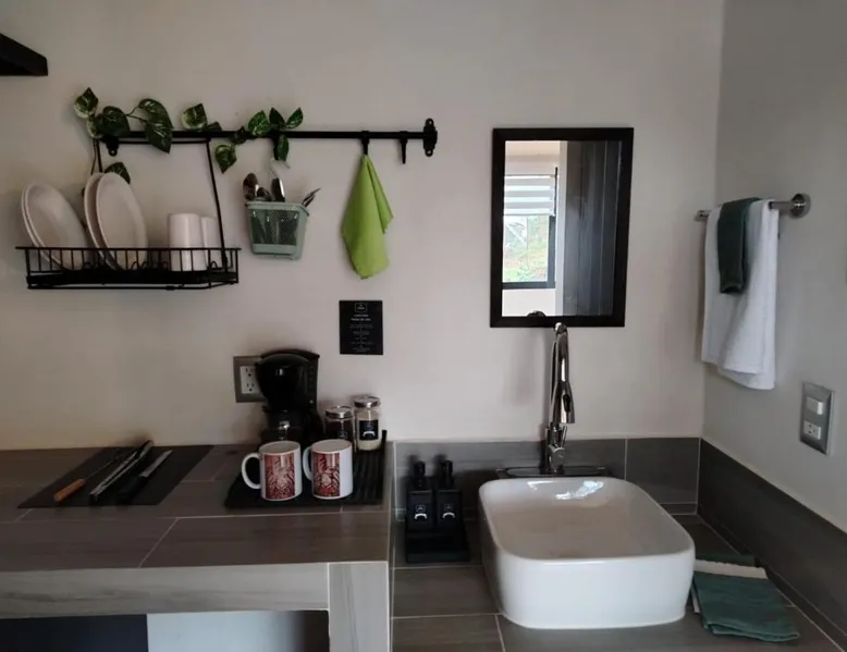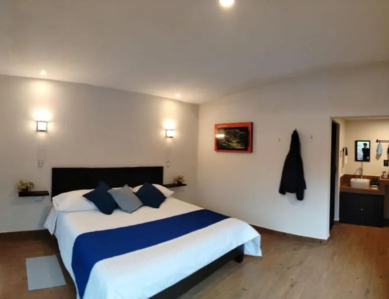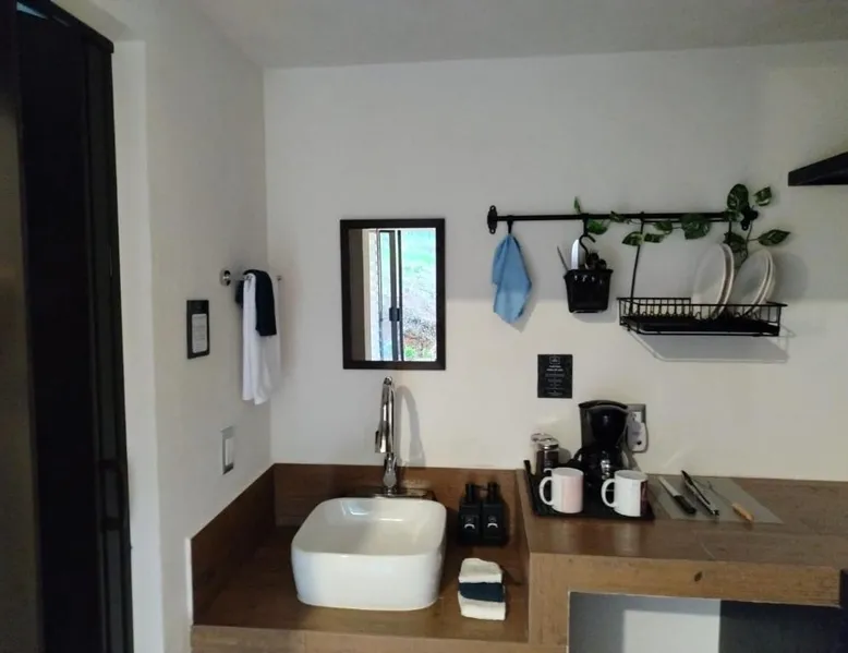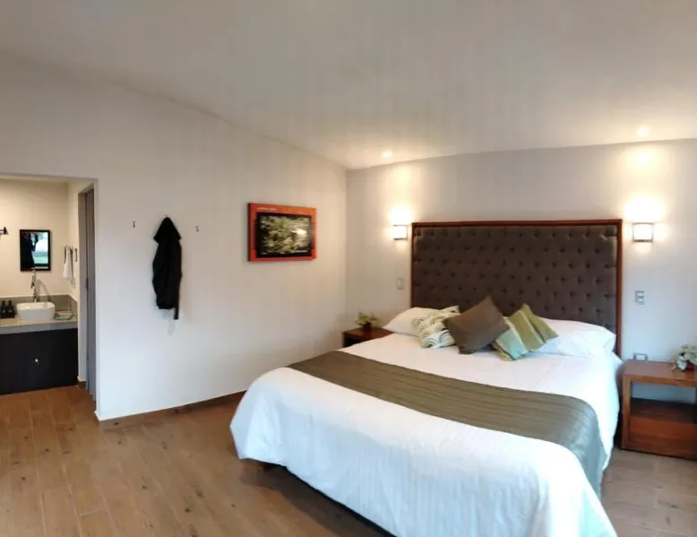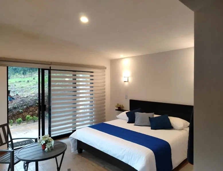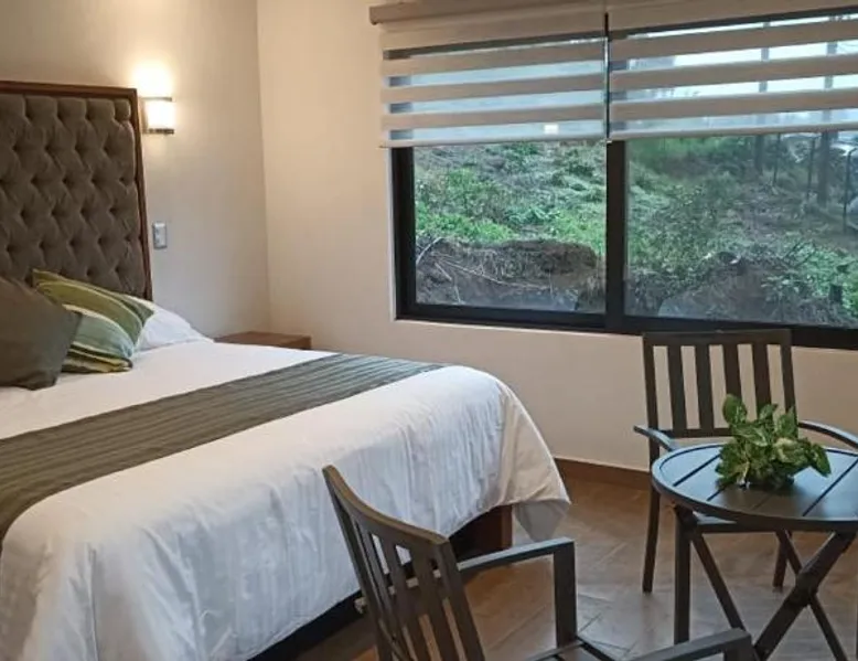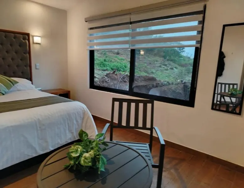 Comfortable Accommodations: Cabañas y Camping Aroma in Puebla offers family rooms with private bathrooms, garden views, and modern amenities. Each room includes a kitchen, refrigerator, and free toiletries. Outdoor Spaces: Guests can relax on the sun terrace or in the garden. The property features an outdoor fireplace, seating area, and barbecue facilities. Free WiFi is available throughout the camping. Convenient Services: Private check-in and check-out, full-day security, and free on-site parking enhance the stay. Additional services include bicycle parking, luggage storage, and walking tours. Guest Favorites: Guests appreciate the room comfort, attentive staff, and excellent service support. This bungalow is consisted of of 1 living room, 2 separate bedrooms and 2 bathrooms with a shower and free toiletries. Guests will find a refrigerator and kitchenware in the kitchen. The bungalow also has a barbecue. The bungalow features a tea and coffee maker, a seating area, a dining area as well as a terrace with garden views. The unit offers 4 beds.
