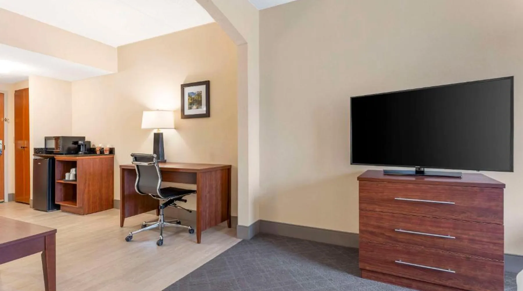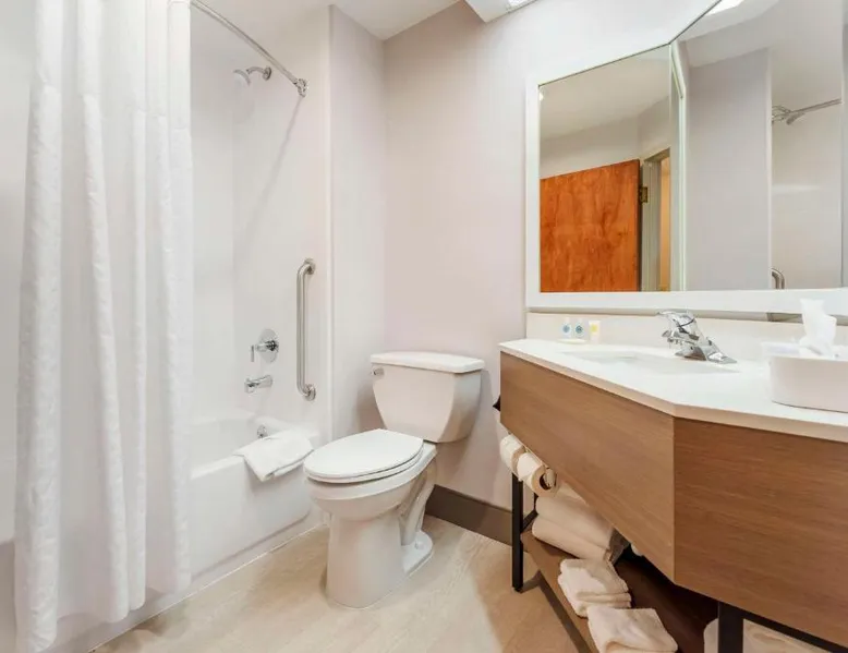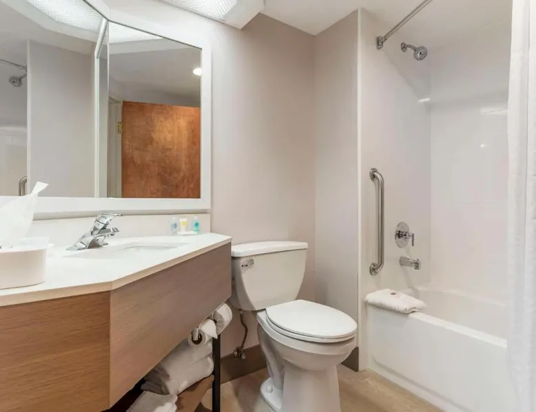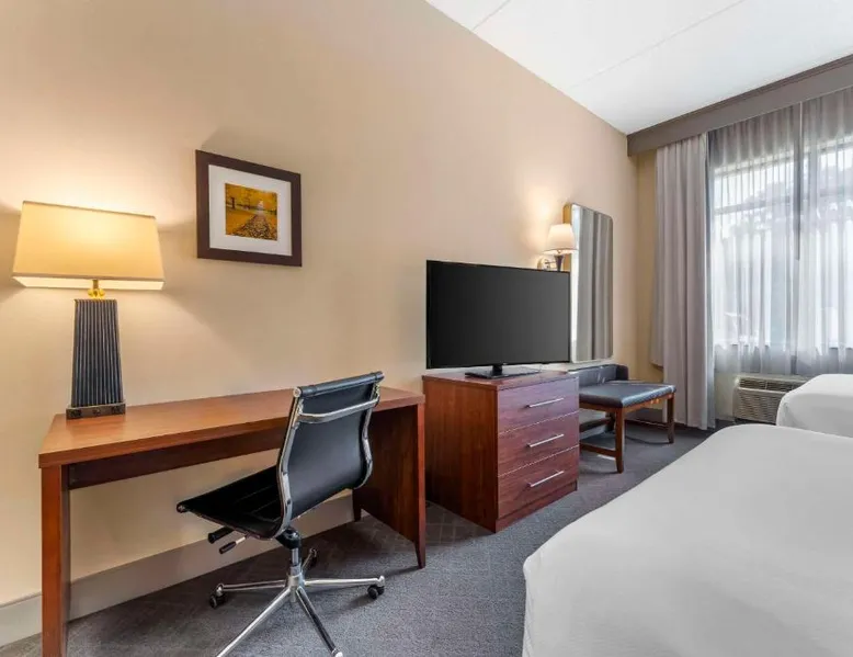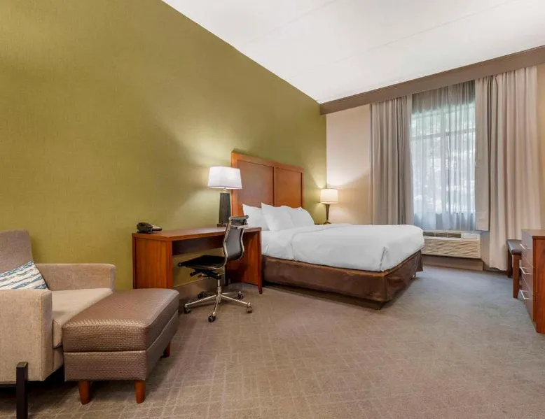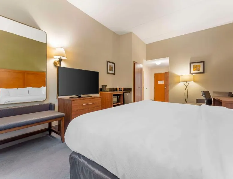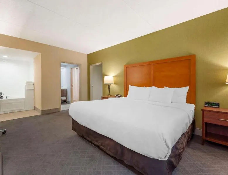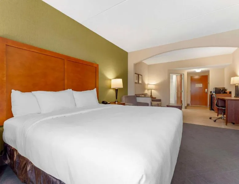 The Comfort Inn & Suites hotel, Completely Renovated, located off of Interstate 68 on historic U.S. Route 40, is just three minutes west of historic downtown Cumberland. This Lavale, MD hotel is minutes from the Western Maryland Scenic Railroad, offering three centuries of transportation history, scenic excursions and first-class dining cars, as well as murder mystery dinner shows. Enjoy our free hot breakfast featuring eggs, meat, yogurt, fresh fruit, cereal and more, including your choice of hot waffle flavors! For business travelers, the hotel provides conveniences like free high-speed Internet access, a public computer kiosk in the lobby, voice mail, multiple telephone lines, and access to fax and copy services. Banquet and meeting rooms are available for most events and business functions. All guest rooms come equipped with microwaves, refrigerators, coffee makers, hair dryers, irons, ironing boards and *42-inch flat-screen televisions with DirecTV*. In addition to standard amenities, some rooms feature whirlpool bathtubs. Additional full-service amenities and features include free coffee, free local calls, an indoor heated pool, hot tub and a 24-hour fitness center. Outdoor enthusiasts can enjoy hiking or biking on the Allegheny Highlands Trail of Maryland (AHTM), the Great Allegheny Passage and the Chesapeake and Ohio Canal National Historic Park trails (C&O Canal). Additional outdoor activities include golfing on the "Golden Bear" Jack Nicklaus Signature Golf Course at Rocky Gap, boating on Deep Creek Lake and skiing at the Wisp Resort ski and golf destination. Additional nearby points of interest include Frostburg State University, Allegany College of Maryland, New Embassy Theater, George Washington's Office Museum, Canal Place Heritage Area. This single room's special feature is the spa bath. This single room is air-conditioned and features a flat-screen TV with cable channels, a tea and coffee maker, a wardrobe and a carpeted floor. The unit offers 1 bed.