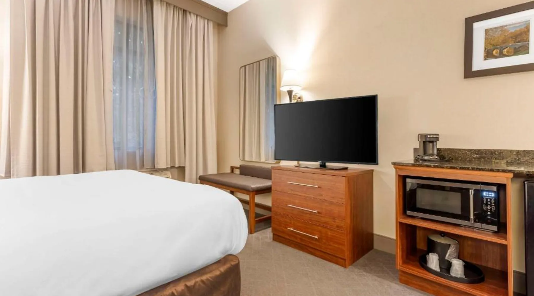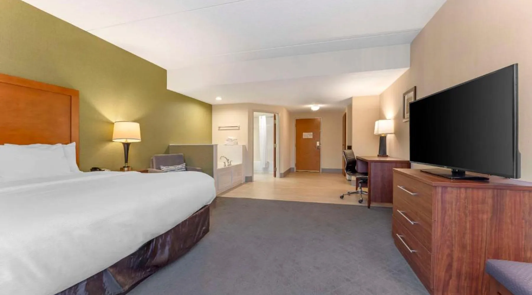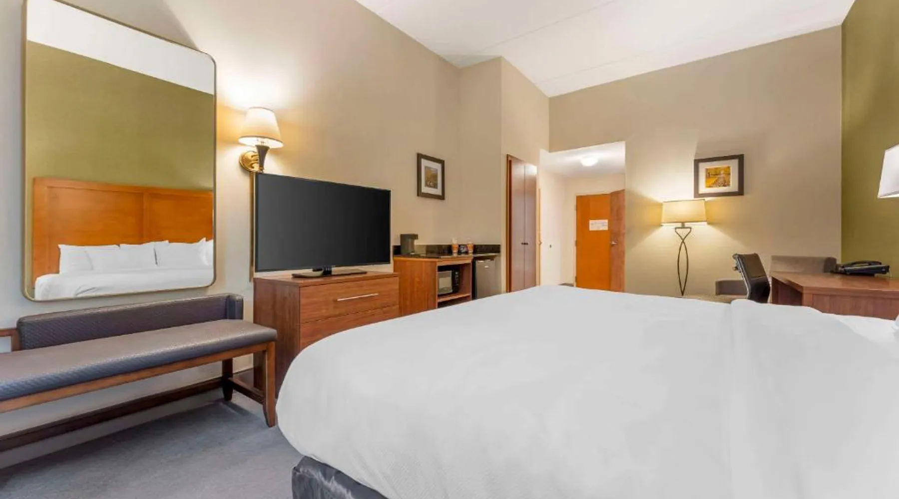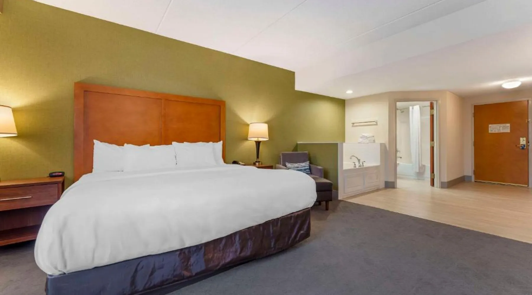 The Comfort Inn & Suites hotel, Completely Renovated, located off of Interstate 68 on historic U.S. Route 40, is just three minutes west of historic downtown Cumberland. This Lavale, MD hotel is minutes from the Western Maryland Scenic Railroad, offering three centuries of transportation history, scenic excursions and first-class dining cars, as well as murder mystery dinner shows. Enjoy our free hot breakfast featuring eggs, meat, yogurt, fresh fruit, cereal and more, including your choice of hot waffle flavors! For business travelers, the hotel provides conveniences like free high-speed Internet access, a public computer kiosk in the lobby, voice mail, multiple telephone lines, and access to fax and copy services. Banquet and meeting rooms are available for most events and business functions. All guest rooms come equipped with microwaves, refrigerators, coffee makers, hair dryers, irons, ironing boards and *42-inch flat-screen televisions with DirecTV*. In addition to standard amenities, some rooms feature whirlpool bathtubs. Additional full-service amenities and features include free coffee, free local calls, an indoor heated pool, hot tub and a 24-hour fitness center. Outdoor enthusiasts can enjoy hiking or biking on the Allegheny Highlands Trail of Maryland (AHTM), the Great Allegheny Passage and the Chesapeake and Ohio Canal National Historic Park trails (C&O Canal). Additional outdoor activities include golfing on the "Golden Bear" Jack Nicklaus Signature Golf Course at Rocky Gap, boating on Deep Creek Lake and skiing at the Wisp Resort ski and golf destination. Additional nearby points of interest include Frostburg State University, Allegany College of Maryland, New Embassy Theater, George Washington's Office Museum, Canal Place Heritage Area. This single room's special feature is the spa bath. This single room is air-conditioned and features a flat-screen TV with cable channels, a tea and coffee maker, a wardrobe and a carpeted floor. The unit offers 1 bed.