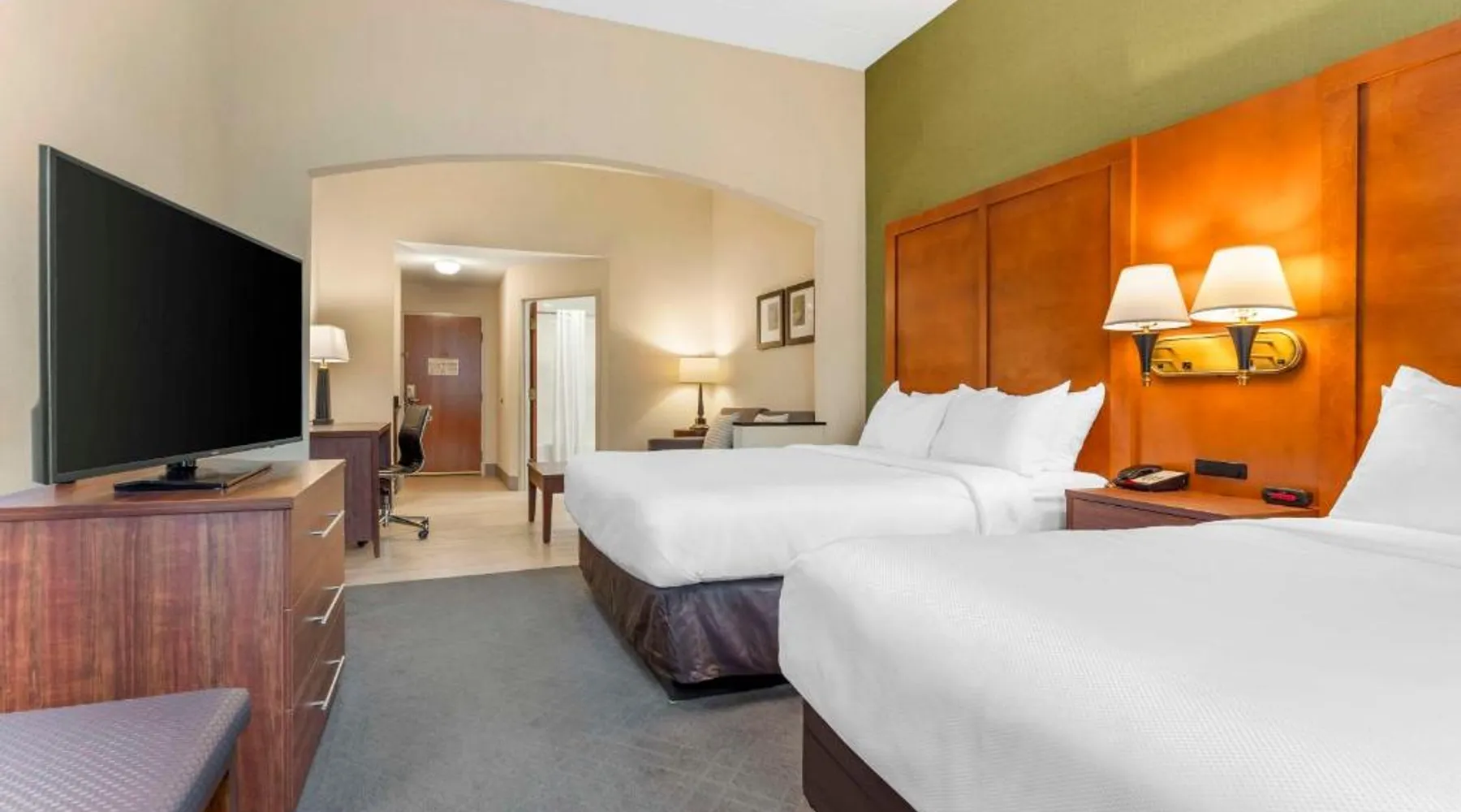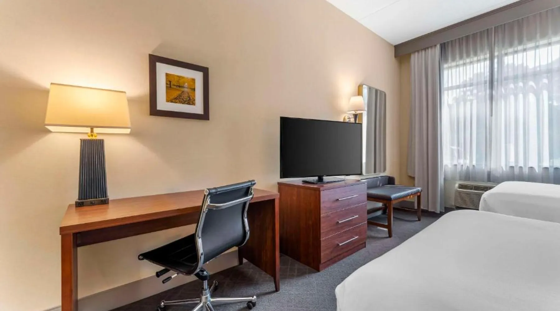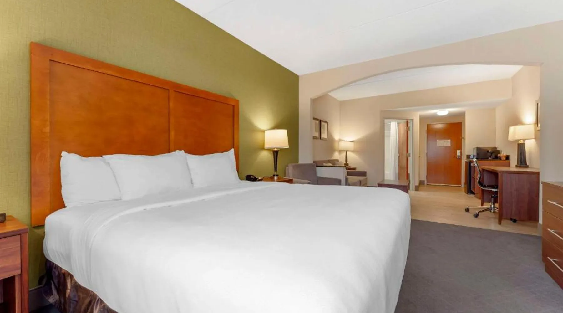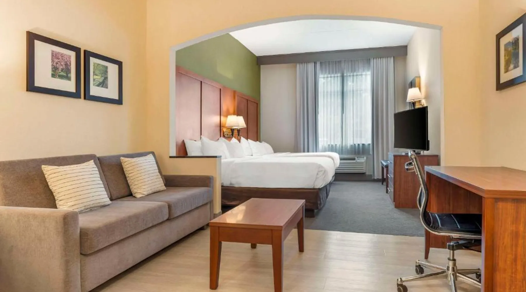 The Comfort Inn & Suites hotel, Completely Renovated, located off of Interstate 68 on historic U.S. Route 40, is just three minutes west of historic downtown Cumberland. This Lavale, MD hotel is minutes from the Western Maryland Scenic Railroad, offering three centuries of transportation history, scenic excursions and first-class dining cars, as well as murder mystery dinner shows. Enjoy our free hot breakfast featuring eggs, meat, yogurt, fresh fruit, cereal and more, including your choice of hot waffle flavors! For business travelers, the hotel provides conveniences like free high-speed Internet access, a public computer kiosk in the lobby, voice mail, multiple telephone lines, and access to fax and copy services. Banquet and meeting rooms are available for most events and business functions. All guest rooms come equipped with microwaves, refrigerators, coffee makers, hair dryers, irons, ironing boards and *42-inch flat-screen televisions with DirecTV*. In addition to standard amenities, some rooms feature whirlpool bathtubs. Additional full-service amenities and features include free coffee, free local calls, an indoor heated pool, hot tub and a 24-hour fitness center. Outdoor enthusiasts can enjoy hiking or biking on the Allegheny Highlands Trail of Maryland (AHTM), the Great Allegheny Passage and the Chesapeake and Ohio Canal National Historic Park trails (C&O Canal). Additional outdoor activities include golfing on the "Golden Bear" Jack Nicklaus Signature Golf Course at Rocky Gap, boating on Deep Creek Lake and skiing at the Wisp Resort ski and golf destination. Additional nearby points of interest include Frostburg State University, Allegany College of Maryland, New Embassy Theater, George Washington's Office Museum, Canal Place Heritage Area. This single room's special feature is the spa bath. This single room is air-conditioned and features a flat-screen TV with cable channels, a tea and coffee maker, a wardrobe and a carpeted floor. The unit offers 1 bed.