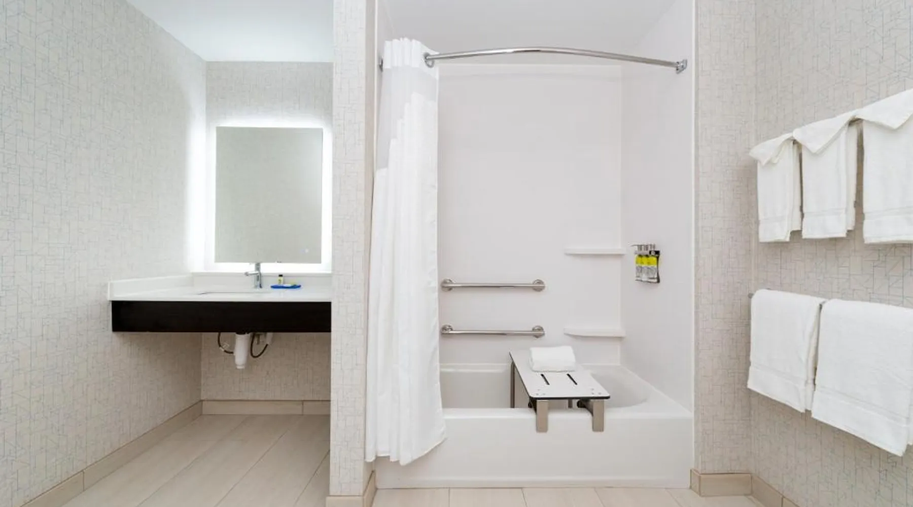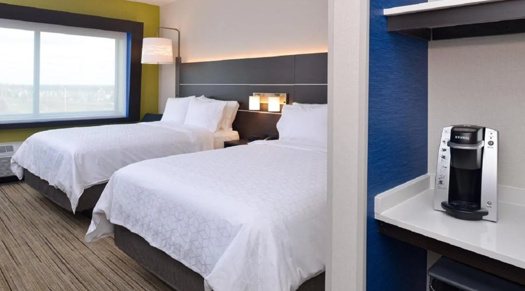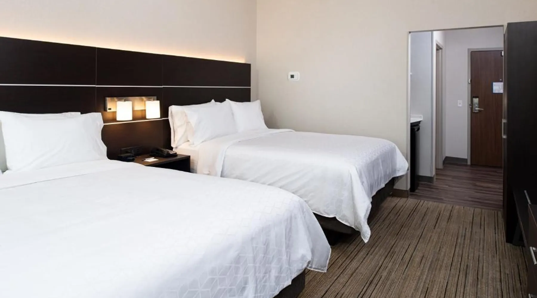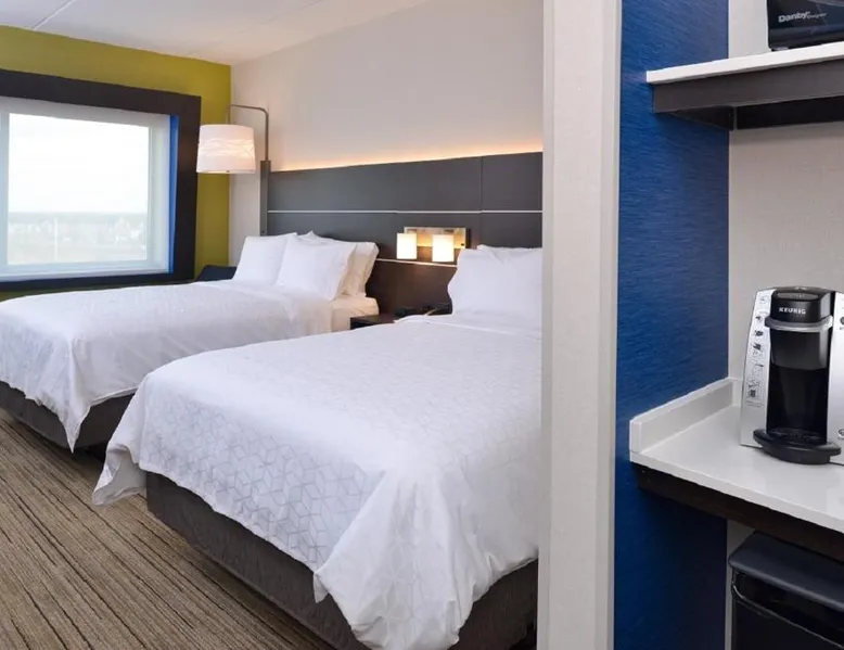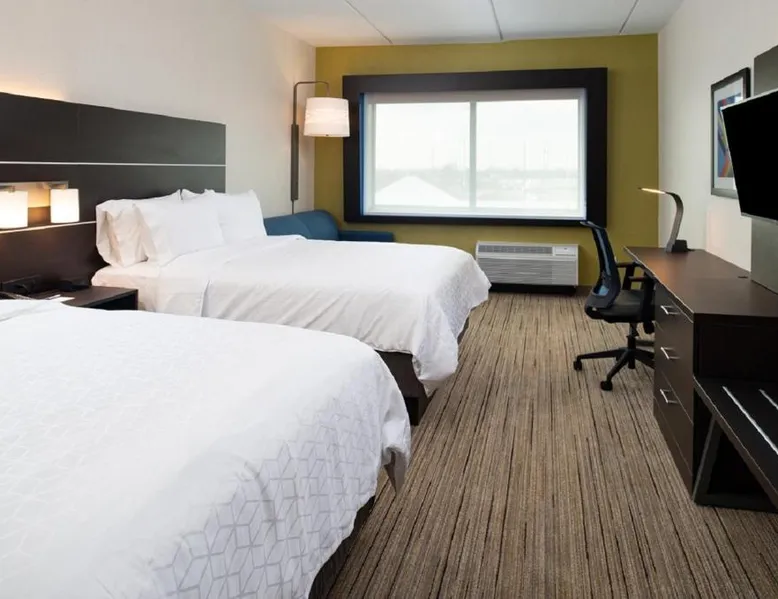 Comfortable Accommodations: Holiday Inn Express & Suites - Romeoville - Joliet North by IHG in Romeoville offers family rooms with air-conditioning, private bathrooms, and modern amenities. Each room includes a tea and coffee maker, hairdryer, and free toiletries. Leisure Facilities: Guests can enjoy an indoor swimming pool, fitness center, and hot tub. The property features a lounge, outdoor fireplace, and outdoor seating area. Free WiFi is available throughout the hotel. Convenient Services: The hotel provides a 24-hour front desk, housekeeping, and luggage storage. Additional services include car hire, carpeted floors, and soundproofing. Free on-site parking is provided. Nearby Attractions: Midway International Airport is 24 mi away, and United Center and Guaranteed Rate Field are 49 and 31 mi respectively. Guests appreciate the room cleanliness, attentive staff, and breakfast provided by the property. The spacious double room provides air conditioning, soundproof walls, as well as a private bathroom featuring a bath and a shower. The double room offers a tea and coffee maker, a wardrobe, a safe deposit box, a carpeted floor and a flat-screen TV. The unit offers 2 beds.