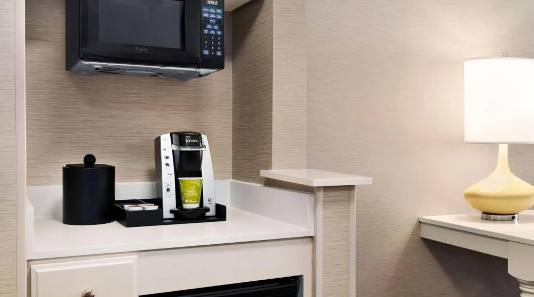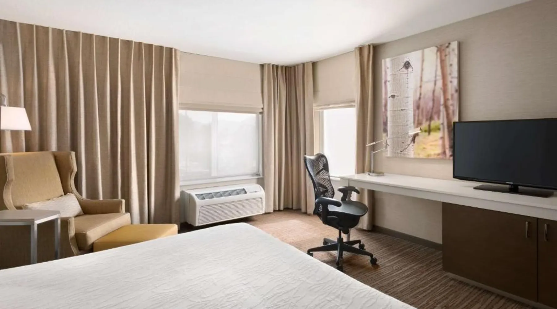 Only moments from popular Flagstaff, Arizona attractions, including Northern Arizona University, this conveniently located hotel offers exceptional accommodations along with a 24-hour convenience store. The Hilton Garden Inn Flagstaff is ideally placed only a short drive from major points of interest, including Grand Canyon National Park, the historic Route 66 and the Painted Desert. The historic Flagstaff city center, filled with shops and restaurants, is also only minutes away. Modern amenities, including wireless internet access and cube alarm clocks, are standard at the Flagstaff Hilton Garden Inn. Guests at the hotel can also take advantage of on-site dining at the Great American Grill. Boasting free Wi-Fi and cable TV, this room is equipped with tea and coffee-making facilities, a fridge and microwave.
