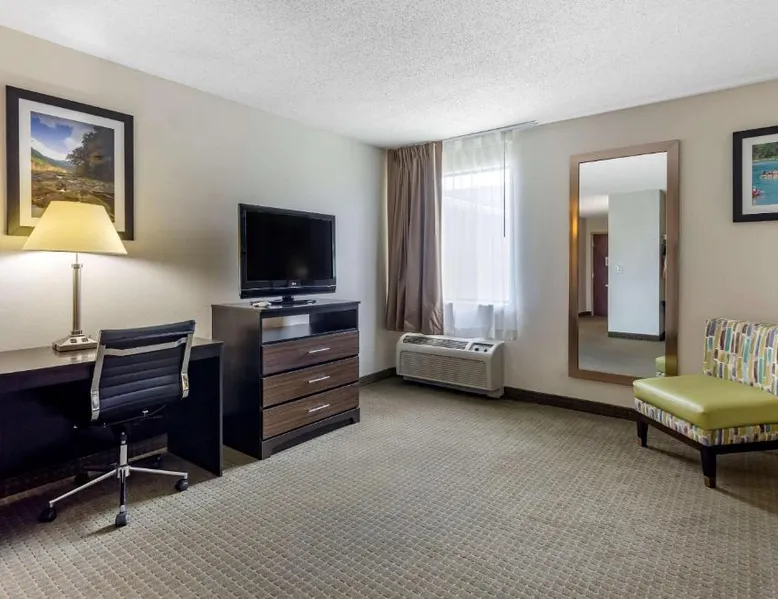 Comfortable Accommodations: Quality Inn in Ocoee offers family rooms with free WiFi, ensuring a pleasant stay for all guests. Convenient Facilities: The inn features a lounge, 24-hour front desk, housekeeping service, and free on-site private parking. Modern Amenities: Each room includes a tea and coffee maker, refrigerator, work desk, seating area, microwave, and TV. Prime Location: Located 33 mi from Chattanooga Metropolitan Airport, the property is praised for its convenient location and excellent service. This quadruple room features a tea and coffee maker, a seating area and a TV. The unit offers 2 beds.