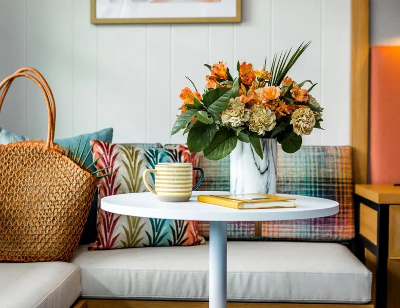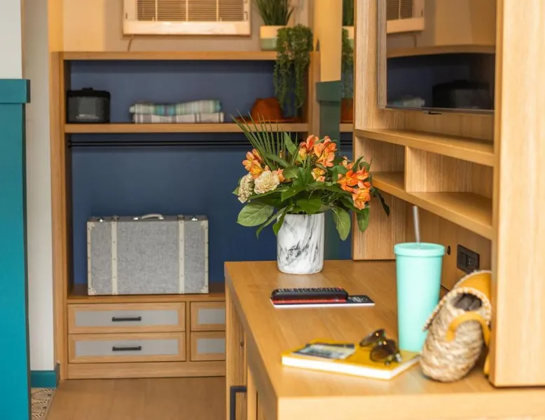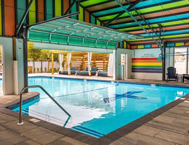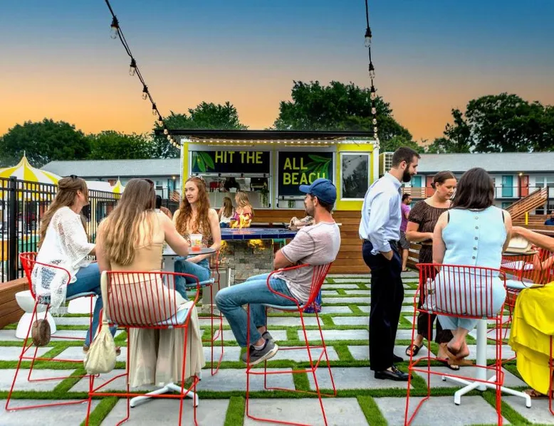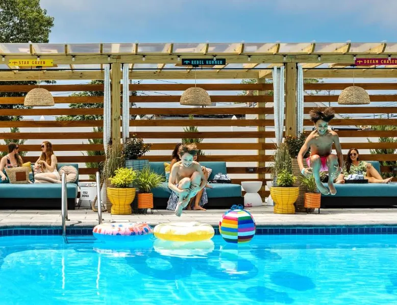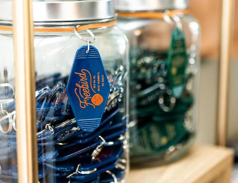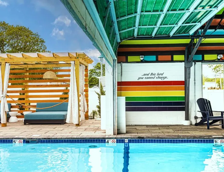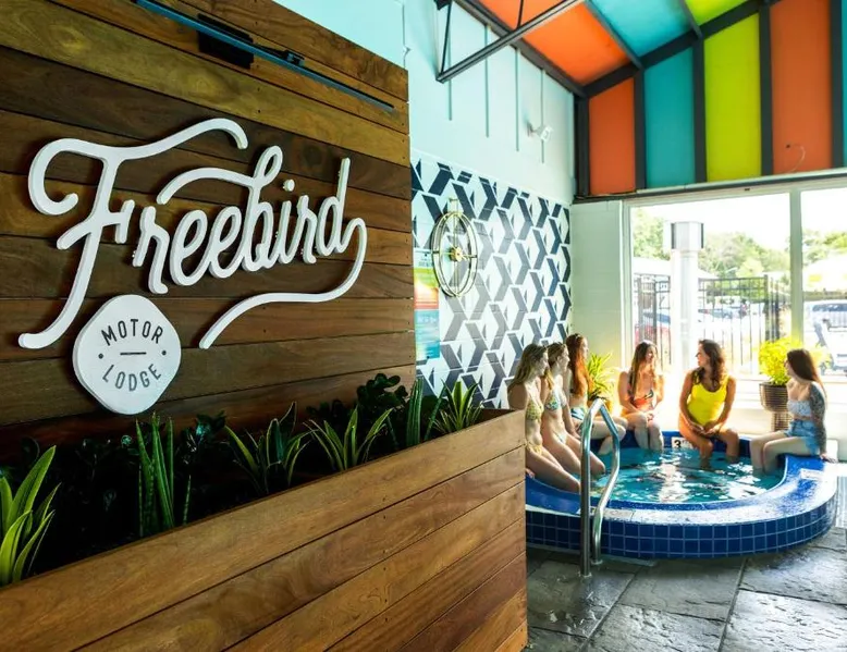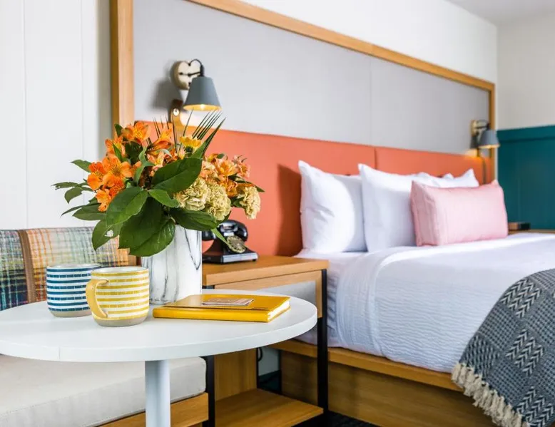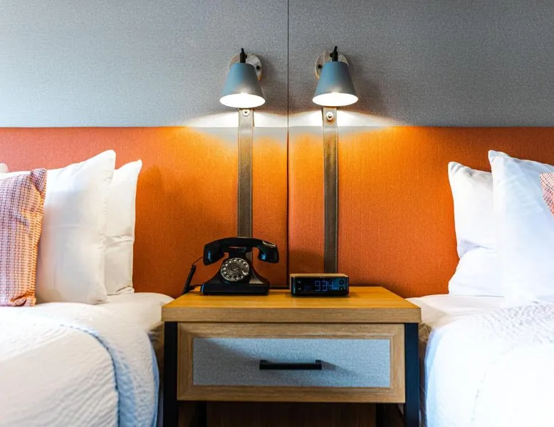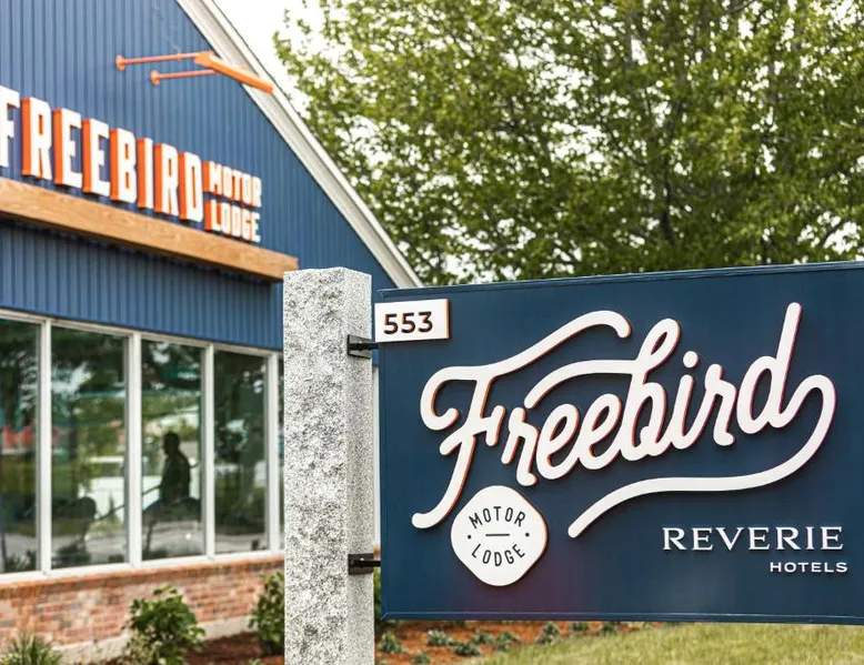 Freebird Motor Lodge is a new, boutique hotel in the heart of Cape Cod, MA. Designed with the soul of a rebel spirit, our newly renovated, vintage inspired motel features all of the modern amenities of today, with a laid back, energy of days gone by (plus a little more). Our designer interiors, great music, and unique spaces are ripe for sunny summer days and hot summer nights! This double room features a sofa and air conditioning.