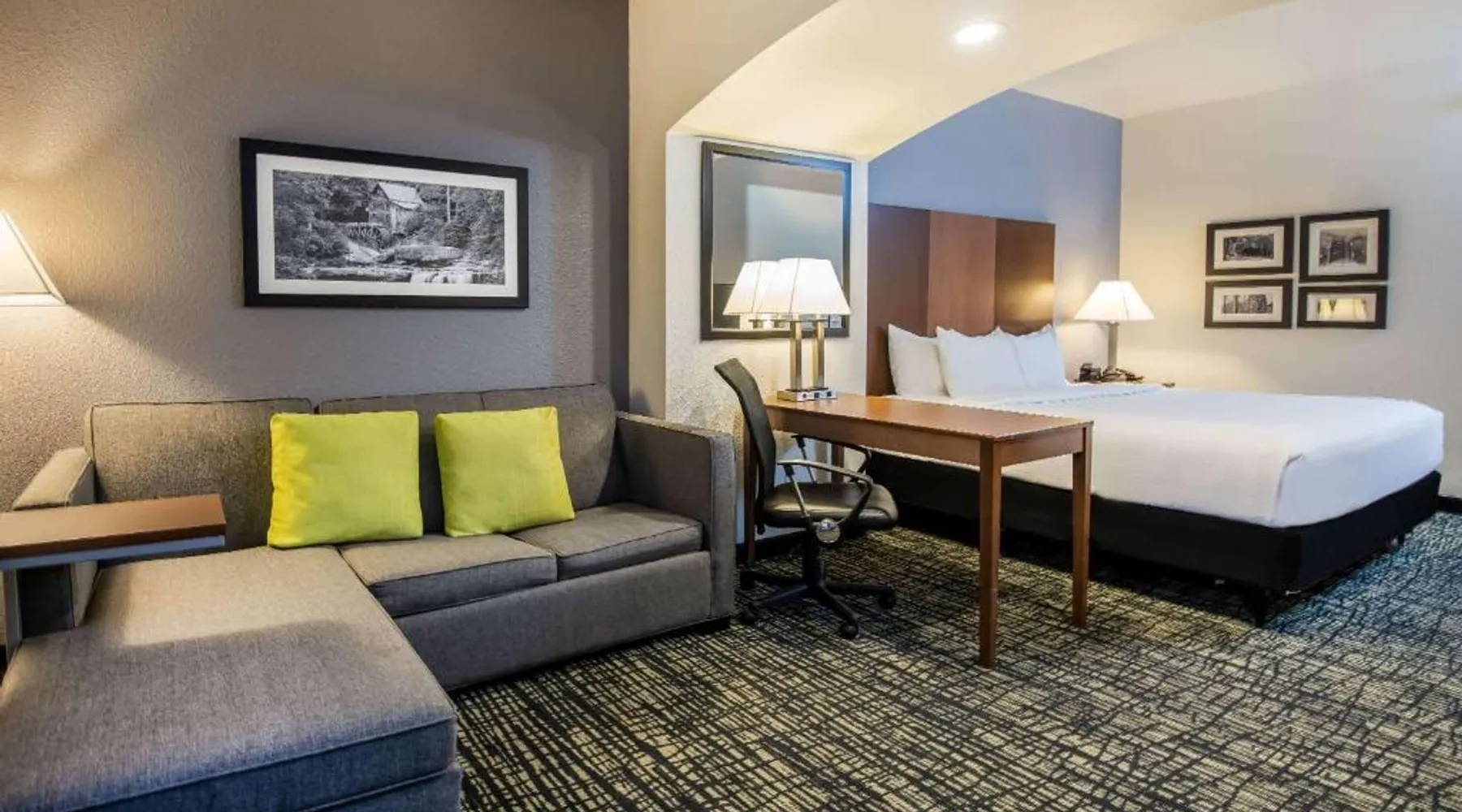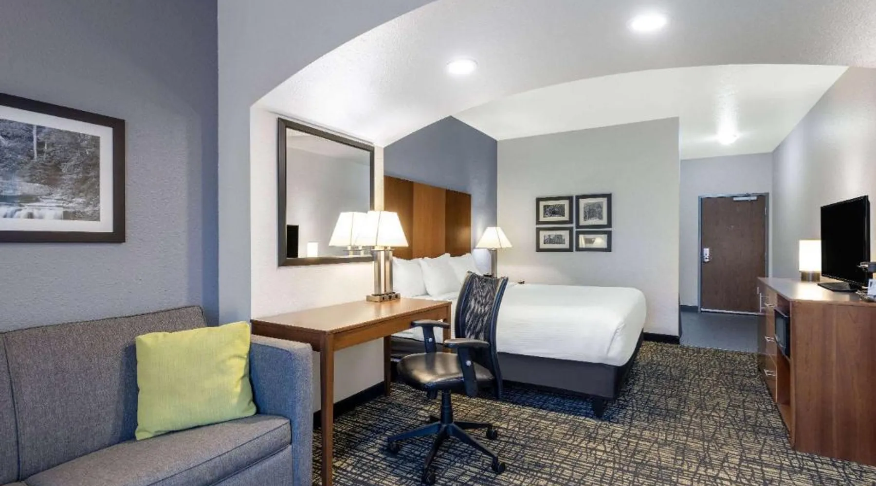 Offering a fitness center and an indoor heated pool, La Quinta Inn and Suites Morgantown is located in Westover, West Virginia. Free WiFi is available and the property is 10 minutes' drive from West Virginia University. Guest rooms have a flat-screen cable TV and a coffee machine. Some units have a seating area to relax in after a busy day. A free hot breakfast is served each morning at the Morgantown La Quinta Inn & Suites. There is an on-site meeting space. Morgantown is 3.7 mi from the property. Mylan Park is 5 minutes' drive. Morgantown Municipal -Walter L. Bill Hart Field Airport is 5.6 mi away. The spacious triple room offers a coffee machine, a seating area, as well as a private bathroom featuring a shower and a hairdryer. This triple room provides a sofa and a flat-screen TV with cable channels. The unit offers 2 beds.