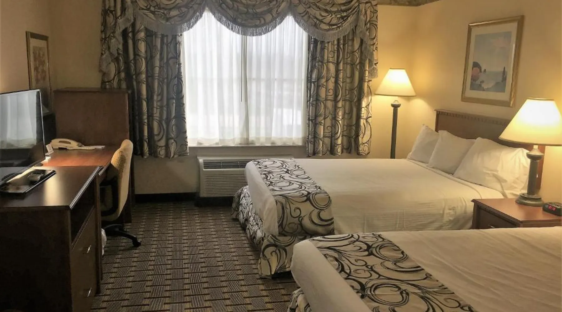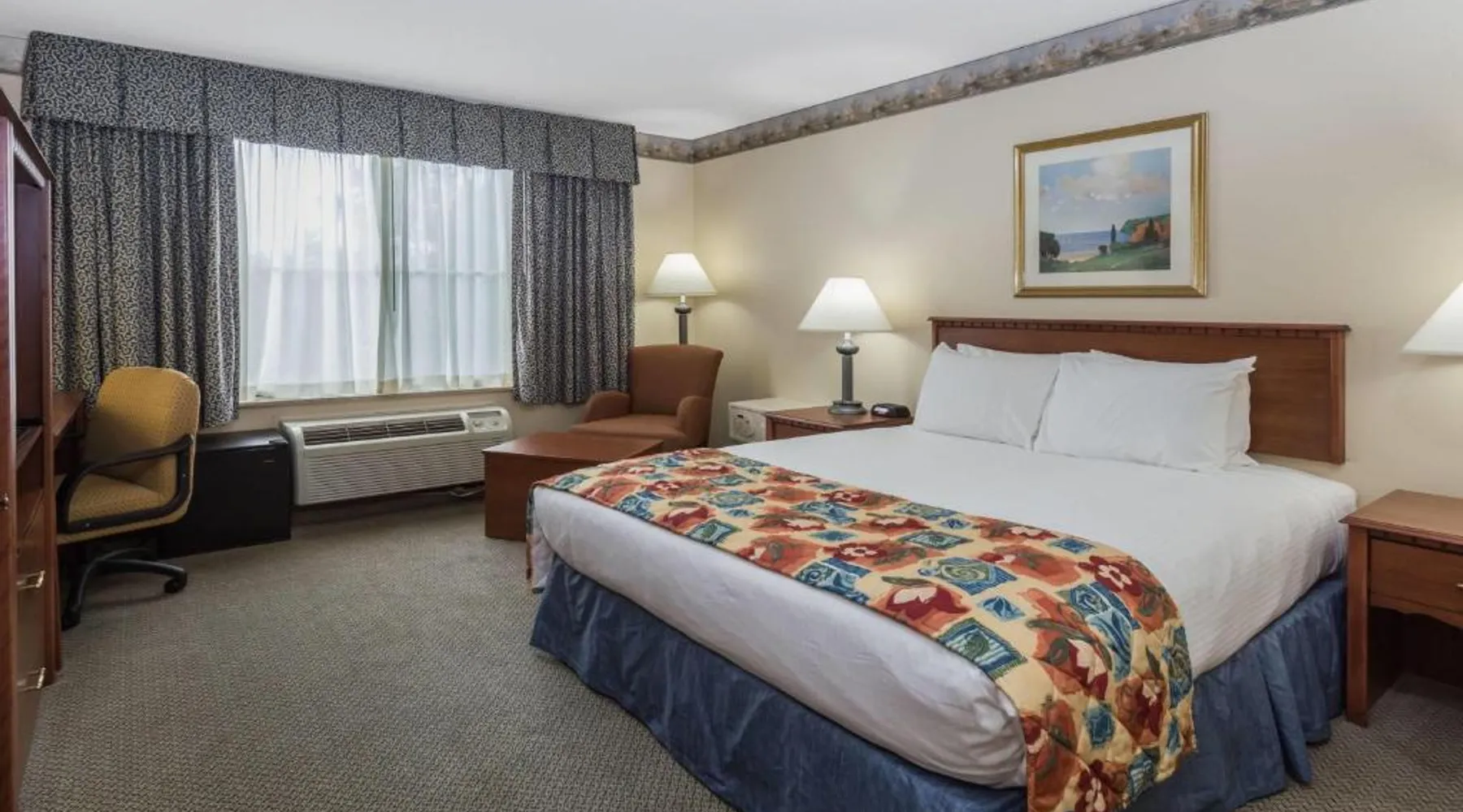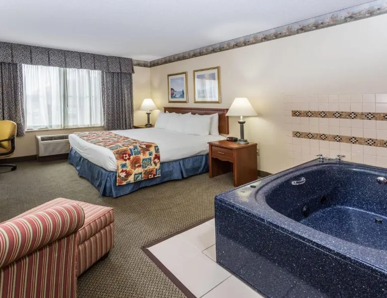 Comfortable Accommodations: Rooms feature air-conditioning, private bathrooms, tea and coffee makers, free toiletries, showers, carpeted floors, wardrobes, and TVs. Additional amenities include hairdryers, refrigerators, and work desks. Facilities and Services: Guests can enjoy a fitness center, indoor swimming pool, and free WiFi. The hotel offers a elevator, hot tub, 24-hour front desk, business area, and family rooms. Free on-site parking is available. Location and Attractions: Located in Waterford, the hotel is 21 mi from Milwaukee Mitchell International Airport. Nearby attractions include East Troy Electric Railroad Museum (12 mi) and Alpine Valley Music Theater (14 mi). Guests appreciate room cleanliness, convenient location, and value for money. This air-conditioned family room is consisted of of a TV with cable channels and a private bathroom. The unit has 1 bed.