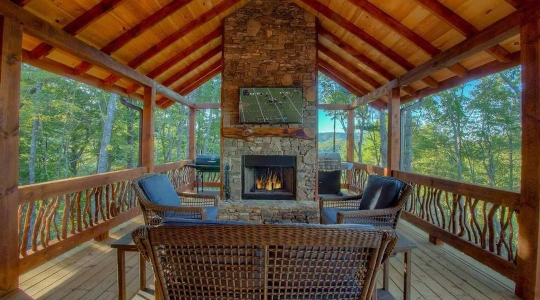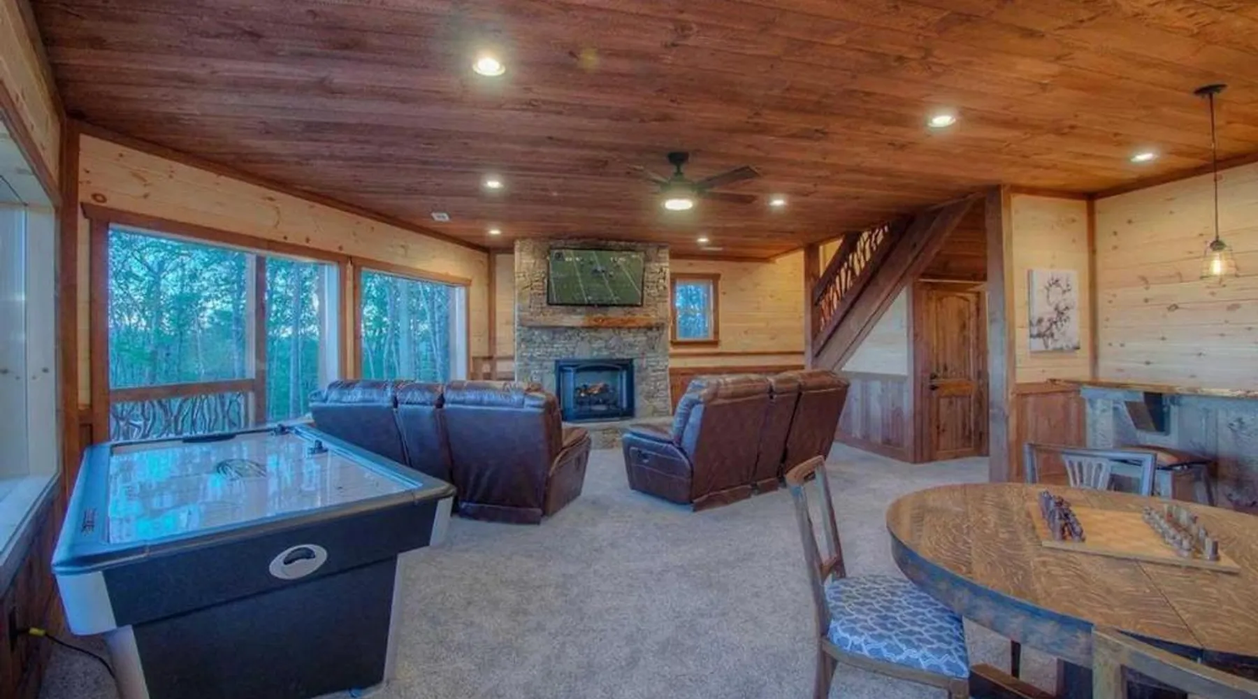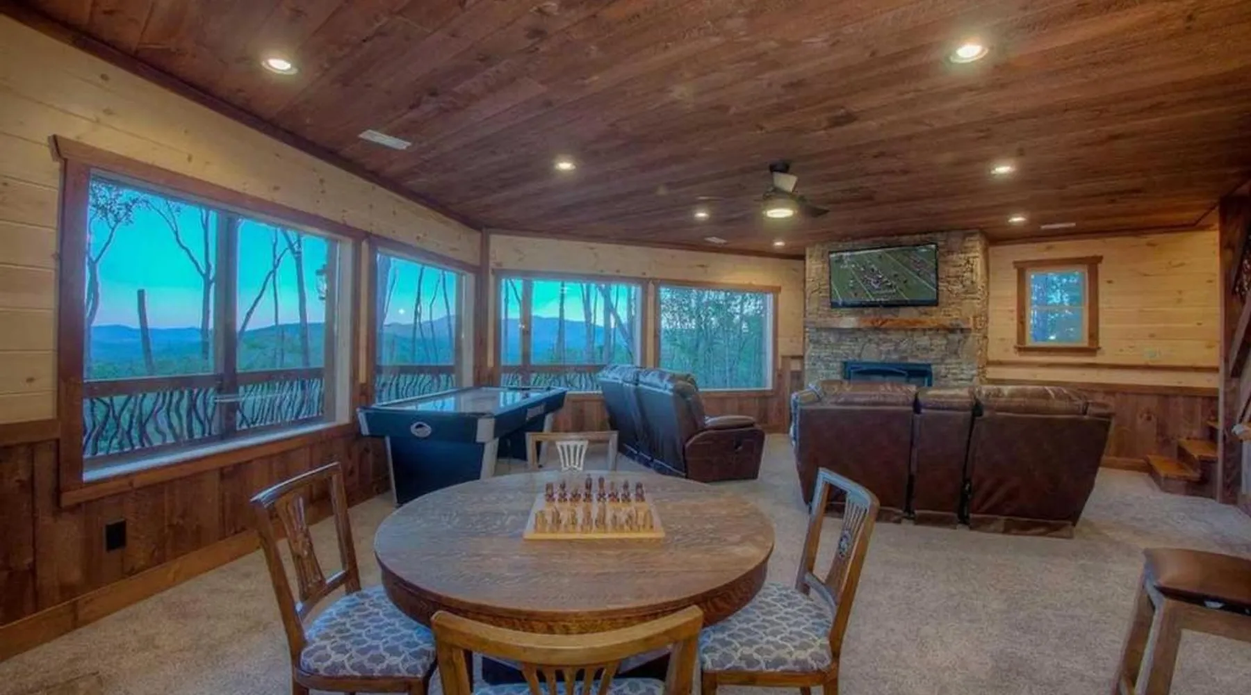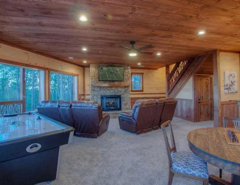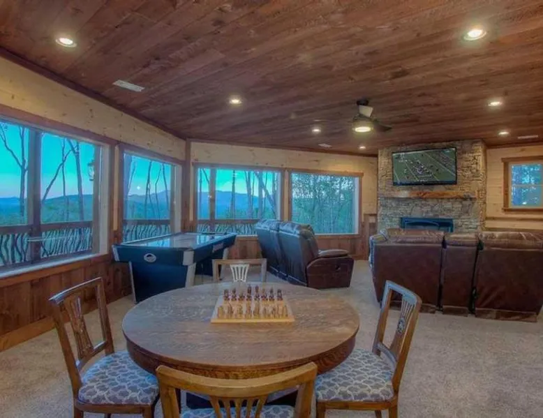 Comfortable Accommodations: Triple Vista Mountain Tops in Blue Ridge offers a 4-star holiday home with four bedrooms and three bathrooms. The property features a spacious layout and a private entrance. Modern Amenities: Guests enjoy free WiFi, air-conditioning, and a fully equipped kitchen with a dishwasher, microwave, and oven. Additional amenities include a washing machine, fireplace, and barbecue. Leisure Facilities: The holiday home provides a games room and a 24-hour front desk. Free on-site parking is available for guests. Convenient Location: Chattanooga Metropolitan Airport is 74 mi away, offering easy access for travelers. Guests will have a special experience as the holiday home offers a fireplace. Featuring a private entrance, this air-conditioned holiday home consists of a kitchen, 4 bedrooms and 3 bathrooms with a bath and a shower. Guests will find a stovetop, a refrigerator, a dishwasher and kitchenware in the well-fitted kitchen. The holiday home also offers a barbecue. The holiday home provides a washing machine, a tea and coffee maker, a seating area, a dining area, as well as a flat-screen TV with satellite channels. The unit offers 5 beds.