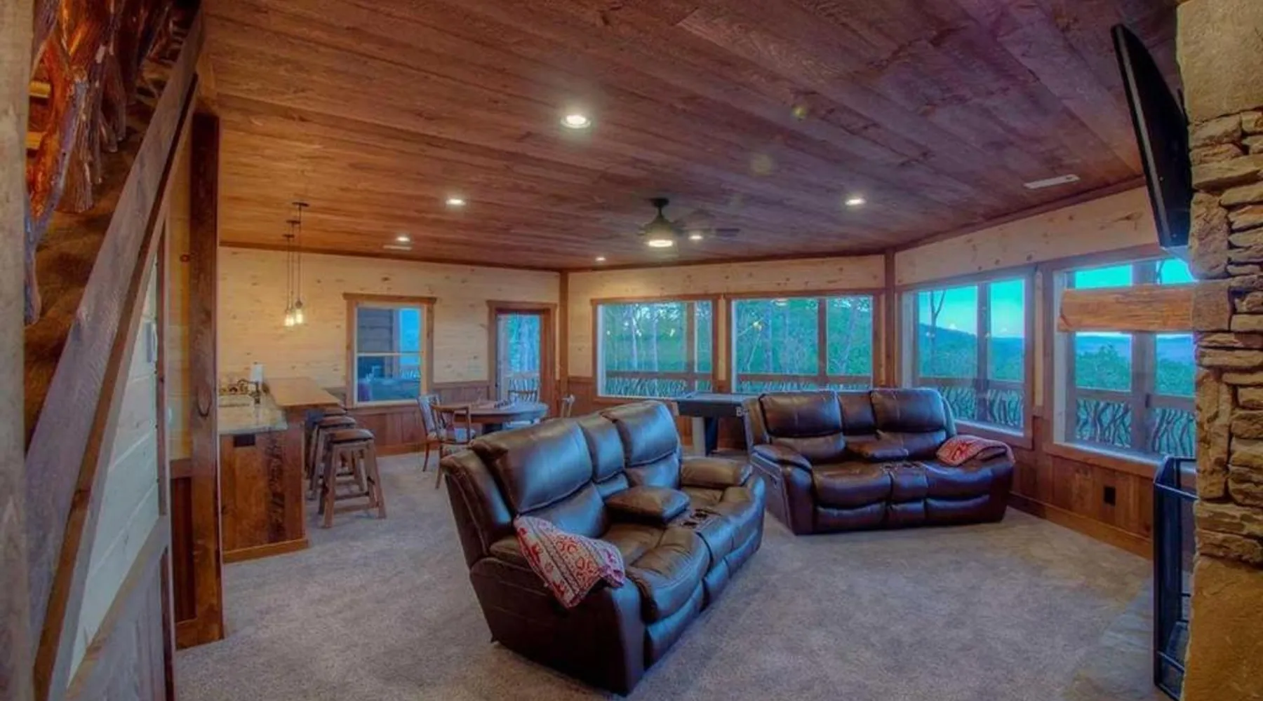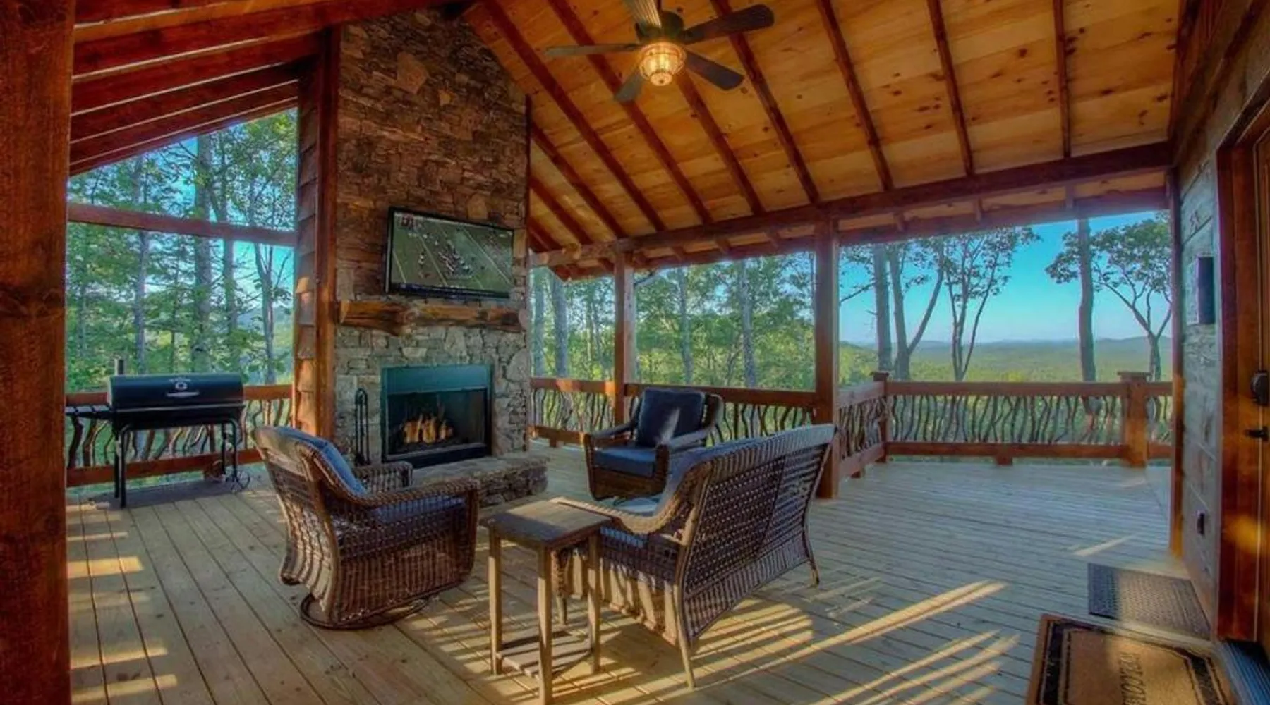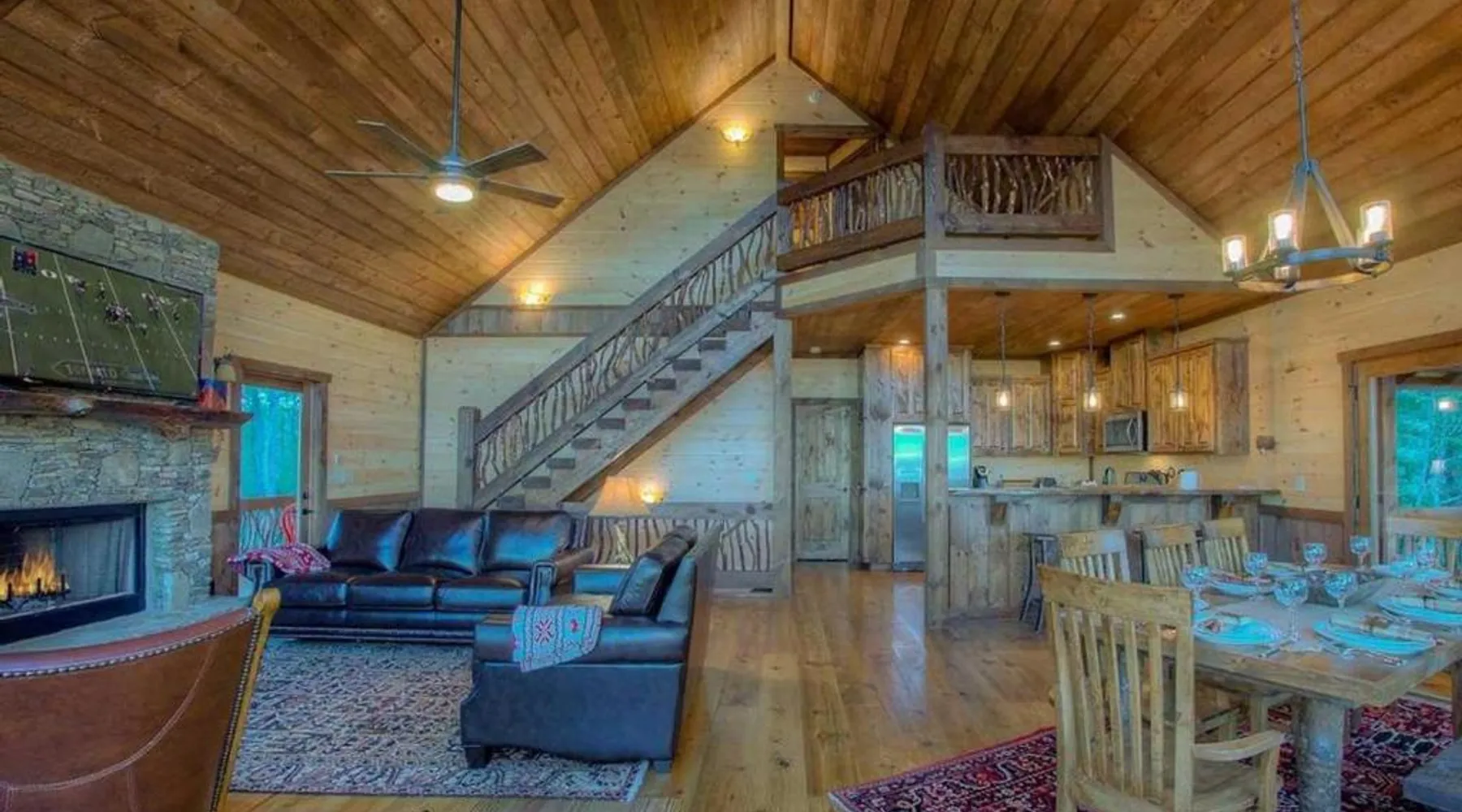 Comfortable Accommodations: Triple Vista Mountain Tops in Blue Ridge offers a 4-star holiday home with four bedrooms and three bathrooms. The property features a spacious layout and a private entrance. Modern Amenities: Guests enjoy free WiFi, air-conditioning, and a fully equipped kitchen with a dishwasher, microwave, and oven. Additional amenities include a washing machine, fireplace, and barbecue. Leisure Facilities: The holiday home provides a games room and a 24-hour front desk. Free on-site parking is available for guests. Convenient Location: Chattanooga Metropolitan Airport is 74 mi away, offering easy access for travelers. Guests will have a special experience as the holiday home offers a fireplace. Featuring a private entrance, this air-conditioned holiday home consists of a kitchen, 4 bedrooms and 3 bathrooms with a bath and a shower. Guests will find a stovetop, a refrigerator, a dishwasher and kitchenware in the well-fitted kitchen. The holiday home also offers a barbecue. The holiday home provides a washing machine, a tea and coffee maker, a seating area, a dining area, as well as a flat-screen TV with satellite channels. The unit offers 5 beds.