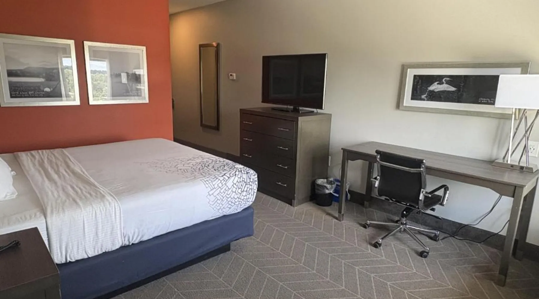 Comfortable Accommodations: La Quinta by Wyndham Opelika Auburn in Opelika offers air-conditioned rooms with private bathrooms, work desks, and free WiFi. Each room includes a TV, hairdryer, and coffee machine. Exceptional Facilities: Guests can enjoy a fitness center, sun terrace, bar, seasonal outdoor swimming pool, and outdoor fireplace. Additional amenities include a lounge, minimarket, and electric vehicle charging station. Convenient Location: Located 33 mi from Columbus Airport, the hotel is near Auburn University (6.2 mi) and Jordan Hare Stadium (6.8 mi). Other attractions include The Gallery on Railroad (3.7 mi) and Jule Collins Smith Museum of Fine Art (6.8 mi). Guest Satisfaction: Highly rated for its attentive staff, room cleanliness, and convenient location. The spacious triple room provides air conditioning and a coffee machine, as well as a private bathroom featuring a hairdryer. This triple room features heating and a flat-screen TV. The unit offers 1 bed.
