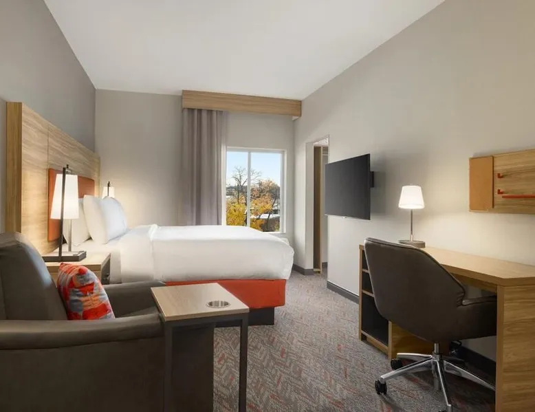 Comfortable Accommodations: Candlewood Suites - Lexington - Medical District by IHG in Lexington offers well-appointed rooms with air-conditioning, private bathrooms, and kitchenettes. Guests enjoy amenities such as free WiFi, a fitness center, and a lounge. Modern Facilities: The hotel features a fitness room, elevator, 24-hour front desk, and a business area. Additional amenities include a dining area, work desk, and a fully equipped kitchen with a refrigerator, microwave, and dishwasher. Prime Location: Located 5 mi from Blue Grass Airport, the hotel is near attractions like Lexington Convention Center (1.9 mi), Rupp Arena (1.9 mi), and The Arboretum (1.9 mi). Guests appreciate the convenient location and excellent room cleanliness. The studio offers a wardrobe, heating, as well as a private bathroom boasting a bath or a shower and a hairdryer. In the well-equipped kitchenette, guests will find a stovetop, a refrigerator, a dishwasher and kitchenware. The studio has carpeted floors, a seating area with a flat-screen TV with cable channels, air conditioning, a tea and coffee maker, as well as a dining area. The unit has 2 beds.