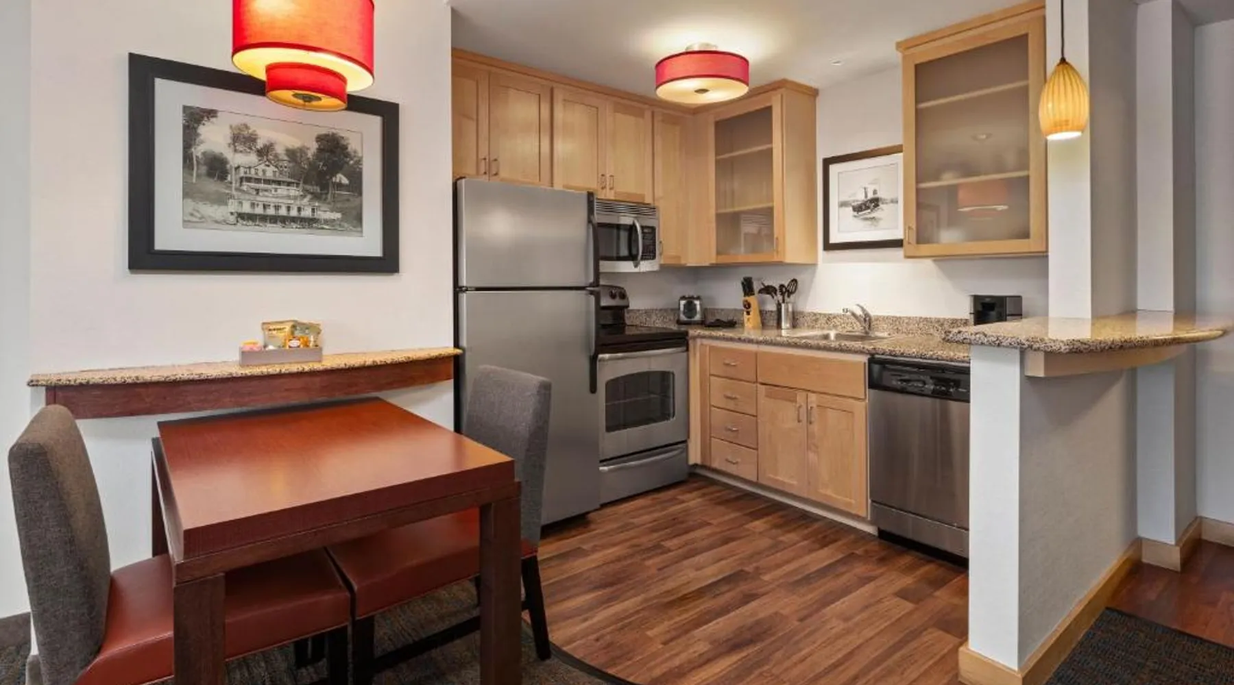 Comfortable Accommodations: Residence Inn Minneapolis Plymouth in Plymouth offers family rooms with private bathrooms, kitchen facilities, and modern amenities. Each room includes air-conditioning, a work desk, and free WiFi. Leisure Facilities: Guests can enjoy a saltwater swimming pool, indoor pool, fitness center, and a beautiful garden. Additional amenities include a lounge, coffee shop, and outdoor seating areas. Convenient Location: Located 19 mi from Minneapolis-Saint Paul International Airport, the hotel is less than 0.6 mi from Plymouth Playhouse. Nearby attractions include Ridgedale Shopping Center-N Door (3.7 mi) and Minneapolis Sculpture Garden (9.9 mi). Guest Services: The hotel provides private check-in and check-out, a 24-hour front desk, and paid on-site parking. Additional services include a minimarket, business area, and luggage storage. Featuring a fully-equipped kitchen with a dining table, this studio also includes a living area with flat-screen TV and in-room movies and video games.