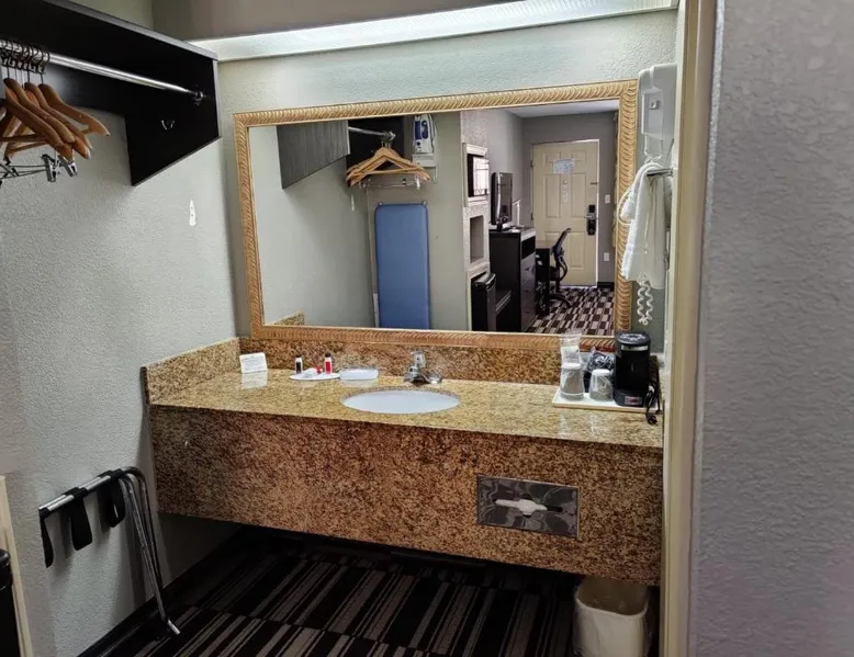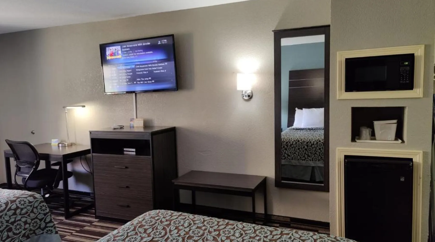 Comfortable Accommodations: Rooms feature air-conditioning, private bathrooms, baths, hairdryers, coffee machines, refrigerators, work desks, free toiletries, microwaves, and TVs. Leisure Facilities: Guests can enjoy a seasonal outdoor swimming pool, a lush garden, and free WiFi. Additional amenities include a 24-hour front desk, housekeeping service, business area, and outdoor seating. Dining Options: A continental and American breakfast is served with warm dishes, juice, fresh pastries, pancakes, and fruits. Convenient Location: Located in Southaven, the hotel is 3.1 mi from Memphis International Airport and near attractions such as Graceland (5.6 mi) and the Stax Museum of American Soul Music (9.3 mi). Free on-site parking is available. Providing free toiletries, this quadruple room includes a private bathroom with a bath and a hairdryer. This quadruple room features air conditioning, a coffee machine and a flat-screen TV. The unit offers 1 bed.