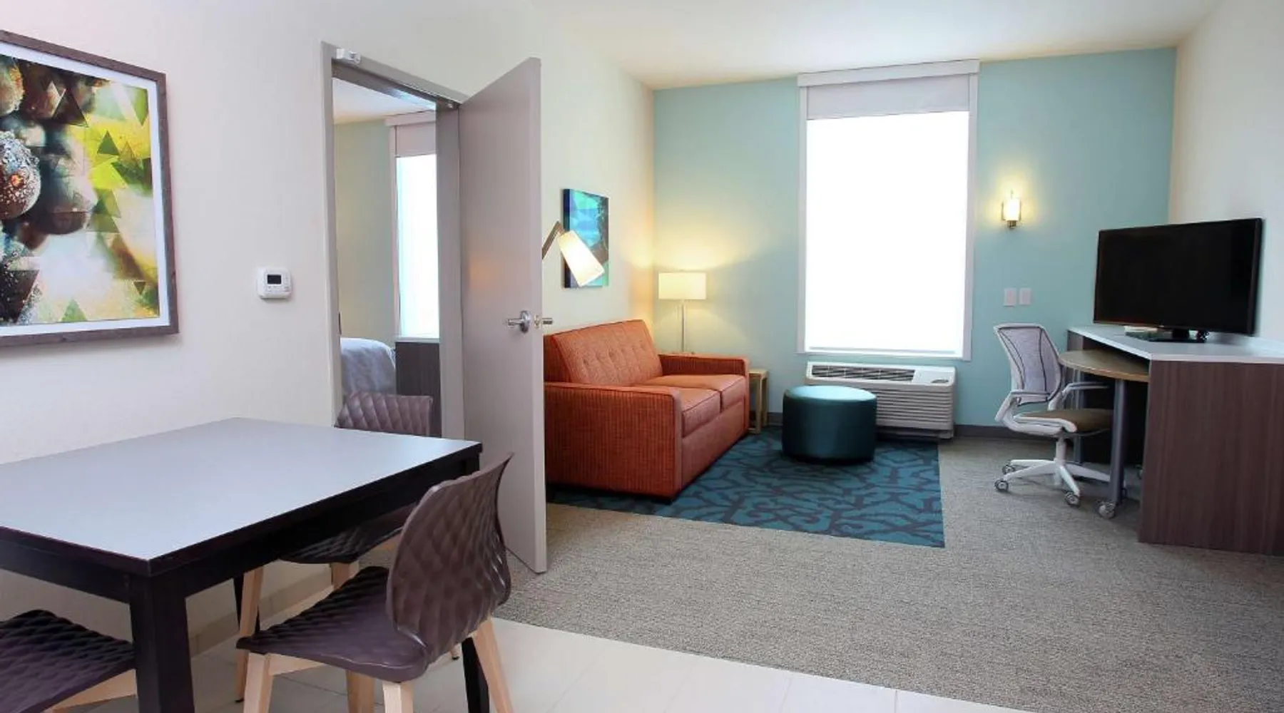 Comfortable Accommodations: Rooms feature air-conditioning, free WiFi, and amenities such as a tea and coffee maker, hairdryer, sofa bed, refrigerator, work desk, and TV. Guests appreciate the room cleanliness and modern comforts. Leisure Facilities: The hotel offers a saltwater swimming pool, indoor pool, fitness center, and hot tub. Additional facilities include an outdoor fireplace, fitness room, elevator, outdoor seating area, and electric vehicle charging station. Convenient Location: Located in Nampa, the hotel is 15 mi from Boise Airport and a 5-minute walk from Ford Idaho Center Arena. Nearby attractions include Roaring Springs Water Park (6.8 mi) and Boise Art Museum (17 mi). Free on-site private parking is available. The air-conditioned suite offers a TV with cable channels, a tea and coffee maker, a seating area and heating. The unit offers 2 beds.