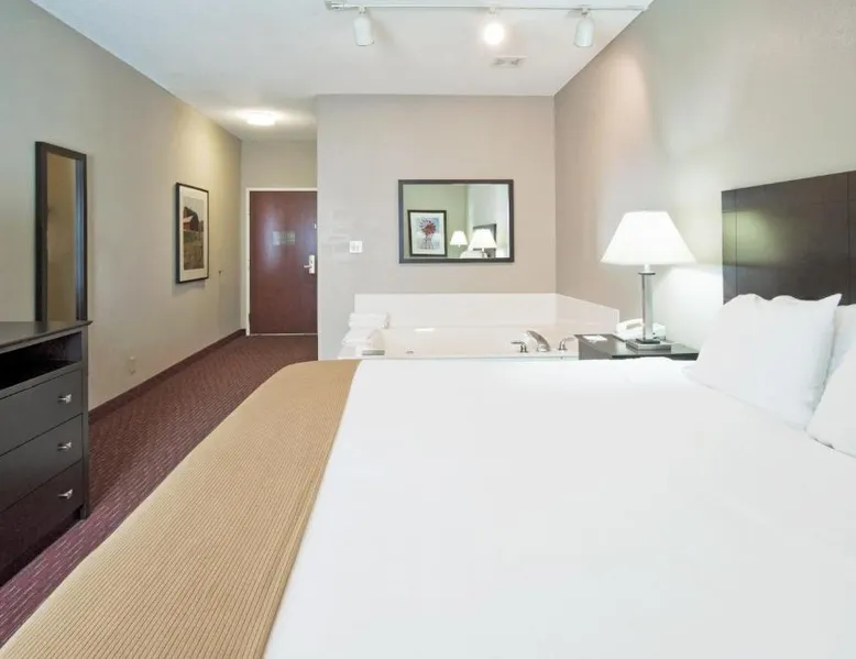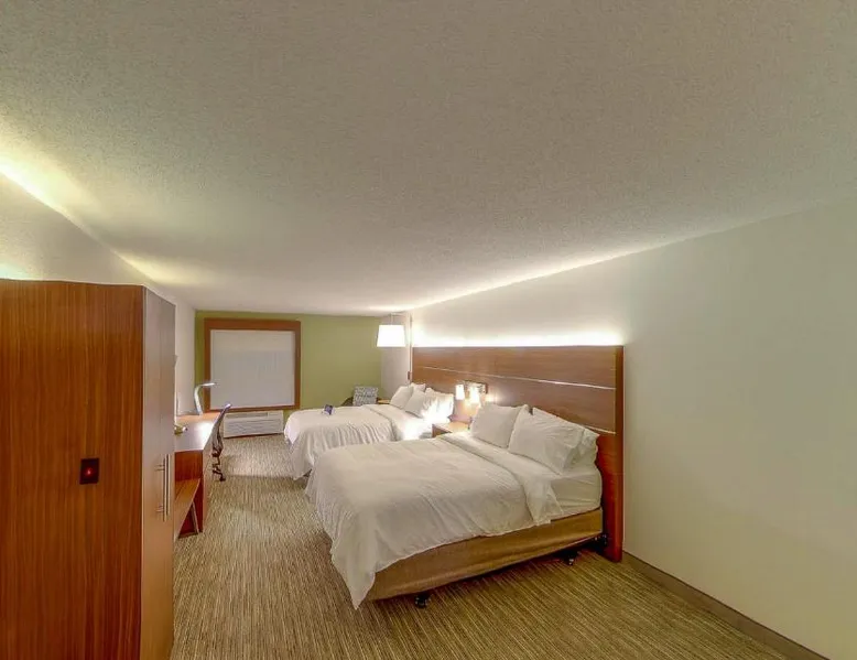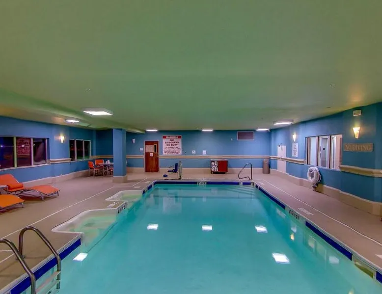 Comfortable Accommodations: Holiday Inn Express Fort Wayne - East in New Haven offers air-conditioned rooms with private bathrooms, free WiFi, and modern amenities including a work desk, TV, and wardrobe. Leisure Facilities: Guests can enjoy a fitness center, indoor swimming pool, and a relaxing sofa bed. Additional features include a coffee machine, microwave, and free toiletries. Convenient Location: Located 15 mi from Fort Wayne Airport, the hotel is near attractions such as Fort Wayne Museum of Art (6.8 mi) and Parkview Field (6.8 mi). Free on-site parking is available. Guest Services: The property staff provide excellent service support, a delicious breakfast, and a 24-hour front desk. Cable TV is included in this accessible room, along with coffee-making facilities and a hairdryer.