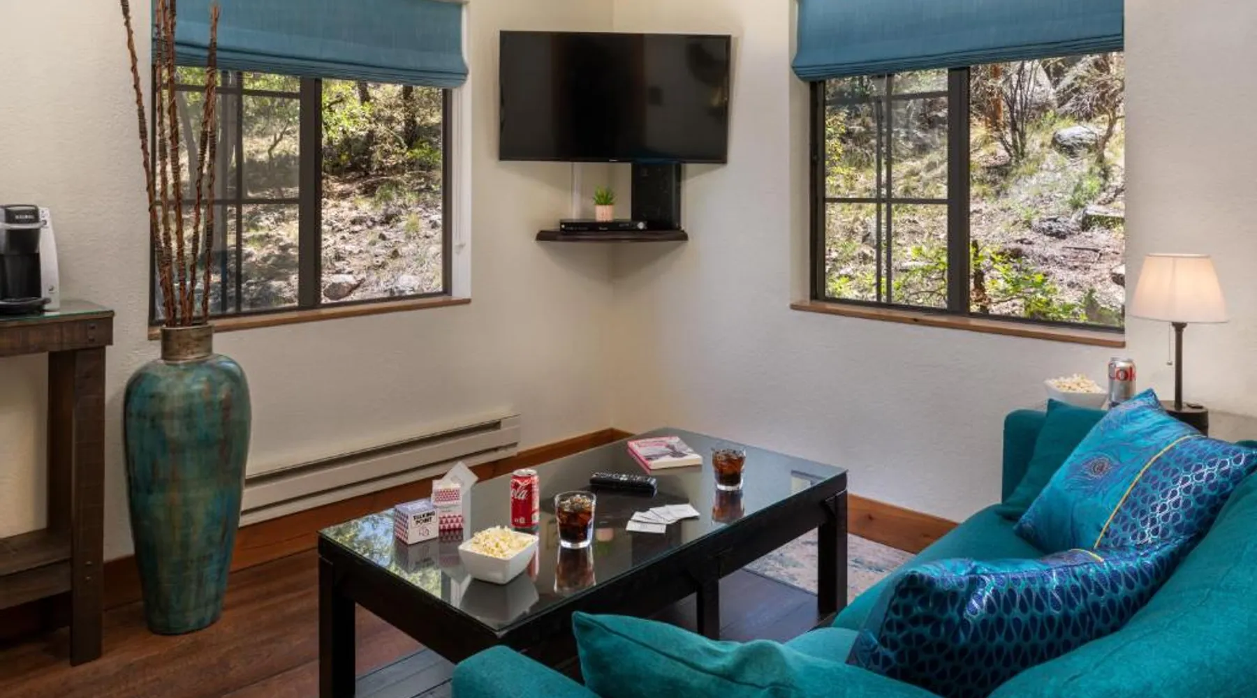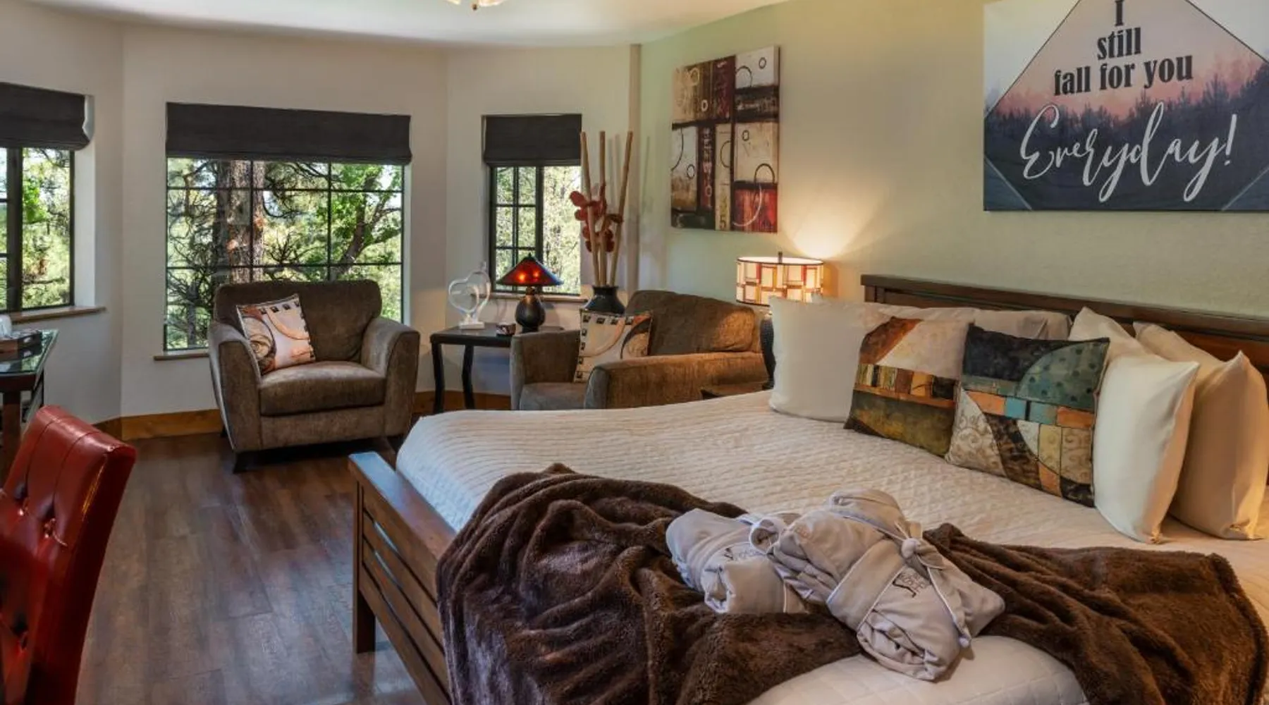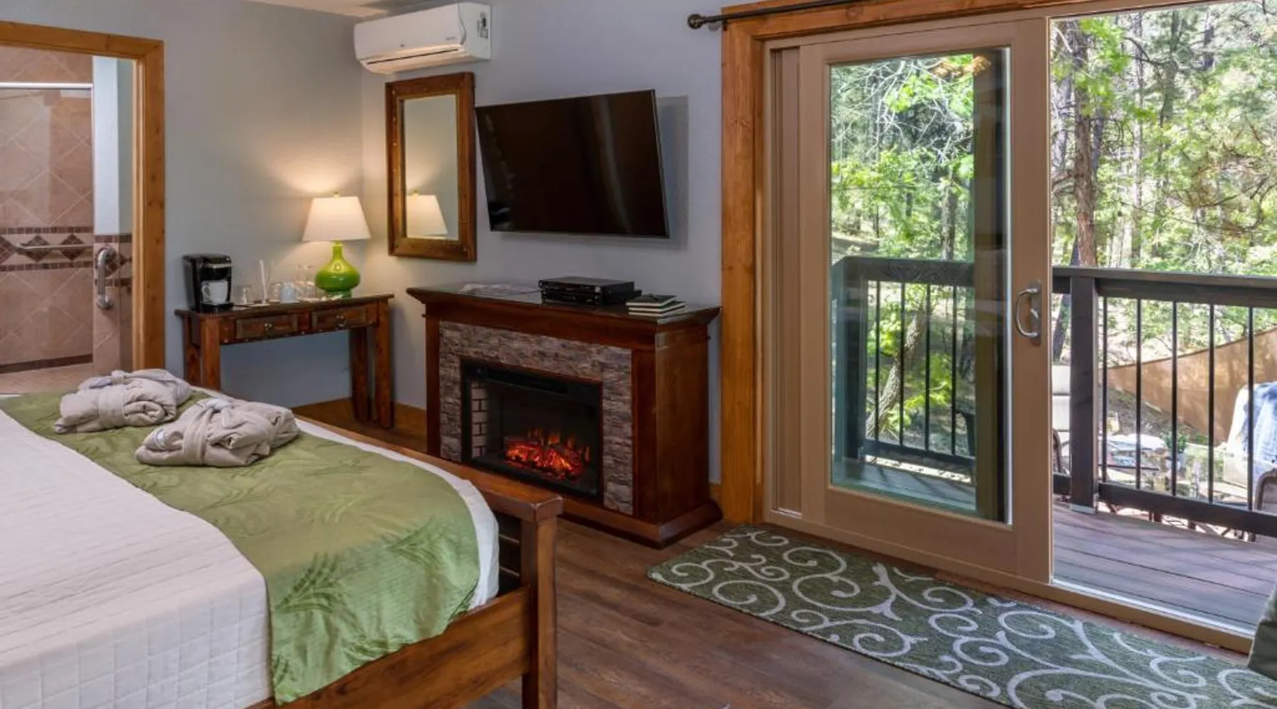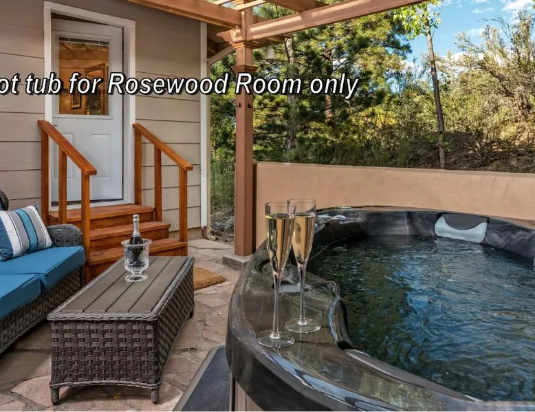Comfortable Accommodations: Sheridan House Inn in Williams offers recently renovated adults-only rooms with private bathrooms, air-conditioning, and modern amenities. Each room includes a tea and coffee maker, refrigerator, and free toiletries. Relaxing Facilities: Guests can enjoy a sun terrace, garden, and outdoor fireplace. Free WiFi is available throughout the property, ensuring connectivity. Additional amenities include a hot tub, patio, and outdoor dining area. Convenient Services: The inn provides private check-in and check-out, concierge service, and free on-site parking. Breakfast is served in-room, and menus cater to special diets. Housekeeping and luggage storage are also available. Local Attractions: Located 35 mi from Flagstaff Pulliam Airport, the inn offers easy access to fishing, skiing, hiking, and cycling. Mountain and city views enhance the stay. This suite comes with 1 living room, 1 separate bedroom and 1 bathroom with a walk-in shower and free toiletries. The air-conditioned suite features a flat-screen TV with streaming services, a tea and coffee maker, a seating area, a wardrobe as well as mountain views. The unit has 1 bed.