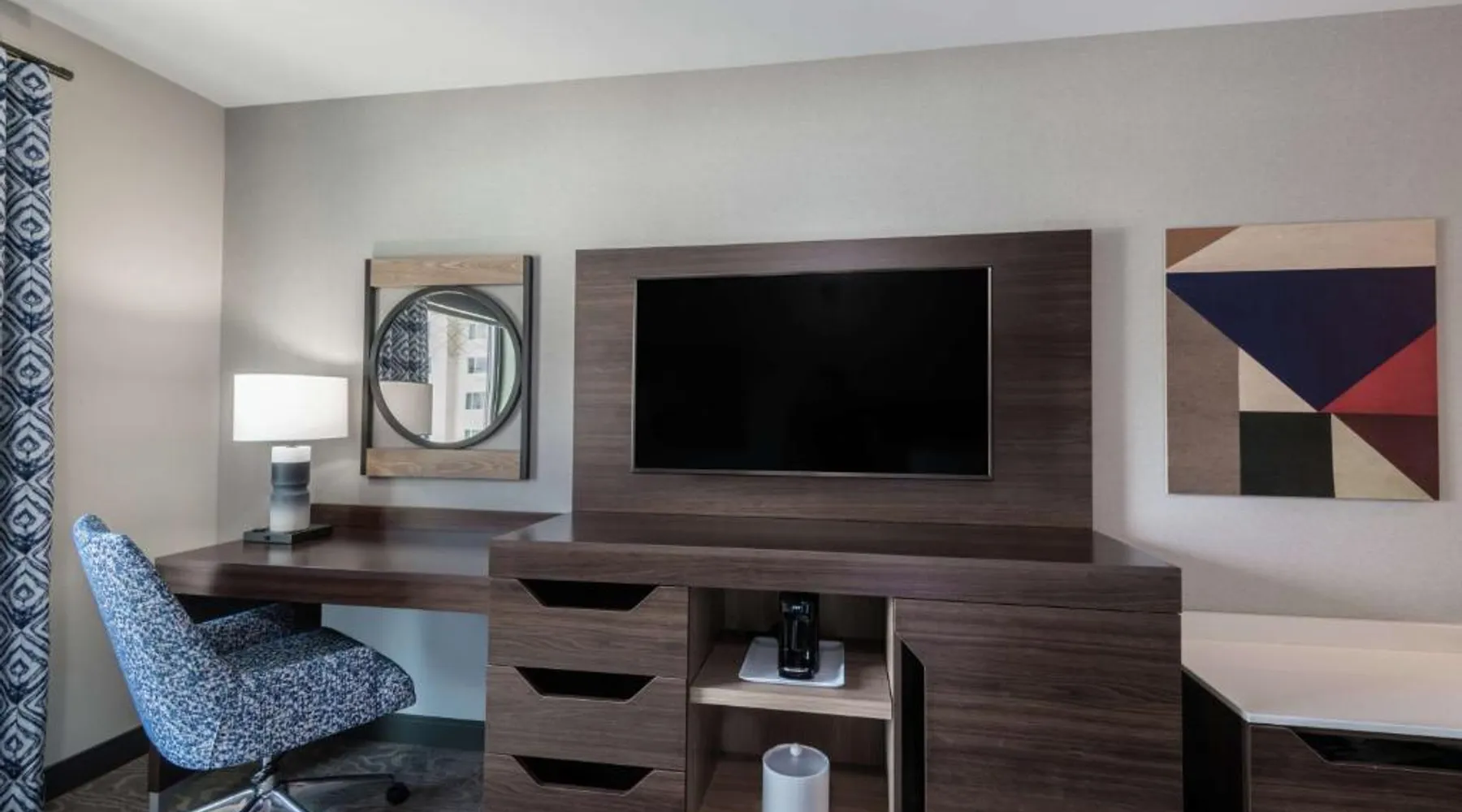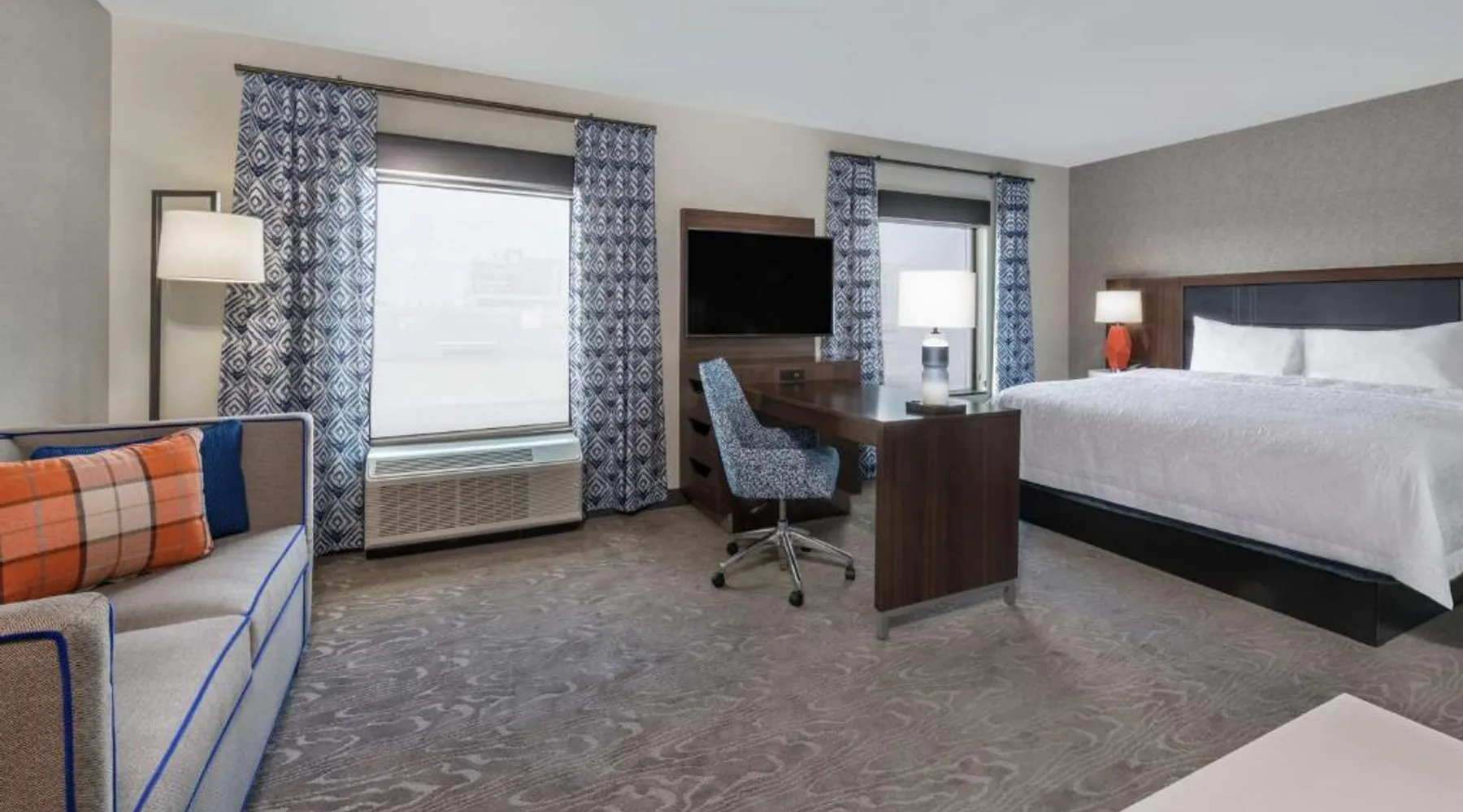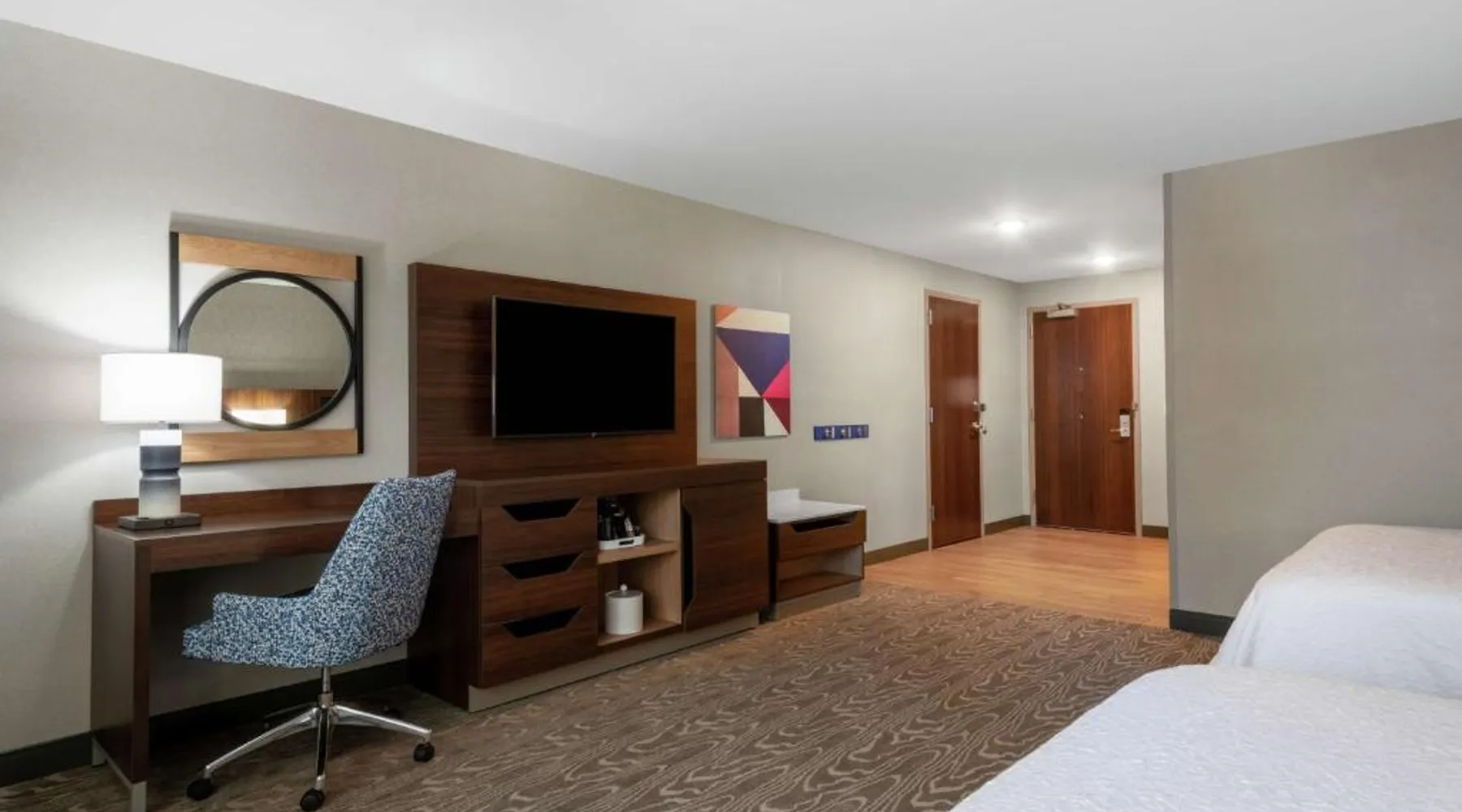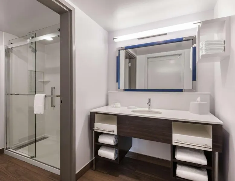 Comfortable Accommodations: Hampton Inn & Suites Fort Wayne Downtown in Fort Wayne offers rooms with air-conditioning, tea and coffee makers, hairdryers, refrigerators, and microwaves. Guests enjoy free WiFi, a fitness room, and a 24-hour front desk. Dining and Leisure: The hotel features a restaurant serving American cuisine for lunch and dinner, a bar offering cocktails, and a continental buffet breakfast with juice, fresh pastries, and fruits. A fitness room and elevator enhance the stay. Prime Location: Located 7.5 mi from Fort Wayne Airport, the hotel is a short walk from Embassy Theater and Foellinger-Freimann Botanical Conservatory. Nearby attractions include Parkview Field (1969 feet) and Fort Wayne Museum of Art (12-minute walk). Guests appreciate the convenient location, room cleanliness, and bar. The double room features air conditioning and a tea and coffee maker. The unit has 1 bed.
