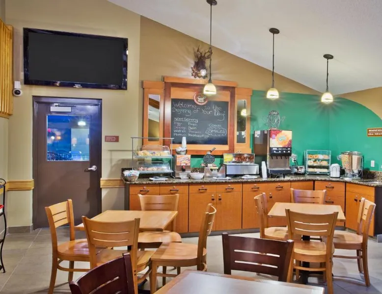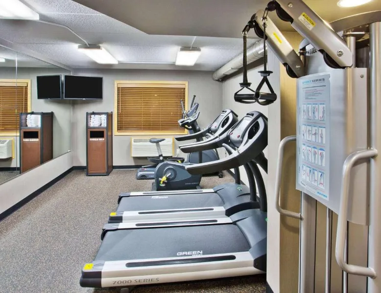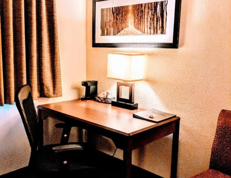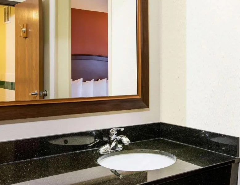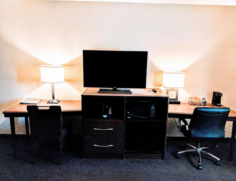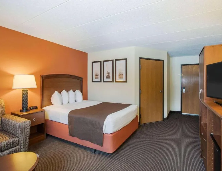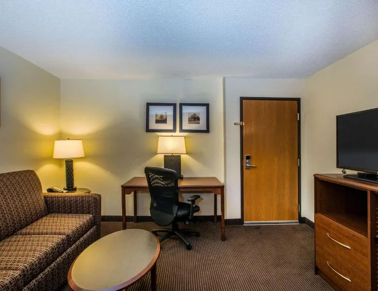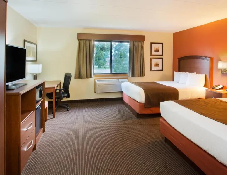 Comfortable Accommodations: AmericInn by Wyndham Grand Forks in Grand Forks offers family rooms with air-conditioning, private bathrooms, and free WiFi. Each room includes a tea and coffee maker, refrigerator, and TV. Leisure Facilities: Guests can enjoy a fitness center, indoor swimming pool, and hot tub. Additional amenities include a lounge, fitness room, and outdoor seating area. Dining Options: A variety of breakfast options are available, including continental, American, buffet, and à la carte. Breakfast includes warm dishes, fresh pastries, pancakes, and fruits. Location and Attractions: Located 6.2 mi from Grand Forks International Airport, the hotel is near attractions such as University of North Dakota (1.7 mi) and Polk County Museum (29 mi). Boating is available in the surroundings. This suite has a sofa, flat-screen cable TV, and a desk. A microwave and refrigerator are also included.