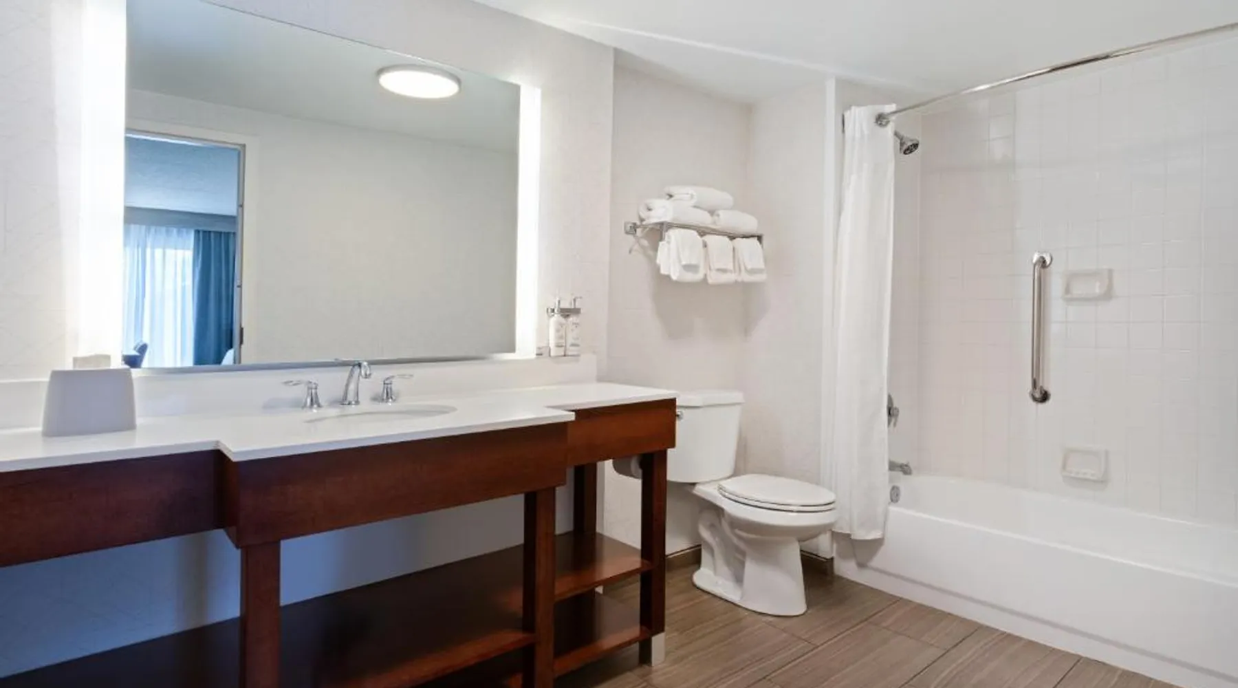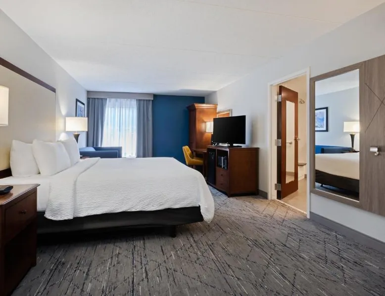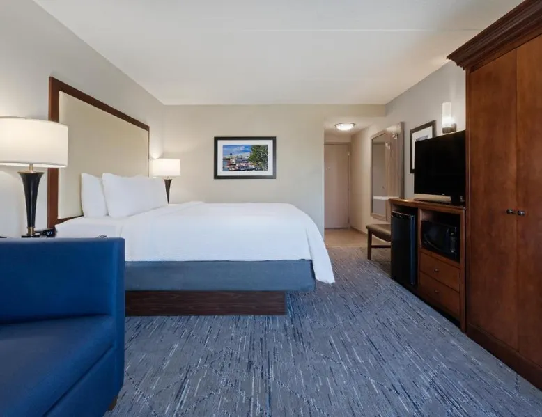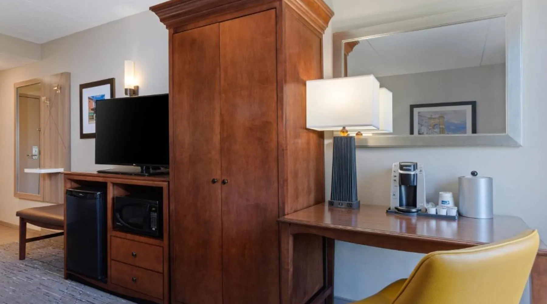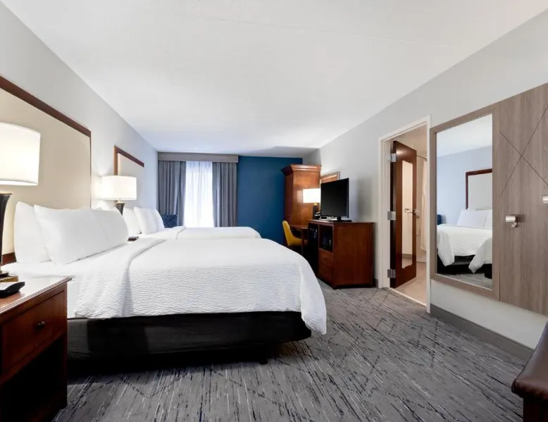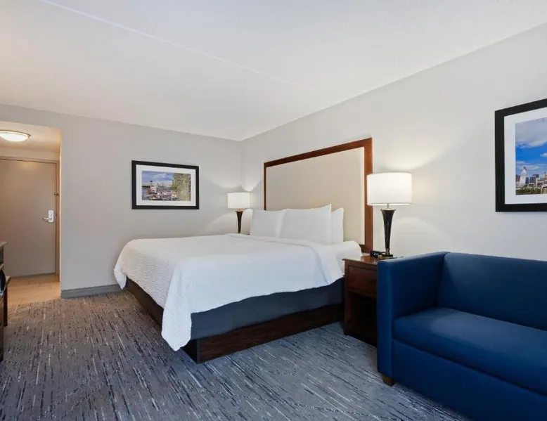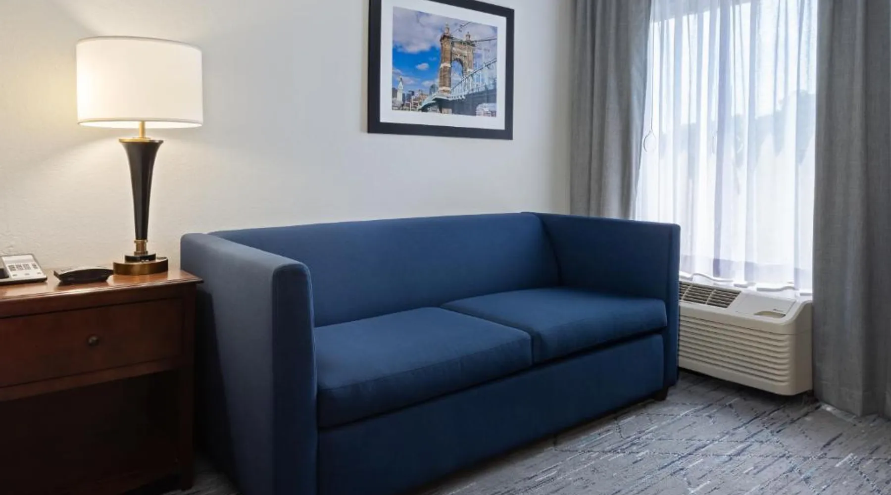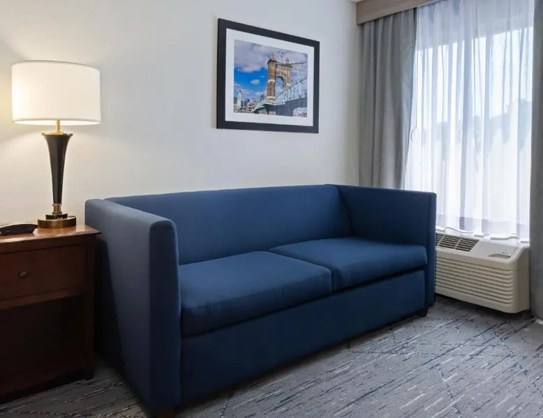 Located on the Ohio River, this hotel features an on-site indoor pool and rooms with 43-inch flat-screen TVs and free Wi-Fi. Cincinnati-Northern Kentucky International Airport is 12.4 miles away. A work desk, armoire and free bathroom amenities are provided in all rooms at the Holiday Inn Express & Suites - Cincinnati Riverfront. Each room is also equipped with a refrigerator and microwave. This hotel offers a daily breakfast and an on-site fitness room. A business center and free parking is also available. Holiday Inn Express & Suites - Cincinnati Riverfront is 7 minutes' drive from Horseshoe Casino Cincinnati. The Paul Brown Stadium is less than 2 miles away. Devou Park Golf Course and Great American Baseball Park are both within 10 minutes of the hotel. Featuring free toiletries, this double room includes a private bathroom with a bath, a shower and a hairdryer. The spacious air-conditioned double room features a flat-screen TV with streaming services, a tea and coffee maker, a wardrobe, a sofa as well as city views. The unit has 2 beds.