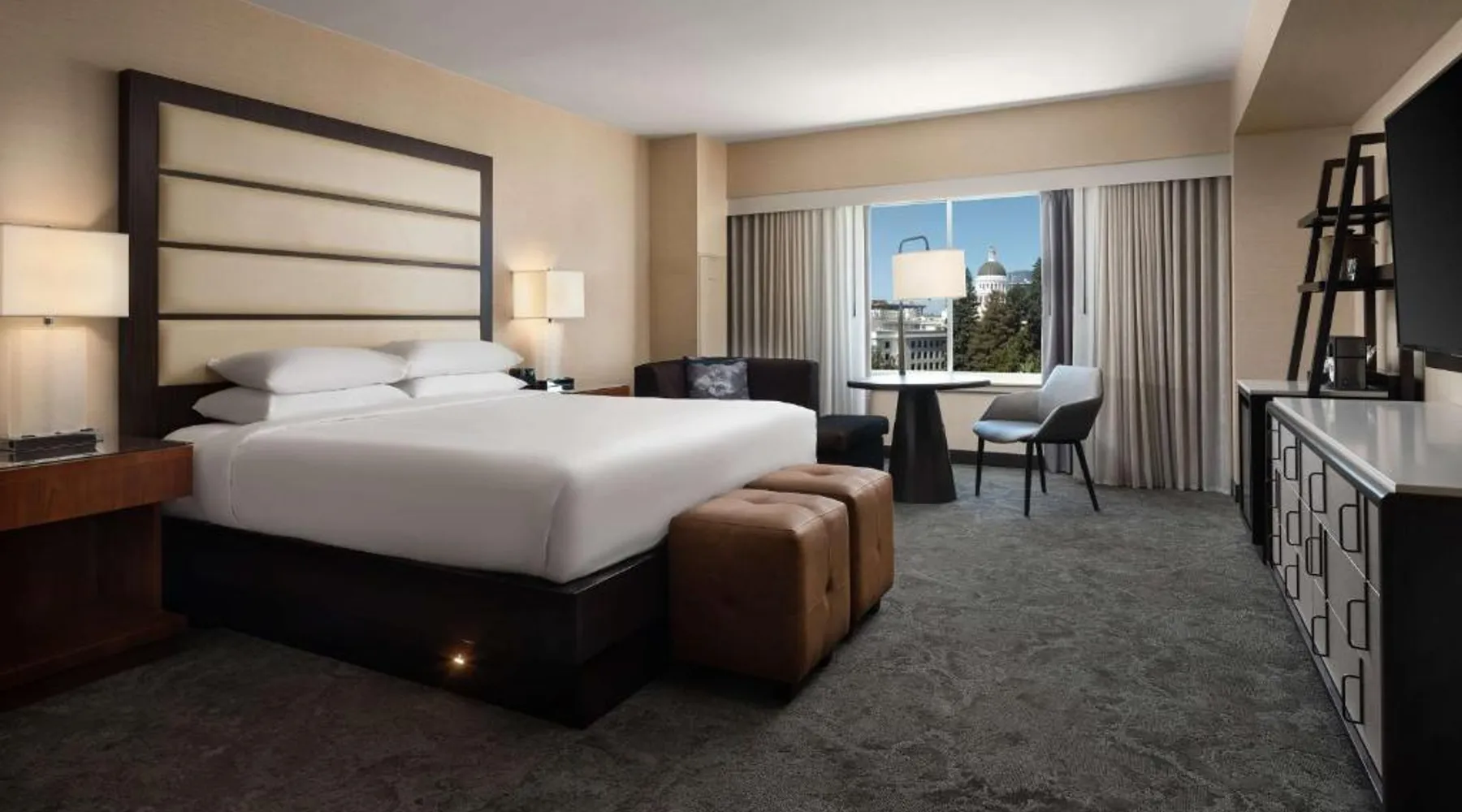 Located across the street from the California State Capitol, Hyatt Regency Sacramento features an outdoor heated pool, a restaurant, and a full service spa. Free WiFi is offered in all rooms. Subtle gold, red and white accents are featured in every contemporary, spacious room. A flat-screen TV, a coffee machine, and free toiletries in the private bathroom is offered. Outdoor fireplace, high ceilings, soft gray décor, an illuminated bar and modern chandeliers are featured at Dawson's Steakhouse, the restaurant located onsite. Vines Café features serves Northern California cuisine for breakfast and lunch. A Starbucks Coffee bar, a 24-hour fitness center, dry cleaning services and massage services are all onsite. A gift shop is also available. Sacramento International Airport is 20 minutes’ drive away. Sacramento Convention Center Complex is just 5 minutes’ walk away from Hyatt Regency Sacramento. This air-conditioned quadruple room is consisted of of a TV with cable channels and a private bathroom. The unit has 2 beds.