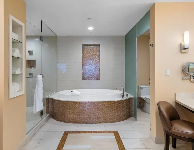 Nestled in the desert mountains of Rancho Mirage, this California resort offers on-site restaurants and a casino. Rooms include free WiFi and a flat-screen TV. Featuring mountain views, the modern rooms at Agua Caliente Casino Resort Spa Rancho Mirage are bright and comfortably furnished. All rooms include luxury linens. Conveniently located at the Agua Caliente Casino Resort Spa Rancho Mirage, the Sunstone Spa offers body treatments and massages as well as hair style, design and color services. Couples’ therapy rooms with private outdoor decks are available. The Palm Springs International Airport is 18 minutes' drive from the resort. The Palm Springs Aerial Tramway is 22 minutes' drive away. A flat-screen TV and an private bathroom with dual-sink vanity and separate tub and shower are provided in this room.