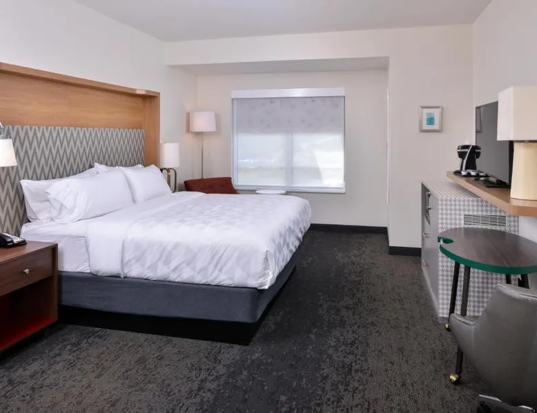 Comfortable Accommodations: Holiday Inn & Suites - Farmington Hills - Detroit NW by IHG in Farmington Hills offers rooms with air-conditioning, private bathrooms, and modern amenities. Guests appreciate the room cleanliness and comfort. Dining and Leisure: The family-friendly restaurant serves American cuisine with vegetarian, gluten-free, and dairy-free options. Additional facilities include a fitness center, sun terrace, indoor swimming pool, and free WiFi. Convenient Location: Located 29 mi from Detroit Metro Airport, the hotel is near attractions such as Royal Oak Music Theater (14 mi) and Detroit Golf Club (16 mi). Free on-site private parking is available. The spacious suite provides air conditioning, a tea and coffee maker, as well as a private bathroom featuring a walk-in shower and a hairdryer. The suite's kitchenette, which has a refrigerator and a microwave, is available for cooking and storing food. The suite features carpeted floors, a seating area with a flat-screen TV with cable channels, a wardrobe, a sofa, as well as heating. The unit offers 1 bed.