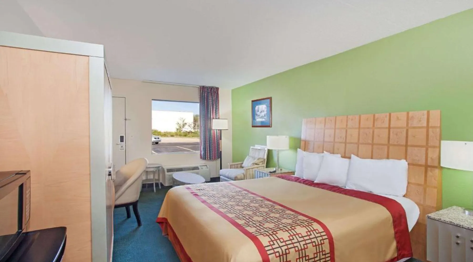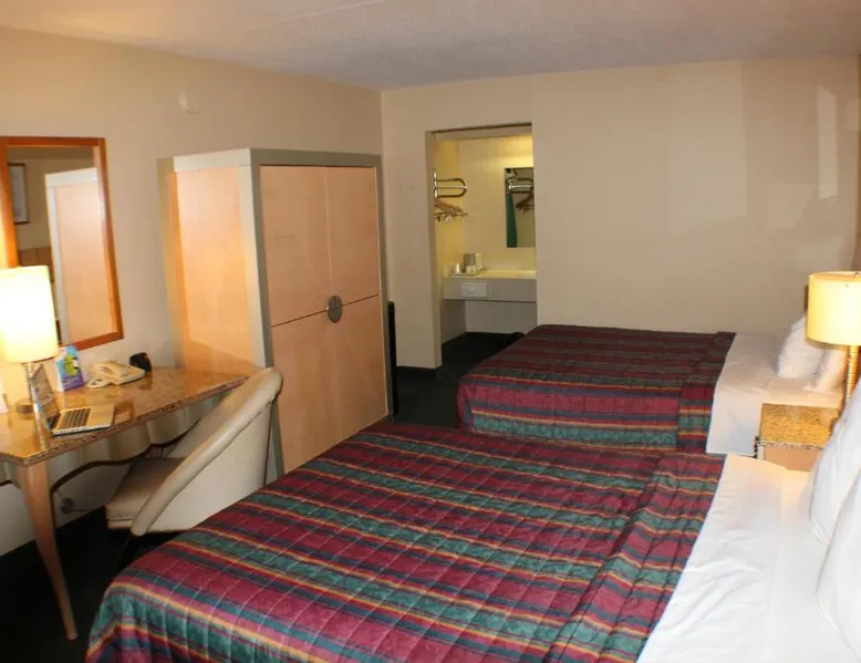 Comfortable Accommodations: Days Inn by Wyndham Greeneville in Greeneville offers family rooms with air-conditioning, private bathrooms, and free WiFi. Each room includes a tea and coffee maker, hairdryer, refrigerator, work desk, seating area, microwave, bath or shower, carpeted floors, and a TV. Facilities and Services: Guests can enjoy a fitness center and free on-site private parking. The property provides private check-in and check-out, a 24-hour front desk, full-day security, and interconnected rooms. Additional amenities include free toiletries. Breakfast and Dining: A continental buffet breakfast is served with juice and fresh pastries. The motel offers a seating area for relaxation. Local Attractions: Located 2.1 mi from Andrew Johnson National Historic Site and Cumberland Presbyterian Church, 25 mi from Hands On! Discovery Center, and 29 mi from George L. Carter Railroad Museum. This double room features air conditioning, sofa and microwave.