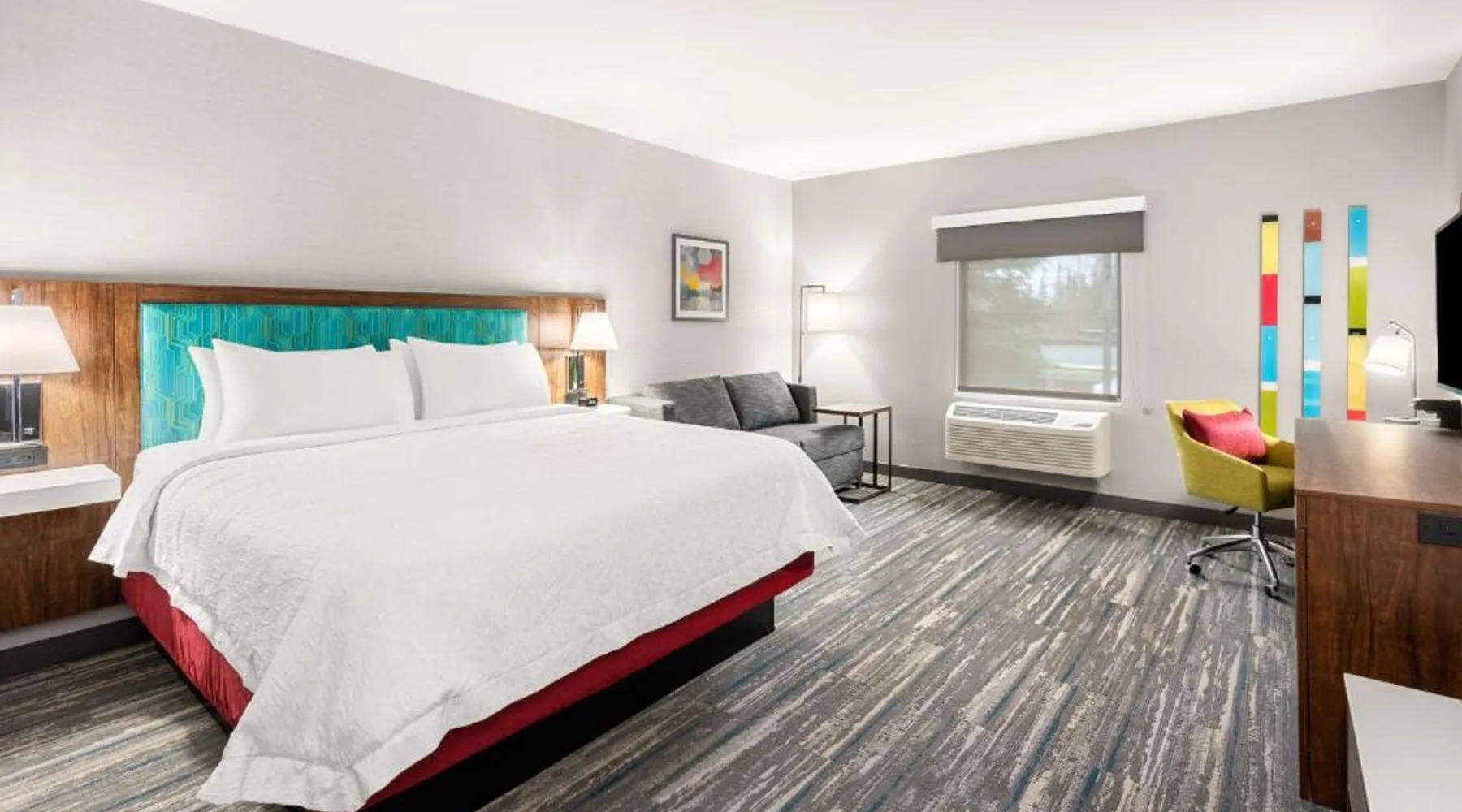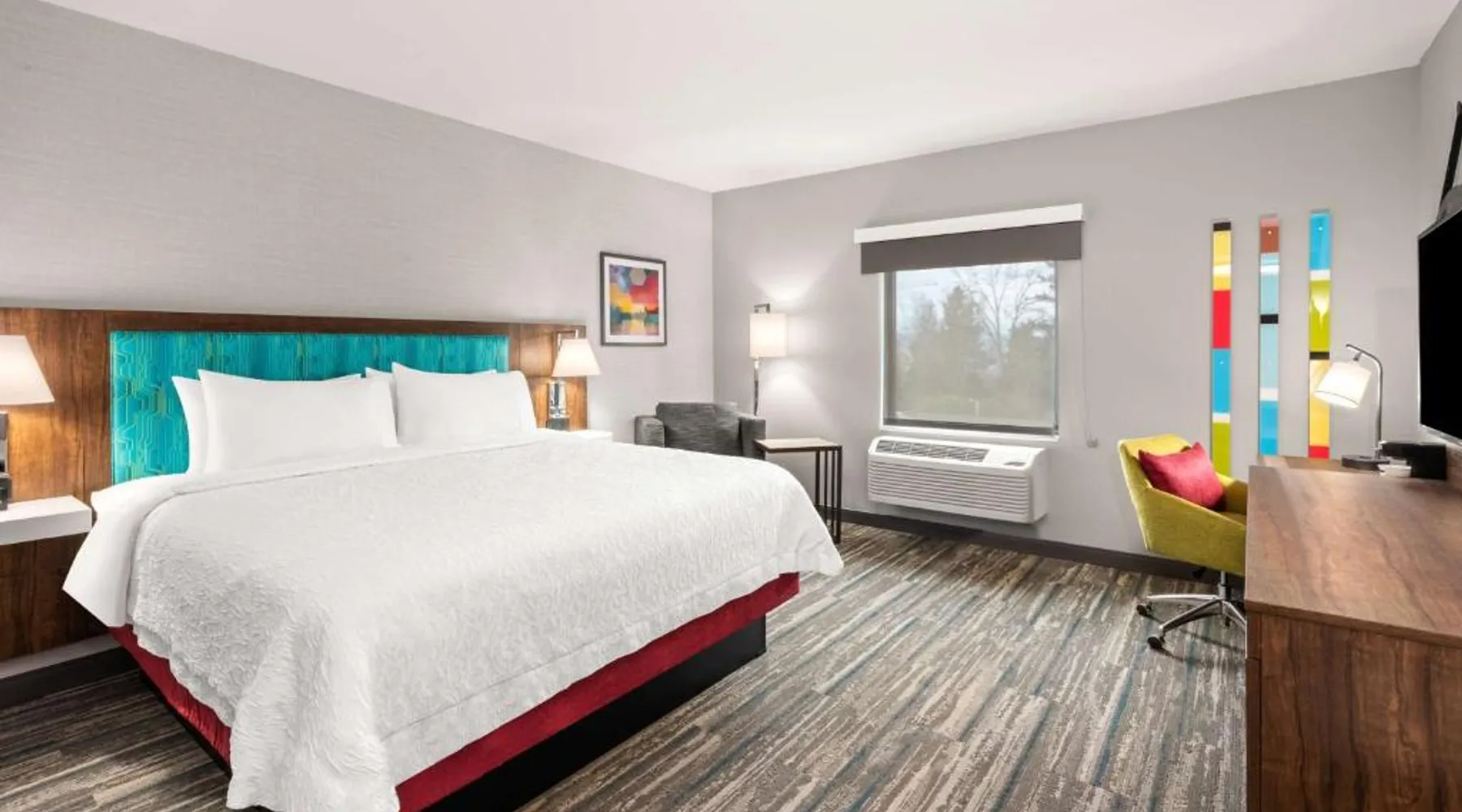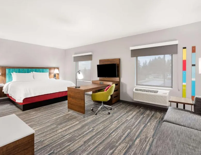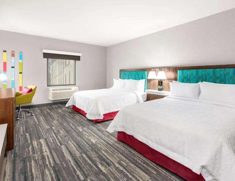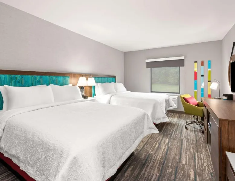 Comfortable Accommodations: Hampton Inn & Suites Tigard in Tigard offers comfortable rooms with free WiFi, private check-in and check-out services, and a 24-hour front desk. Guests enjoy amenities such as a fitness room, hot tub, and outdoor seating area. Leisure Facilities: The hotel features a saltwater and indoor swimming pool, a lounge, and a minimarket. Additional facilities include a business area, electric vehicle charging station, and bicycle parking. Free on-site parking is available for all guests. Convenient Location: Located 16 mi from Portland International Airport, the hotel is near attractions like South Waterfront City Park (7.5 mi) and Portland Art Museum (8.7 mi). Guests appreciate the attentive staff, room cleanliness, and the convenient location. This quadruple room features a tea and coffee maker, heating and a flat-screen TV with cable channels. The unit offers 2 beds.