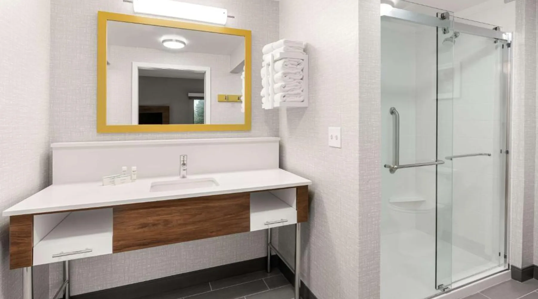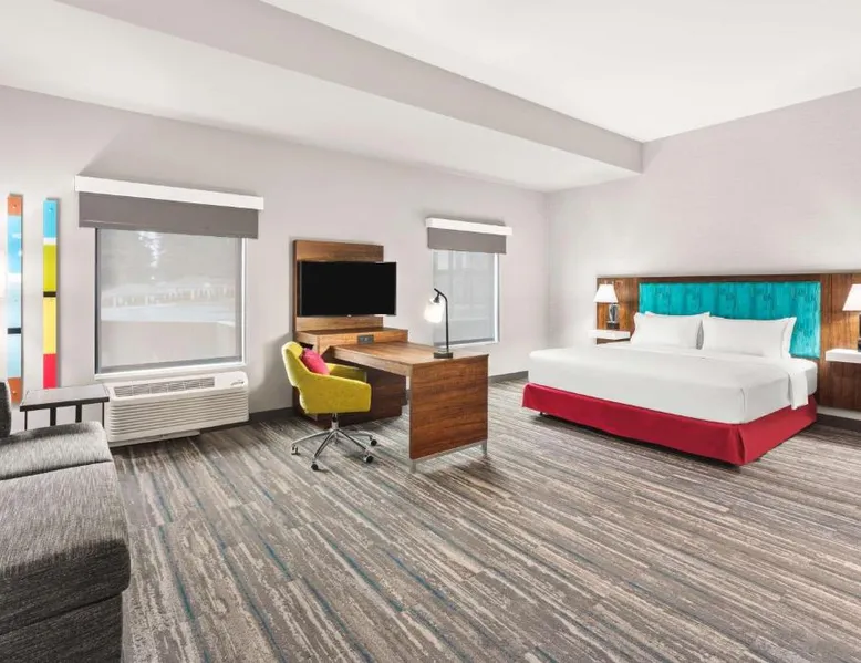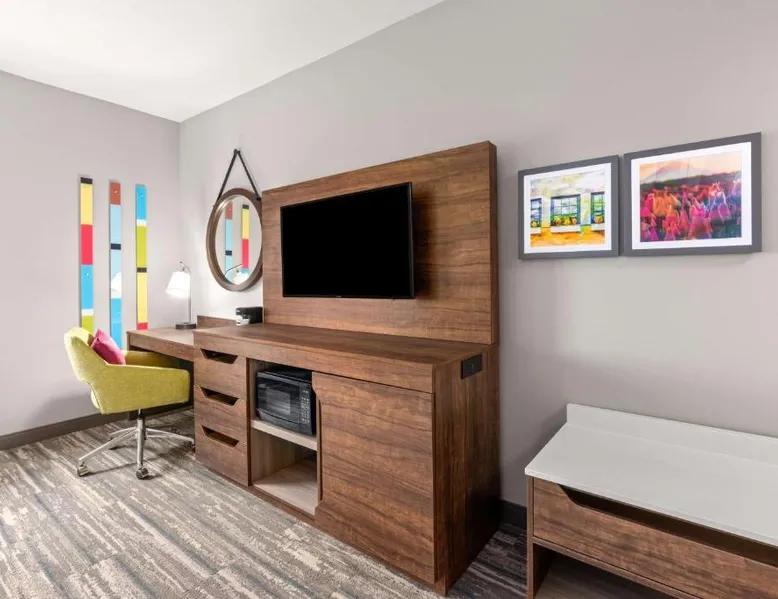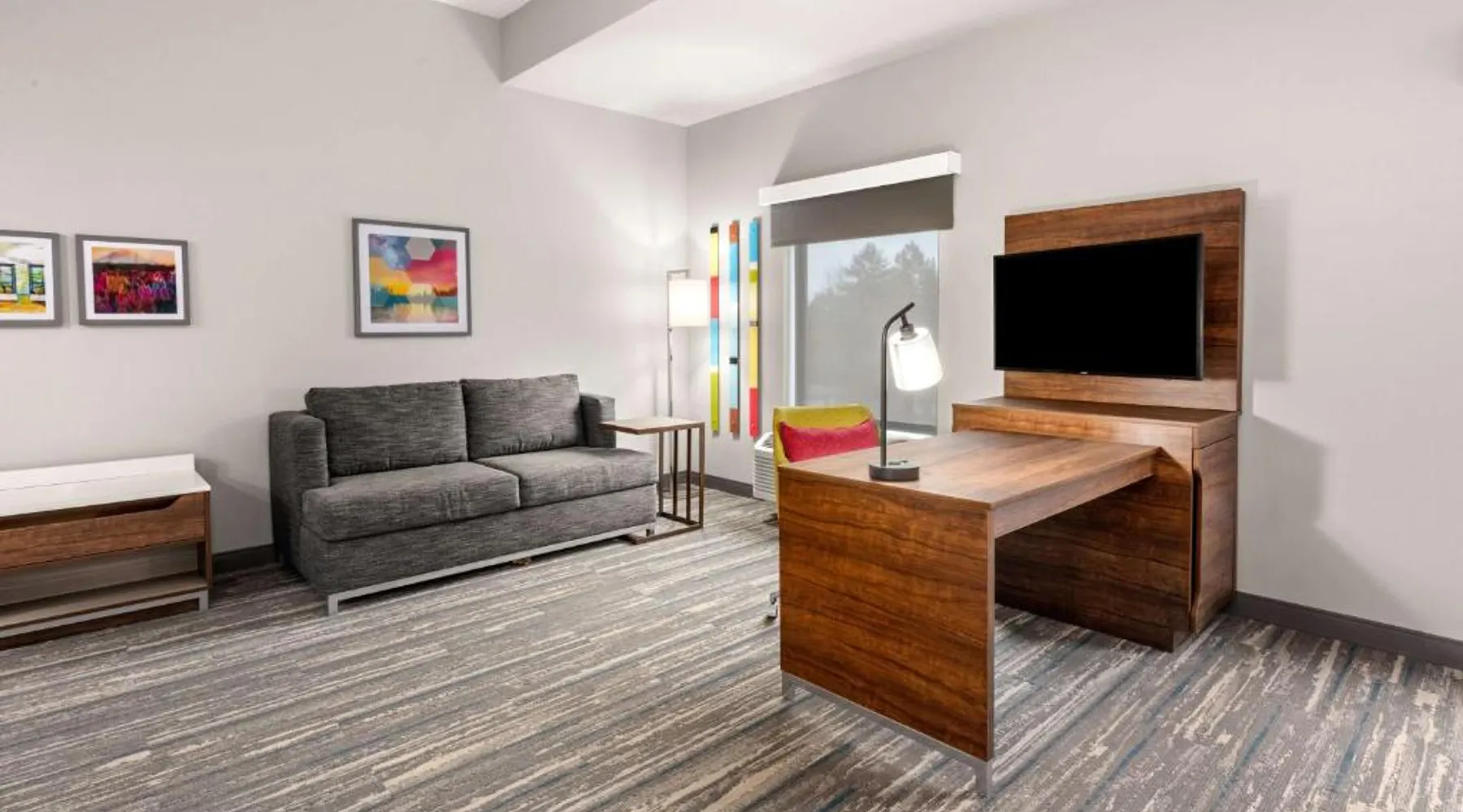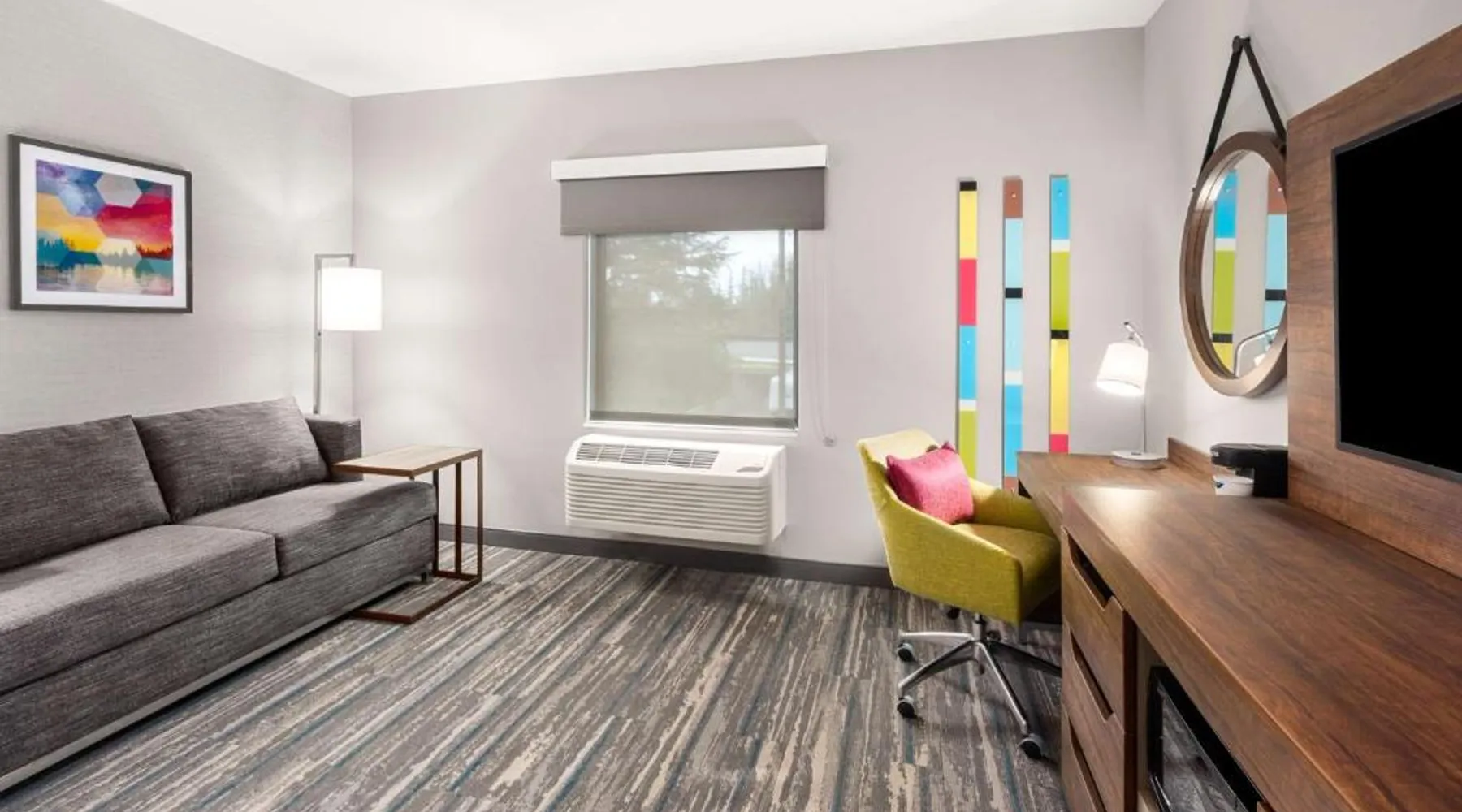 Comfortable Accommodations: Hampton Inn & Suites Tigard in Tigard offers comfortable rooms with free WiFi, private check-in and check-out services, and a 24-hour front desk. Guests enjoy amenities such as a fitness room, hot tub, and outdoor seating area. Leisure Facilities: The hotel features a saltwater and indoor swimming pool, a lounge, and a minimarket. Additional facilities include a business area, electric vehicle charging station, and bicycle parking. Free on-site parking is available for all guests. Convenient Location: Located 16 mi from Portland International Airport, the hotel is near attractions like South Waterfront City Park (7.5 mi) and Portland Art Museum (8.7 mi). Guests appreciate the attentive staff, room cleanliness, and the convenient location. This quadruple room features a tea and coffee maker, heating and a flat-screen TV with cable channels. The unit offers 2 beds.