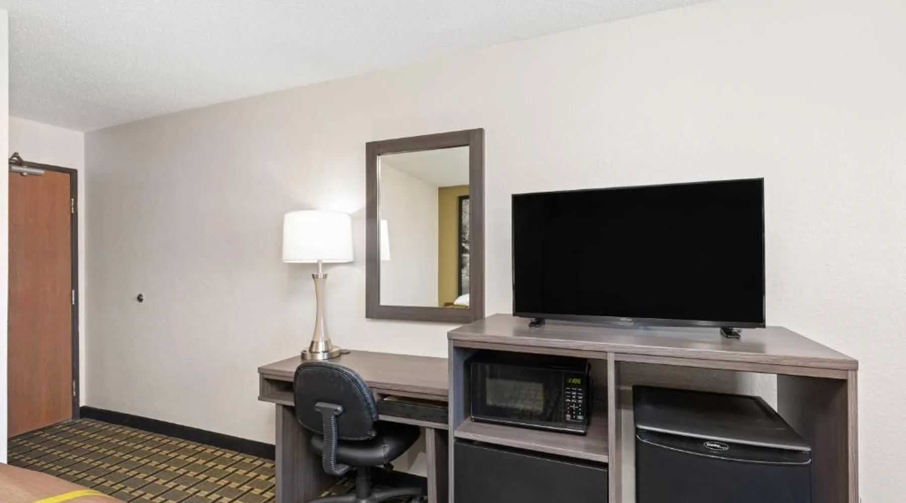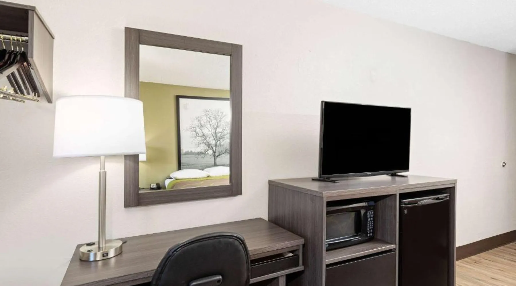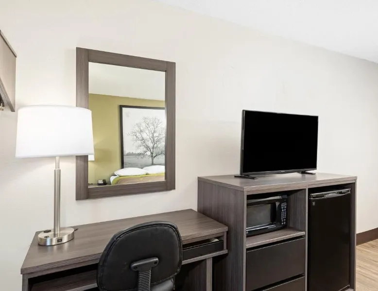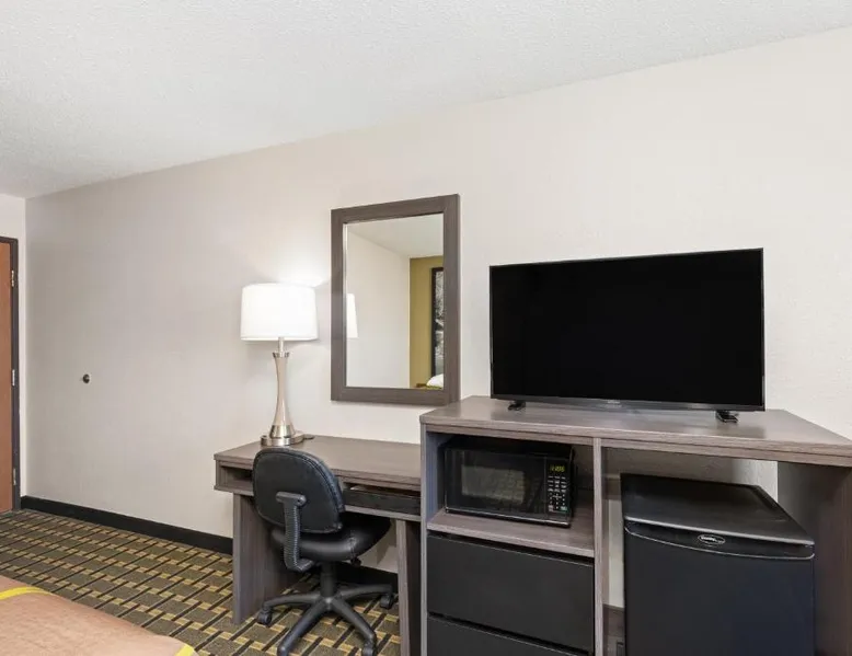 Comfortable Accommodations: Super 8 by Wyndham Johnson City in Johnson City offers family rooms with air-conditioning, private bathrooms, and free WiFi. Each room includes a tea and coffee maker, hairdryer, refrigerator, free toiletries, microwave, TV, and a work desk. Convenient Facilities: Guests benefit from a 24-hour front desk, free on-site parking, and a kitchenette with an oven and stovetop. Additional amenities include a bath, shower, carpeted floors, sofa, and free toiletries. Prime Location: Located 13 mi from Tri-Cities Regional Airport, the hotel is near attractions such as Tweetsie Trail and George L. Carter Railroad Museum (4.3 mi), Tipton-Haynes Historic Site (5.6 mi), Hands On! Discovery Center (9.3 mi), and Bristol Motor Speedway (14 mi). Guest Satisfaction: Guests appreciate the value for money, room cleanliness, and the attentive property staff and service support. This room offers a cable TV, microwave, and small refrigerator.