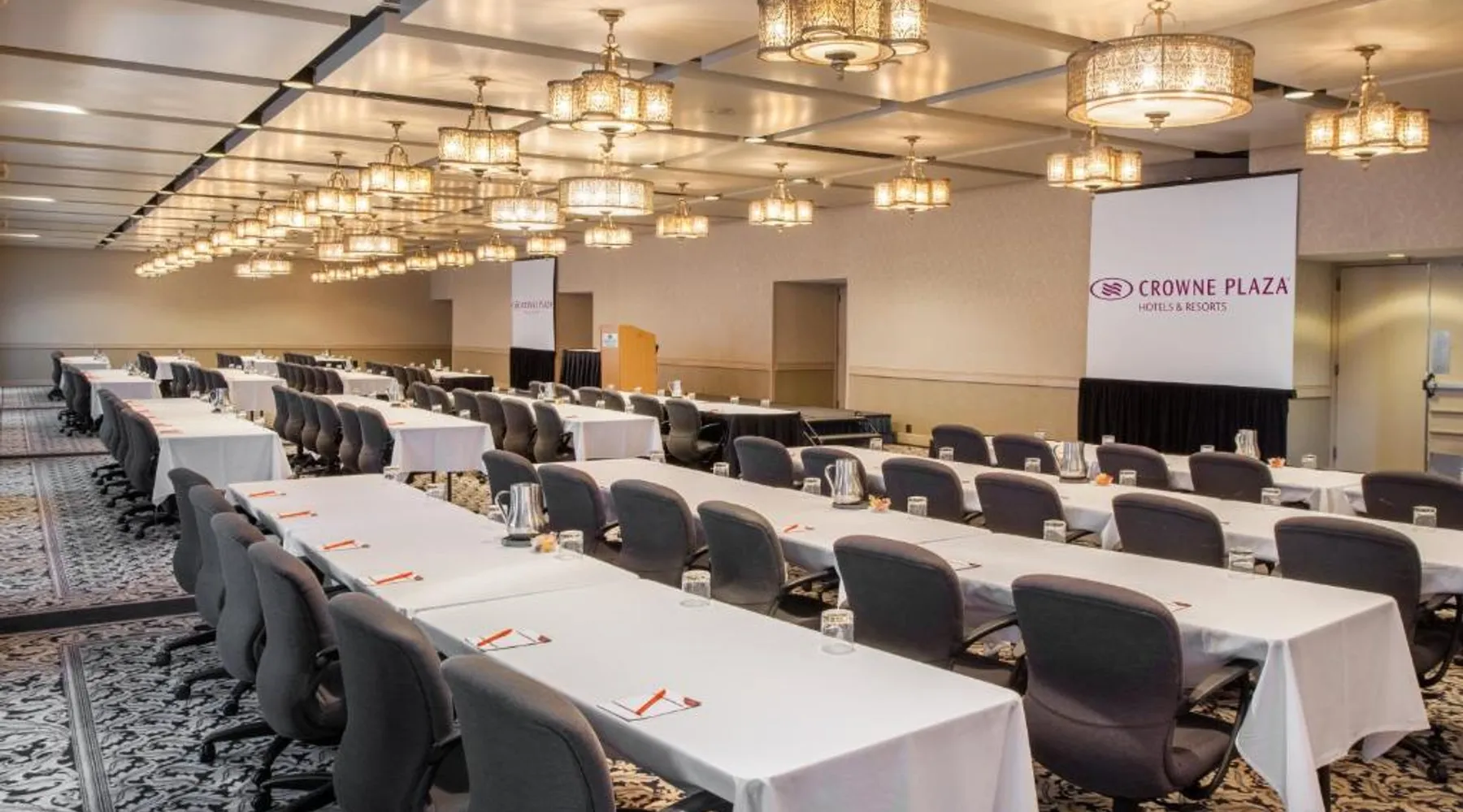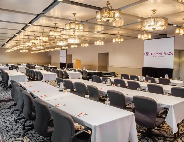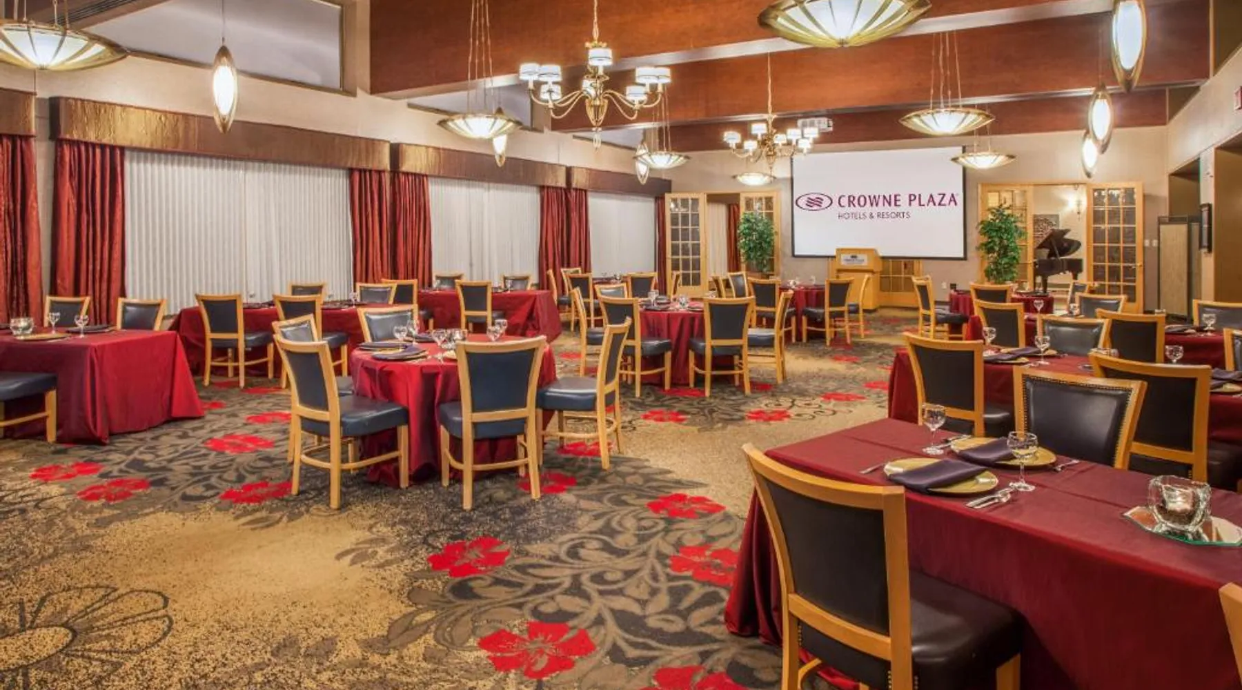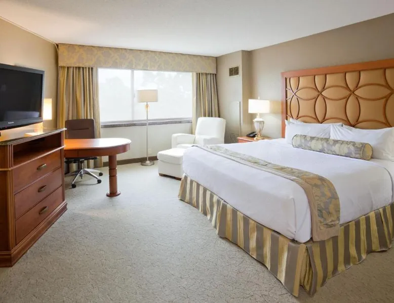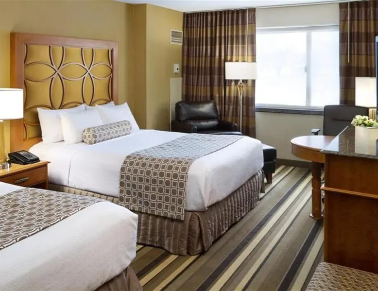 Located just off I-494, this hotel is 12 mi west of downtown Minneapolis. It features a large indoor pool and spa. A 42-inch flat screen TV and free WiFi access are included in every room at Crowne Plaza Minneapolis West-Plymouth. A refrigerator is provided in each unit. The Mall of America is 24 mi from the hotel. Target Field is 18 mi away. A 42-inch flat-screen TV is offered in this room, along with a fridge.