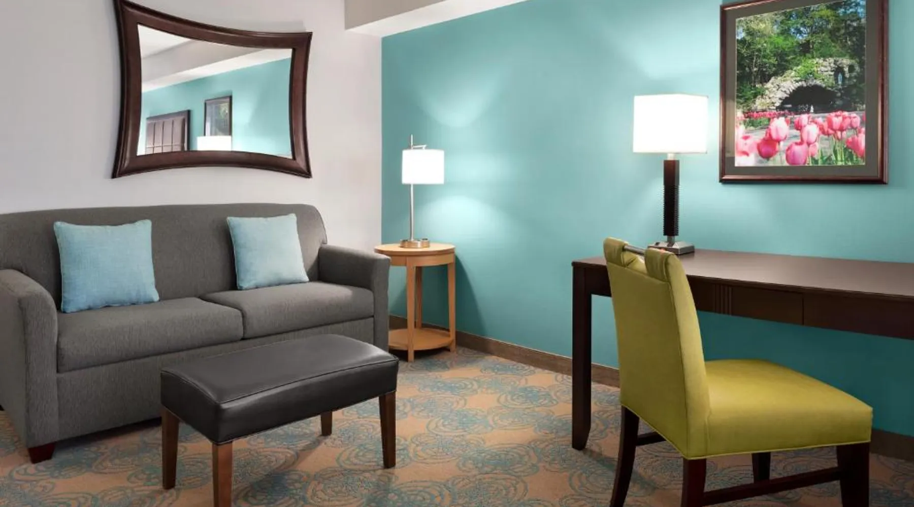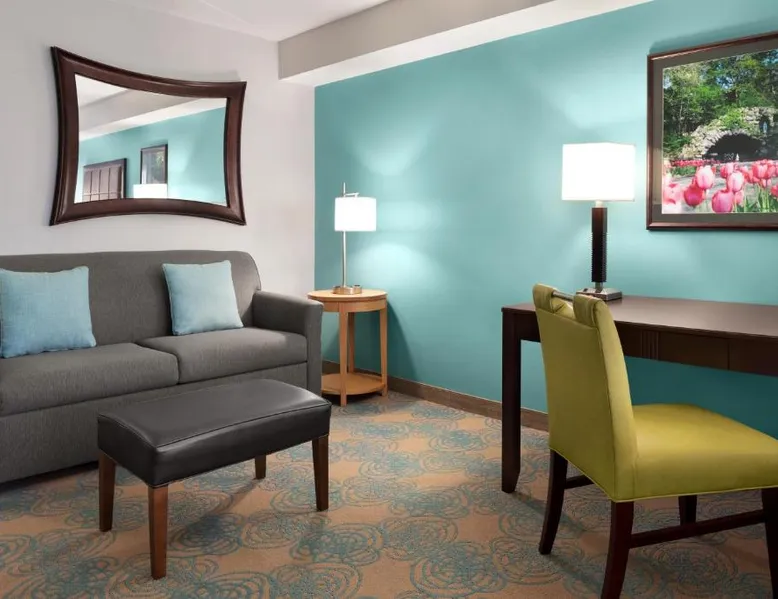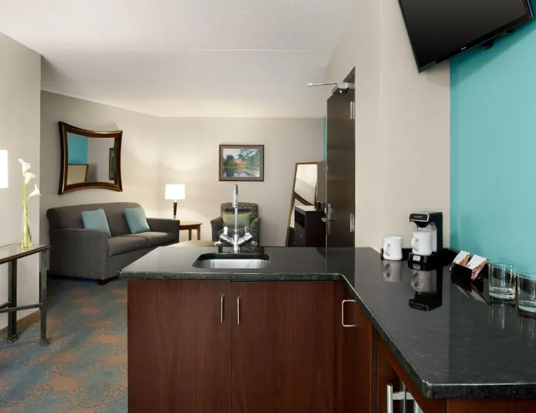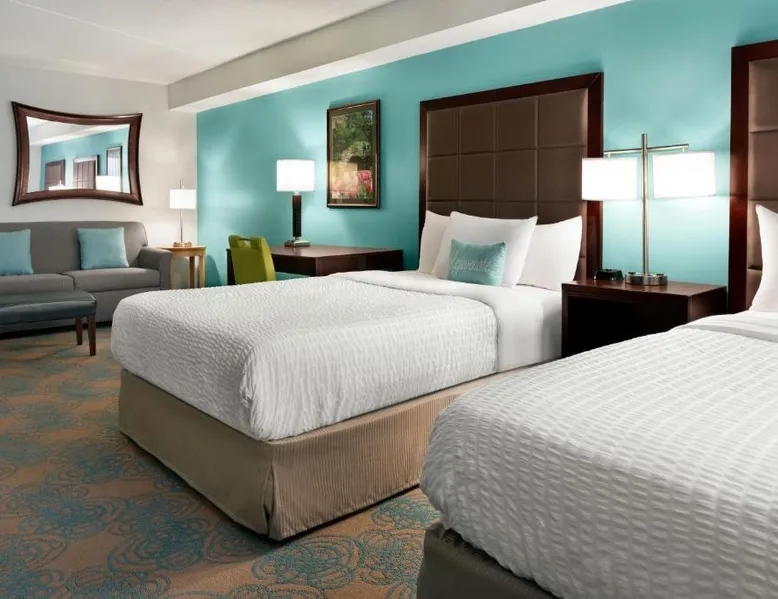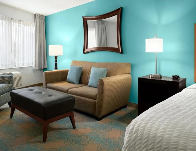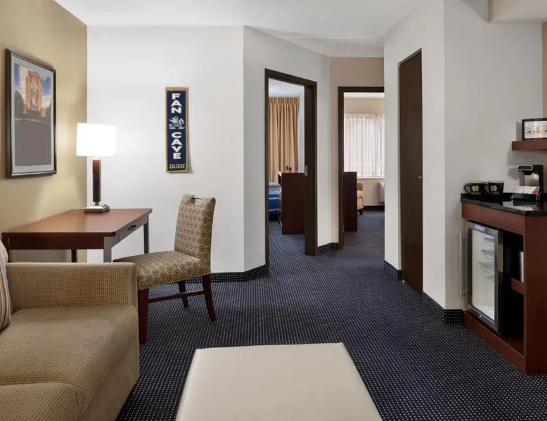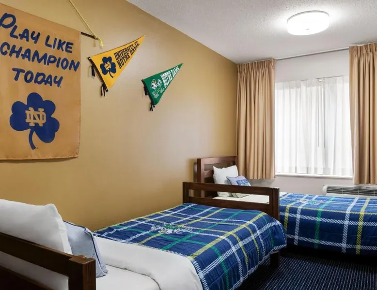 This cozy inn features an extensive gym, free WiFi and rooms with a flat-screen TV. It is located on the Saint Mary’s College campus, adjacent to the University of Noter Dame. The elegant rooms are decorated in soft neutral colors. Each room offers a coffee maker and work desk. A comfortable seating area is also provided. Guests can relax in the sauna. The Inn at Saint Mary's offers free airport transportation to/from South Bend Regional Airport, 6 miles away. Inn at the Inn at Saint Mary's serves a hot breakfast buffet every morning and cocktails in The Exhale Lounge in the evening. The Potawatomi Zoo is 10 minutes away by car and Noter Dame Stadium is 2.3 miles away. The spacious quadruple room offers air conditioning, a tea and coffee maker, as well as a private bathroom boasting a bath or a shower and a hairdryer. The quadruple room provides a flat-screen TV with cable channels, a wardrobe, a sofa and heating. The unit has 2 beds.