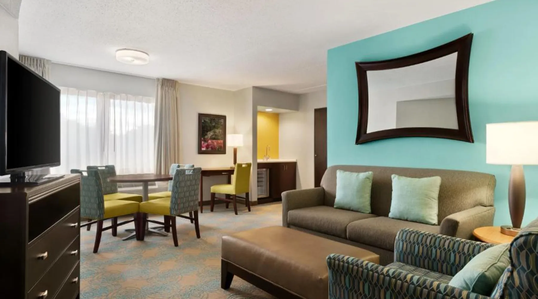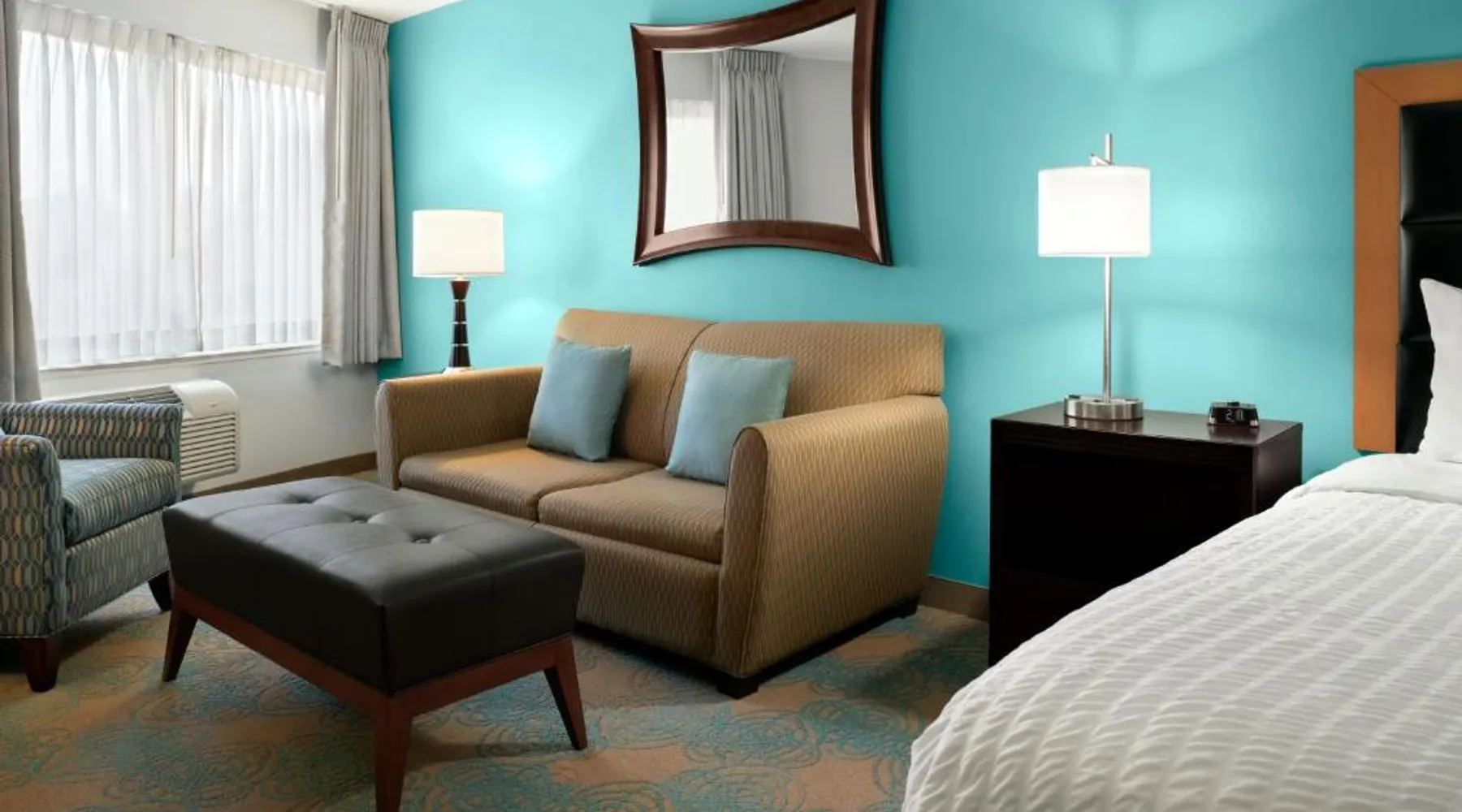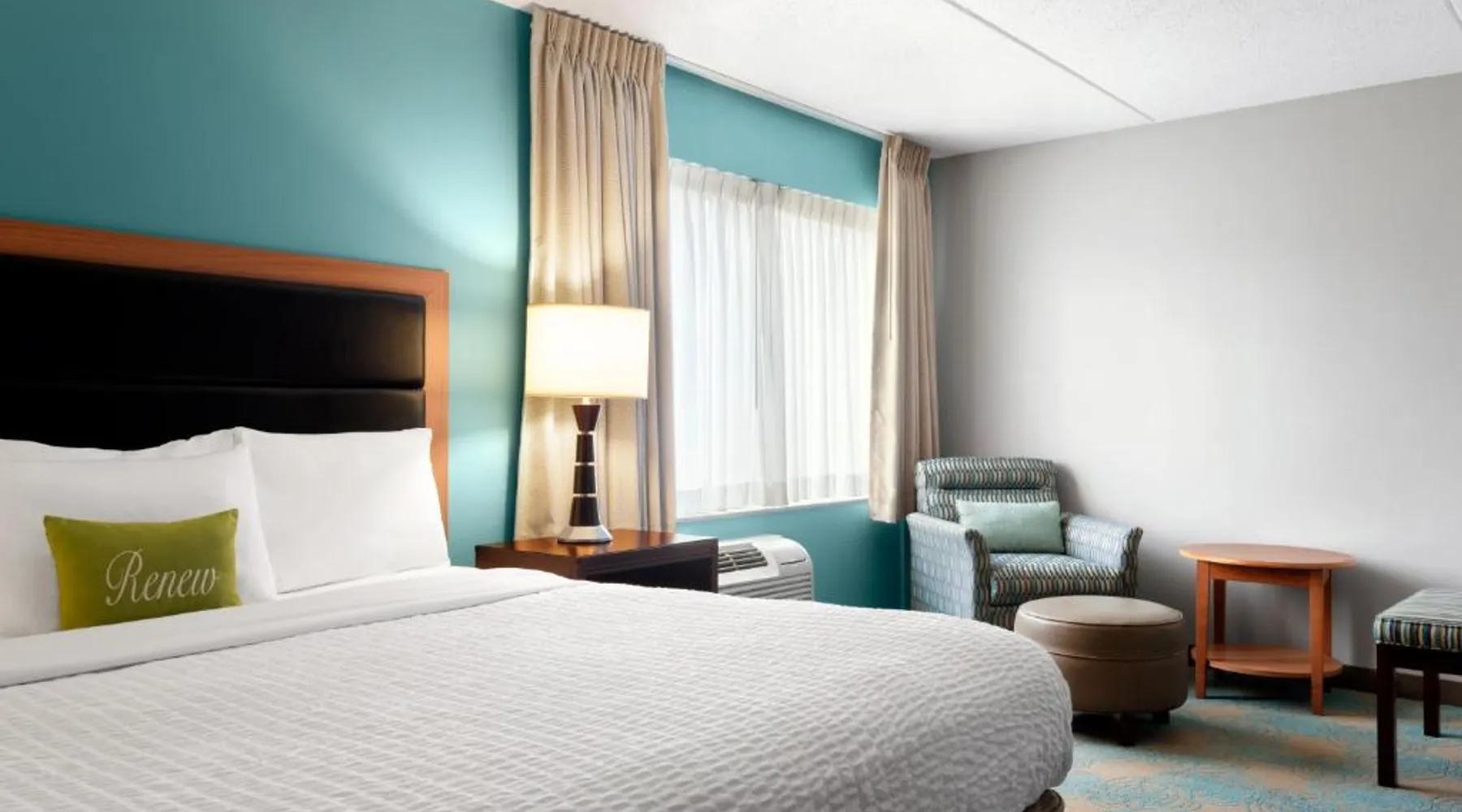 This cozy inn features an extensive gym, free WiFi and rooms with a flat-screen TV. It is located on the Saint Mary’s College campus, adjacent to the University of Noter Dame. The elegant rooms are decorated in soft neutral colors. Each room offers a coffee maker and work desk. A comfortable seating area is also provided. Guests can relax in the sauna. The Inn at Saint Mary's offers free airport transportation to/from South Bend Regional Airport, 6 miles away. Inn at the Inn at Saint Mary's serves a hot breakfast buffet every morning and cocktails in The Exhale Lounge in the evening. The Potawatomi Zoo is 10 minutes away by car and Noter Dame Stadium is 2.3 miles away. The spacious quadruple room offers air conditioning, a tea and coffee maker, as well as a private bathroom boasting a bath or a shower and a hairdryer. The quadruple room provides a flat-screen TV with cable channels, a wardrobe, a sofa and heating. The unit has 2 beds.