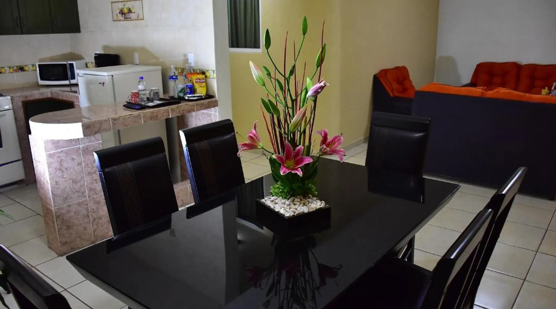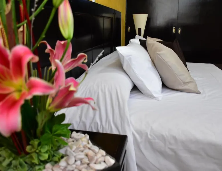 Comfortable Accommodations: Hotel Suite Azomali in Tula de Allende offers family rooms with private bathrooms, kitchenettes, balconies, and terraces. Each room includes a work desk, free WiFi, and modern amenities. Exceptional Facilities: Guests enjoy a terrace, free WiFi, and a fully equipped kitchenette. Additional services include private check-in and check-out, a 24-hour front desk, daily housekeeping, room service, and a tour desk. Convenient Location: Located 41 mi from Felipe Ángeles International Airport, the hotel is near attractions such as Tula Archaeological Site (2.2 mi) and Huemac (15 mi). Free on-site private parking is available. Guest Satisfaction: Highly rated for its cleanliness, room comfort, and attentive staff, Hotel Suite Azomali ensures a pleasant stay for all visitors. This spacious suite features 1 living room, 2 separate bedrooms and 2 bathrooms with a shower and free toiletries. Meals can be prepared in the kitchen, which has a refrigerator, a dishwasher, kitchenware and an oven. This suite has a washing machine, a private entrance, a flat-screen TV with cable channels and a terrace. The unit has 2 beds.