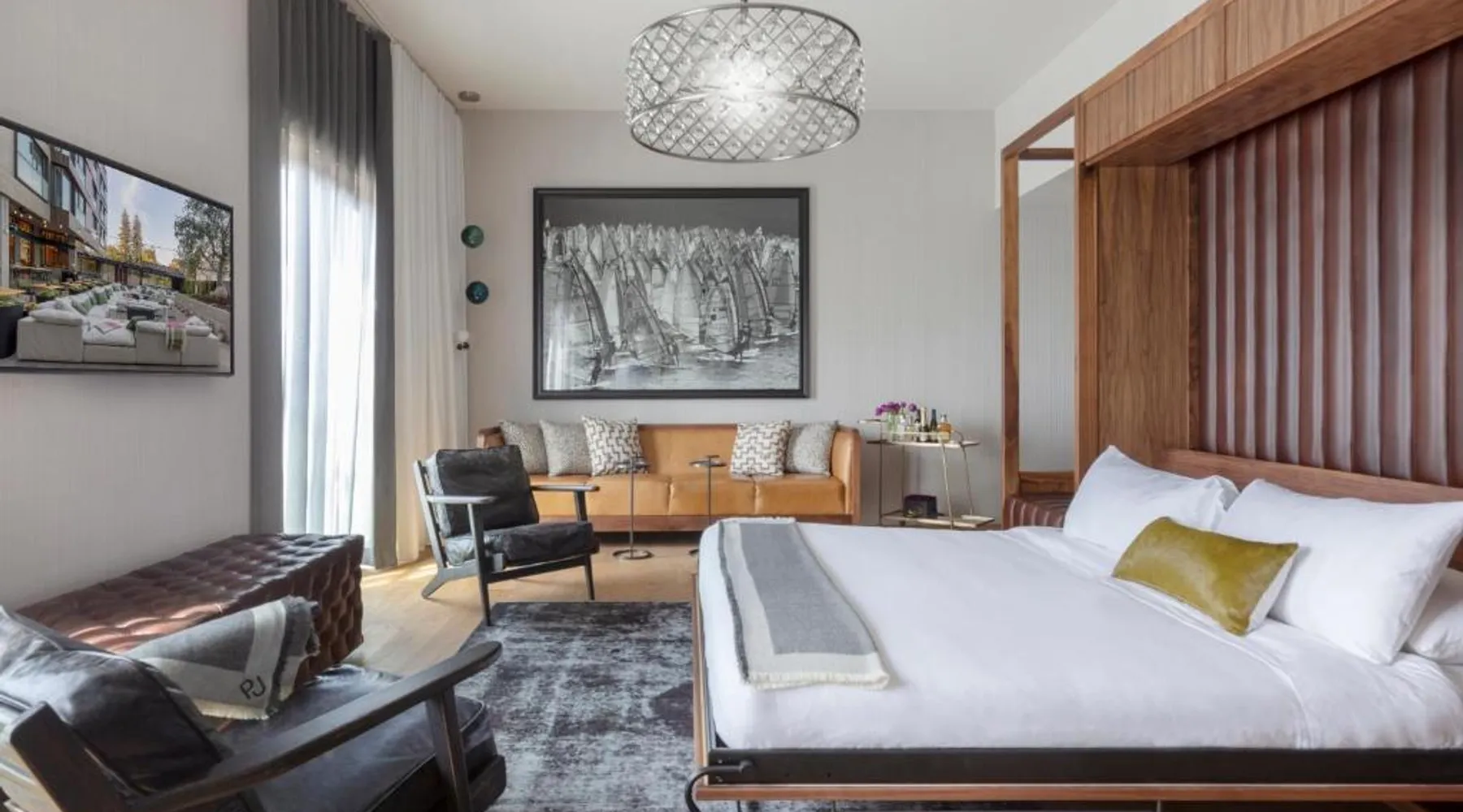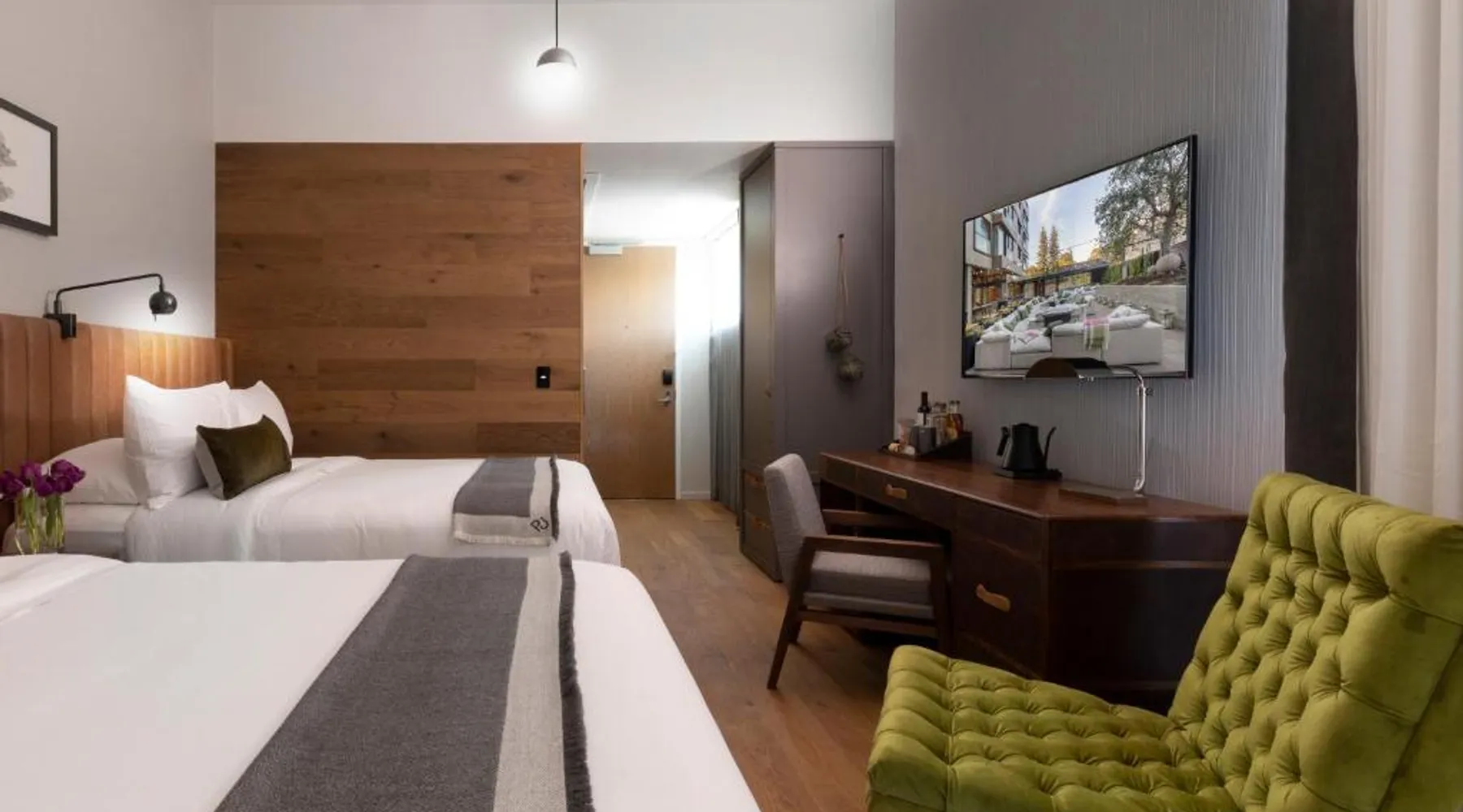 Park James features a bar and on-site dining in Menlo Park. This 4-star hotel offers a 24-hour front desk and a business center. The accommodations offers evening entertainment and luggage storage space. A continental breakfast can be enjoyed at the property. Stanford Shopping Center is 1.3 mi from the hotel. The spacious quadruple room provides air conditioning, a tea and coffee maker, as well as a private bathroom featuring a shower and a hairdryer. The quadruple room features a flat-screen TV, a wardrobe, a safe deposit box and heating. The unit offers 2 beds.