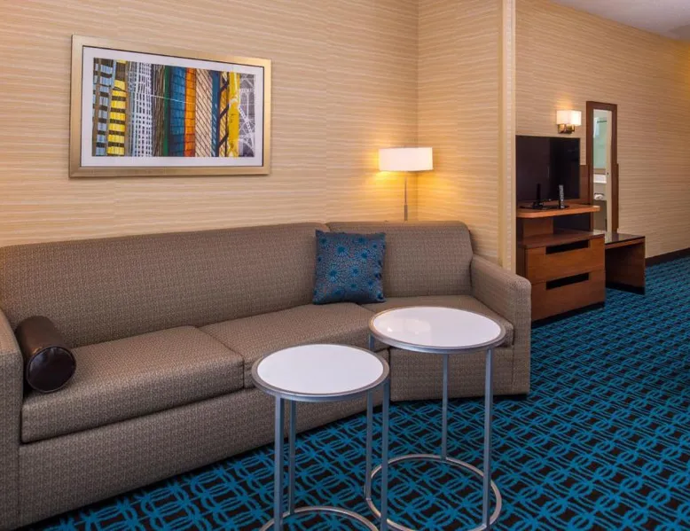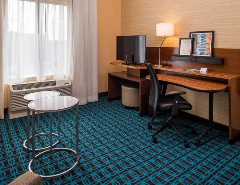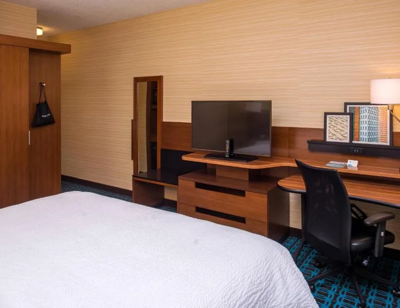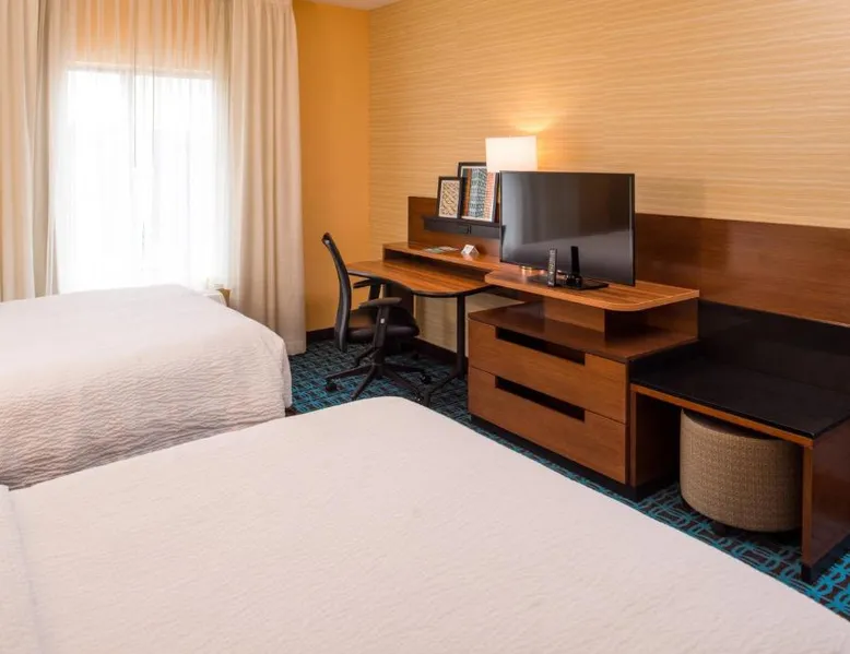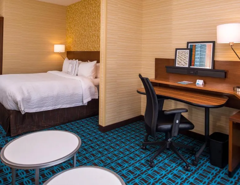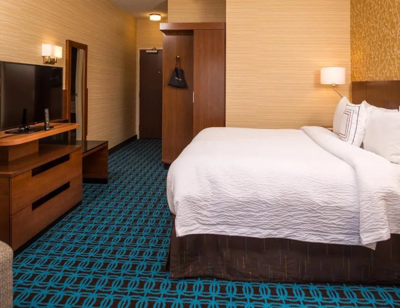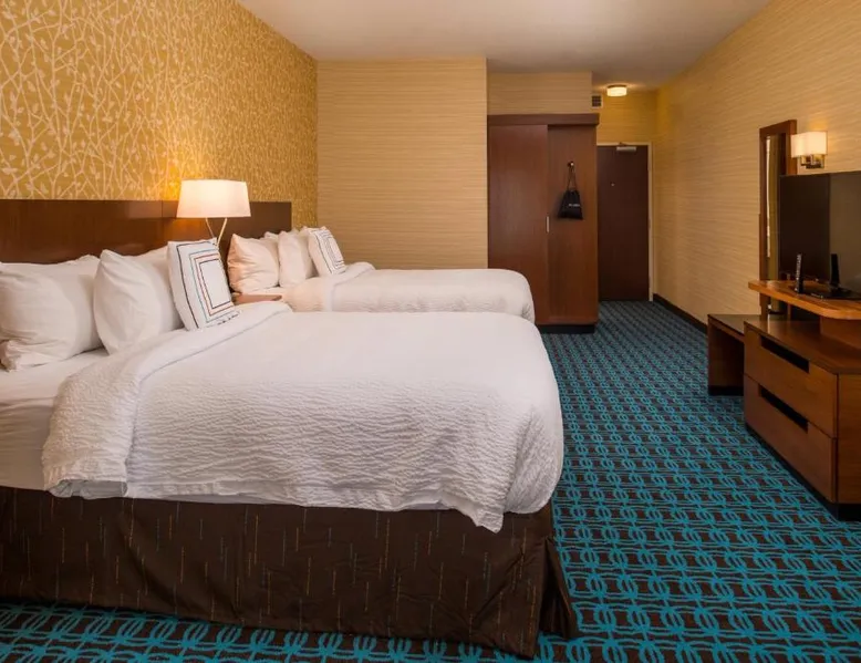 Comfortable Accommodations: Fairfield Inn & Suites by Marriott St. Louis Westport in St. Louis offers spacious rooms with air-conditioning, free WiFi, and modern amenities. Guests appreciate the room comfort and size. Exceptional Facilities: The hotel features a saltwater swimming pool, indoor pool, fitness center, sun terrace, and free bicycles. Additional amenities include a lounge, outdoor fireplace, and barbecue facilities. Convenient Location: Located 11 mi from St. Louis Lambert International Airport, the hotel is near attractions such as Hollywood Casino St. Louis (6.2 mi) and Forest Park (11 mi). Guests enjoy easy access to local sites. Guest Services: Highly rated for its attentive staff and excellent service support. The hotel offers an American buffet breakfast, 24-hour front desk, and paid on-site parking. This double room features air conditioning, a carpeted floor and a TV. The unit offers 1 bed.