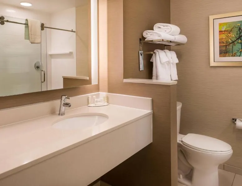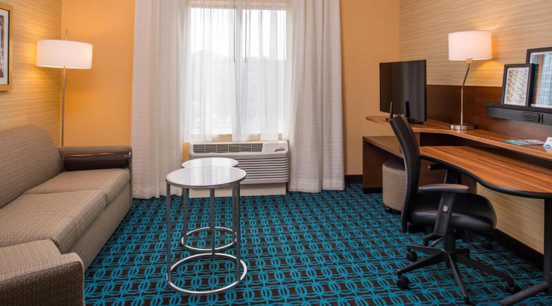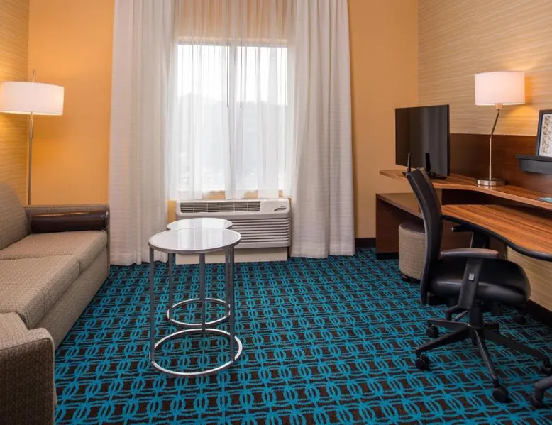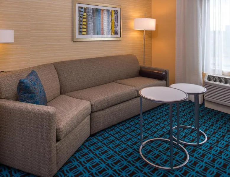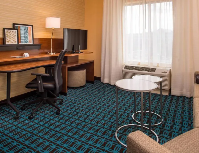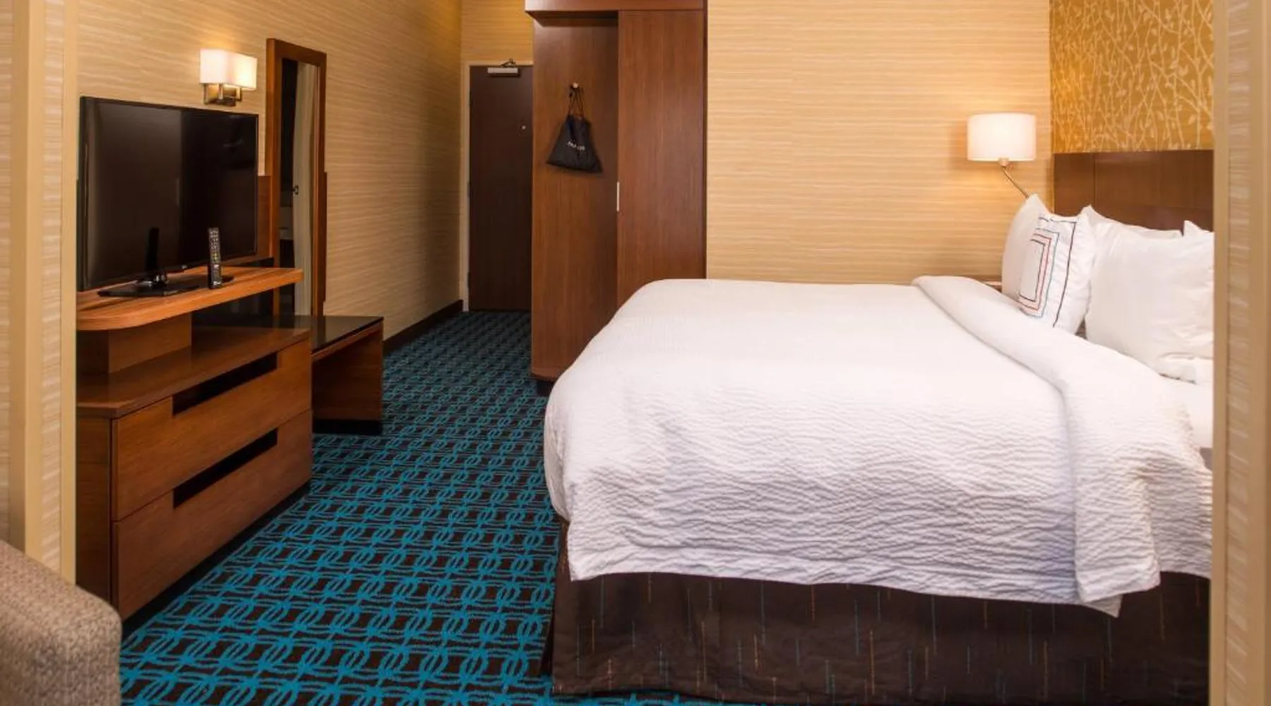 Comfortable Accommodations: Fairfield Inn & Suites by Marriott St. Louis Westport in St. Louis offers spacious rooms with air-conditioning, free WiFi, and modern amenities. Guests appreciate the room comfort and size. Exceptional Facilities: The hotel features a saltwater swimming pool, indoor pool, fitness center, sun terrace, and free bicycles. Additional amenities include a lounge, outdoor fireplace, and barbecue facilities. Convenient Location: Located 11 mi from St. Louis Lambert International Airport, the hotel is near attractions such as Hollywood Casino St. Louis (6.2 mi) and Forest Park (11 mi). Guests enjoy easy access to local sites. Guest Services: Highly rated for its attentive staff and excellent service support. The hotel offers an American buffet breakfast, 24-hour front desk, and paid on-site parking. This double room features air conditioning, a carpeted floor and a TV. The unit offers 1 bed.