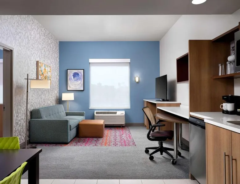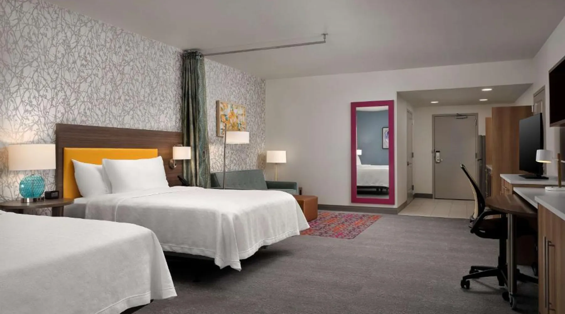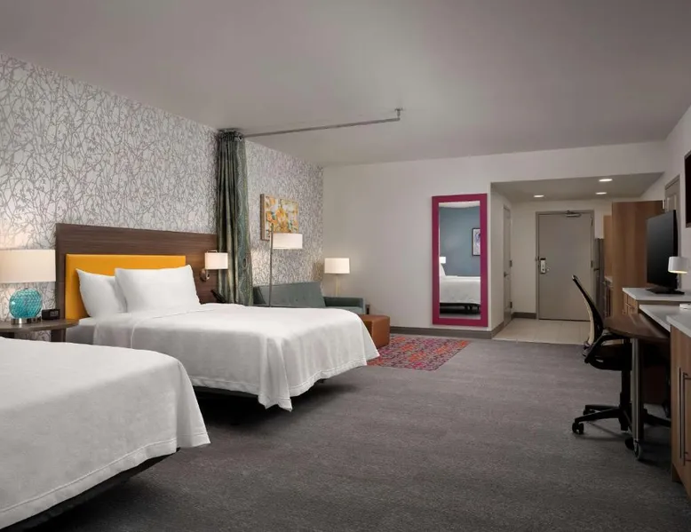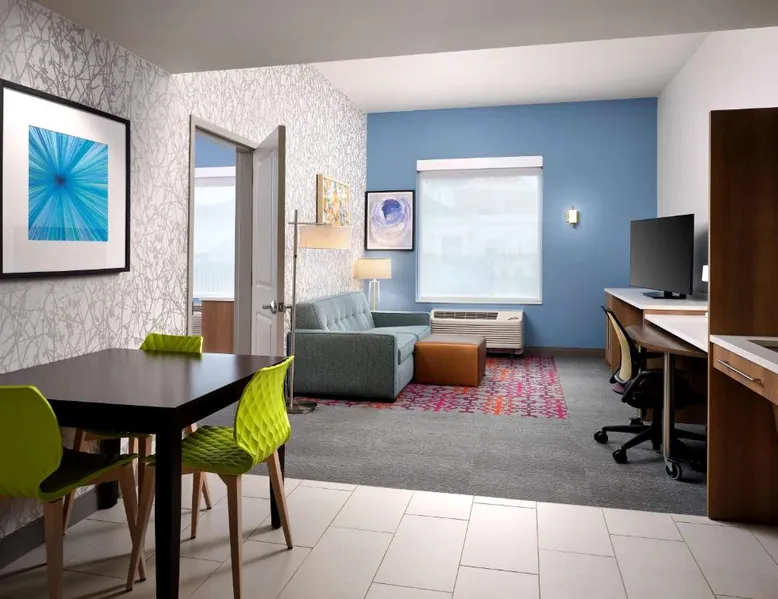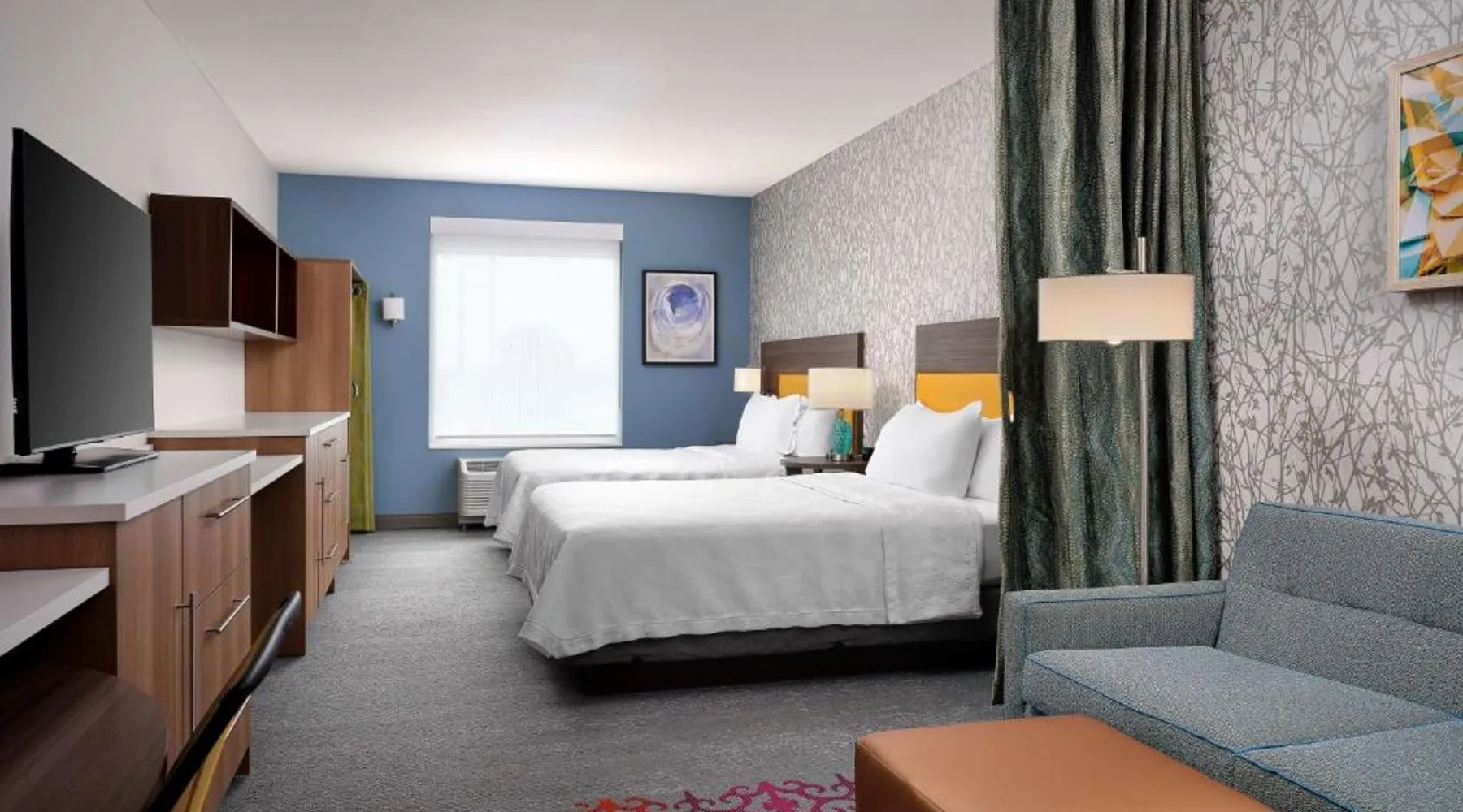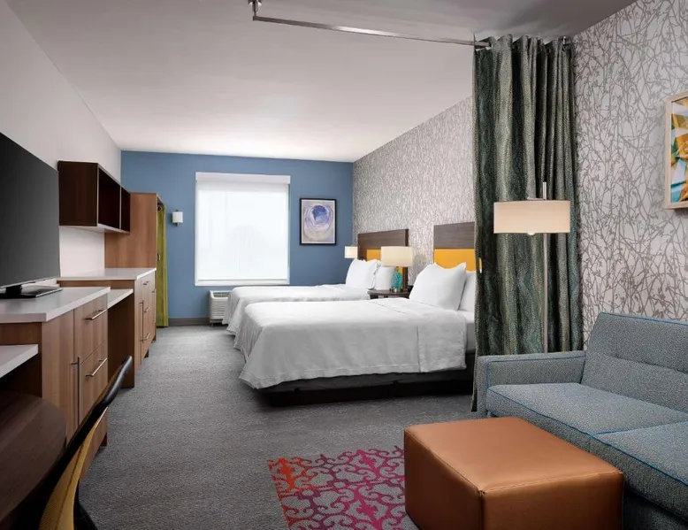 Comfortable Accommodations: Home2 Suites By Hilton Fishers Indianapolis Northeast in Fishers offers air-conditioned rooms with free WiFi, sofa beds, and work desks. Each room includes a refrigerator, microwave, dishwasher, and TV. Leisure Facilities: Guests can enjoy a saltwater swimming pool, indoor pool, and fitness center. Additional amenities include an outdoor fireplace, outdoor seating area, and electric vehicle charging station. Dining Options: A continental buffet breakfast is served daily, featuring warm dishes and juice. The on-site lounge provides a relaxing space for guests. Prime Location: Located 16 mi from Lucas Oil Stadium and 17 mi from Indianapolis Motor Speedway, the hotel is near attractions such as the Children's Museum of Indianapolis and Indianapolis Museum of Art. This suite is air-conditioned and features a TV with cable channels, a seating area and heating. The unit offers 2 beds.