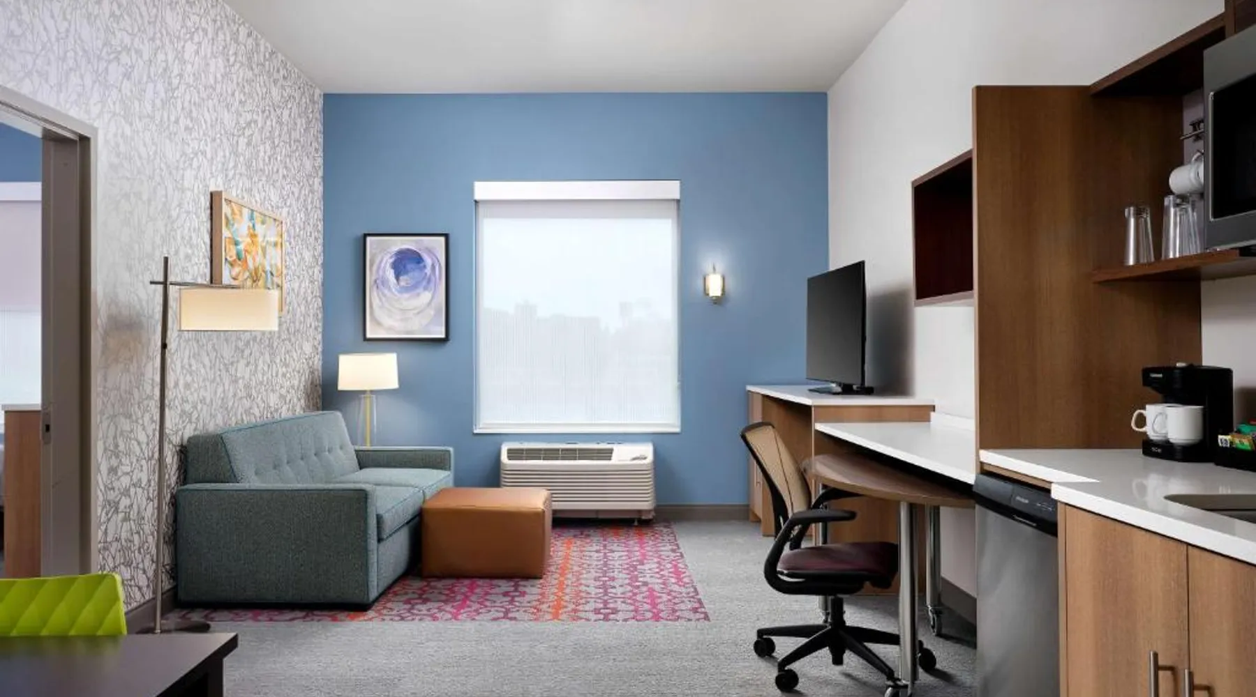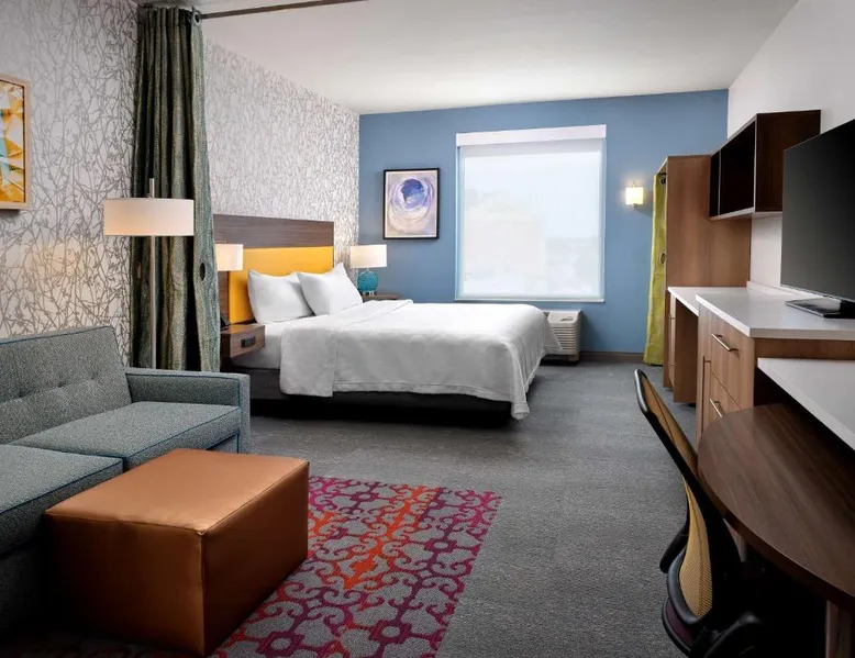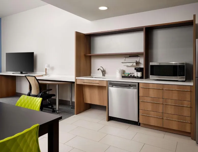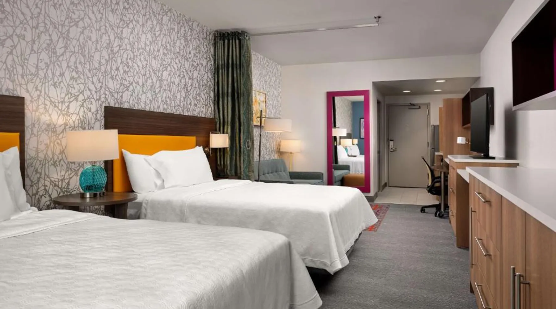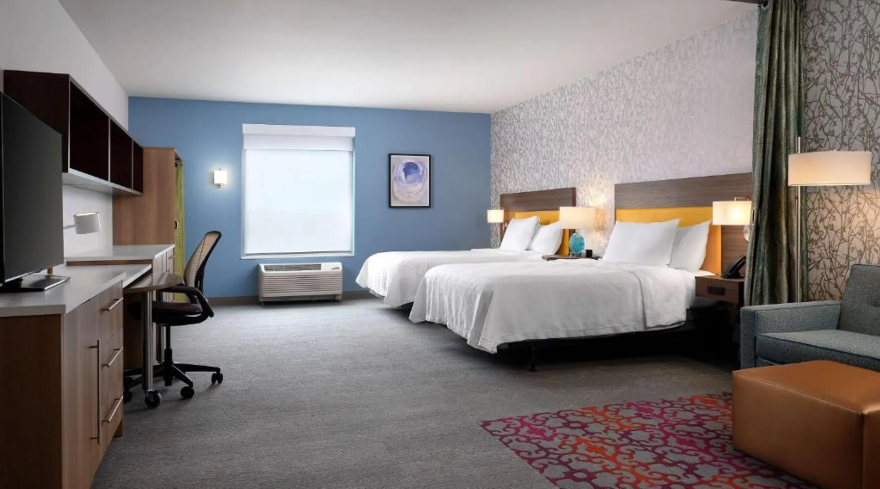 Comfortable Accommodations: Home2 Suites By Hilton Fishers Indianapolis Northeast in Fishers offers air-conditioned rooms with free WiFi, sofa beds, and work desks. Each room includes a refrigerator, microwave, dishwasher, and TV. Leisure Facilities: Guests can enjoy a saltwater swimming pool, indoor pool, and fitness center. Additional amenities include an outdoor fireplace, outdoor seating area, and electric vehicle charging station. Dining Options: A continental buffet breakfast is served daily, featuring warm dishes and juice. The on-site lounge provides a relaxing space for guests. Prime Location: Located 16 mi from Lucas Oil Stadium and 17 mi from Indianapolis Motor Speedway, the hotel is near attractions such as the Children's Museum of Indianapolis and Indianapolis Museum of Art. This suite is air-conditioned and features a TV with cable channels, a seating area and heating. The unit offers 2 beds.