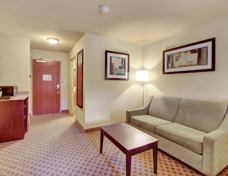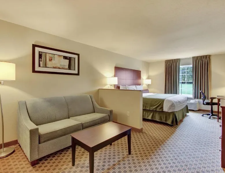 Comfortable Accommodations: Cobblestone Hotel & Suites - Waynesboro in Rouzerville offers comfortable rooms with air-conditioning, private bathrooms, and free WiFi. Each room includes a refrigerator, microwave, and work desk. Exceptional Facilities: Guests can enjoy a fitness center, sun terrace, and garden. The hotel features a bar and lounge, perfect for relaxation. Additional amenities include a minimarket, business area, and free on-site private parking. Delicious Breakfast: A continental, American, or buffet breakfast is served daily, including warm dishes, fresh pastries, fruits, and juice. Prime Location: Located 14 mi from Hagerstown Regional Airport, the hotel is near attractions such as Mount St Mary S College And Seminary (16 mi) and Waynesboro Theater (3.1 mi). Guests appreciate the room cleanliness, convenient location, and quietness of the area. The unit offers 1 bed.