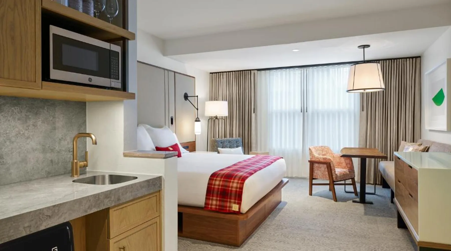 Within walking distance of Aspen Mountain, Limelight Hotel features guest rooms with free Wi-Fi and 32-inch flat-screen cable TVs. This Colorado hotel has an outdoor pool, hot tub and rooftop terrace. The guest rooms provide iPod docking stations and laptop safes. They also have seating areas, desks and ironing facilities. Limelight Hotel serves breakfast and offers a ski guide service and gym. A business center and meeting rooms are also available. The Limelight Hotel is in a great location across from Wagner Park and is less than a half mile from Aspen Art Museum. It is 3 miles from Buttermilk Mountain Ski Area and 10 miles from Krabloonik Dogsled Rides. This spacious room offers a fireplace, a terrace with city views, free Wi-Fi, an iPod docking station, and flat-screen TVs, a work desk, a kitchenette with a refrigerator, a microwave and coffee-making facilities. Contemporary mountain décor and an private bathroom with plush robes is also included.