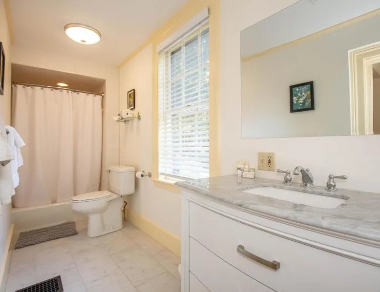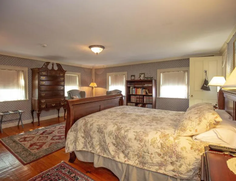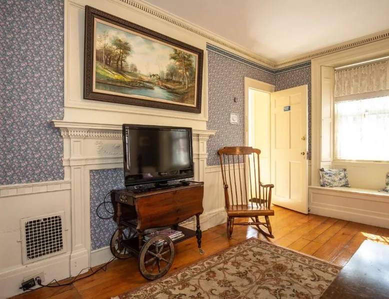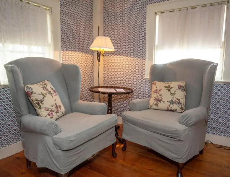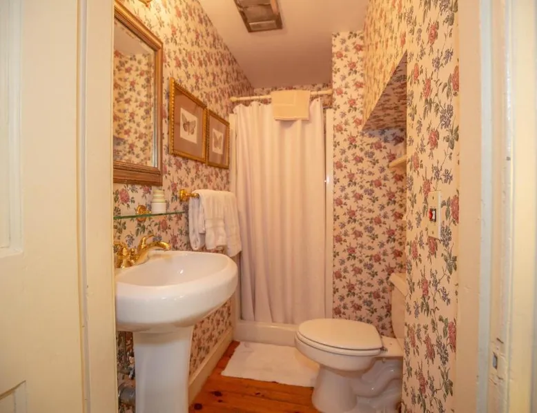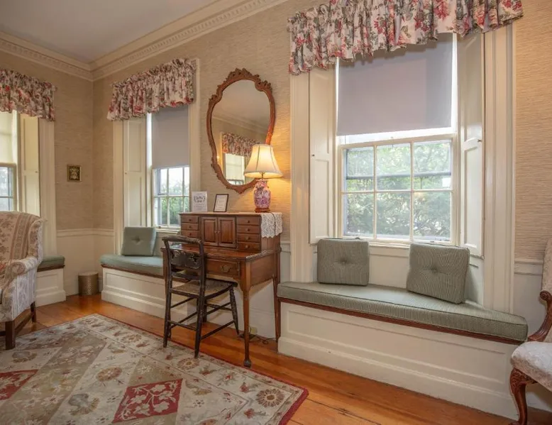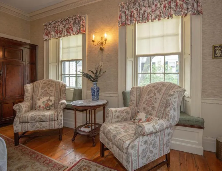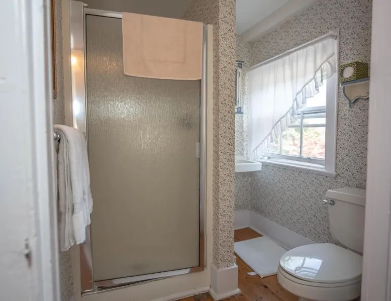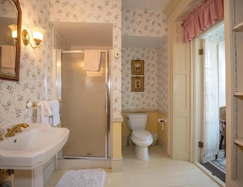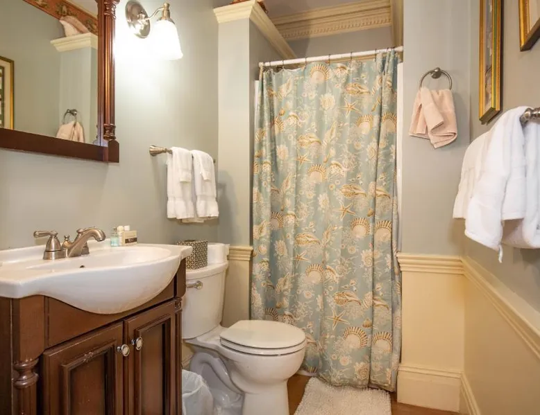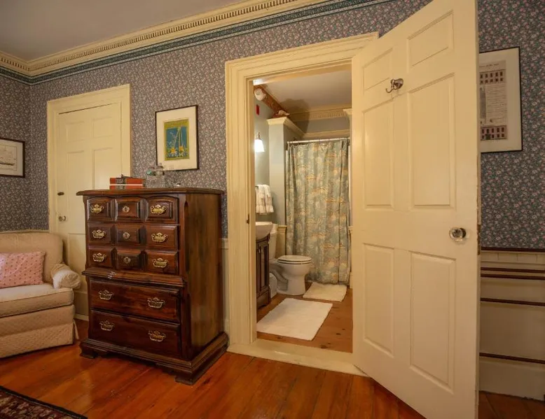 Housed in an historic building, this bed and breakfast is located in Newburyport, Massachuesttes, just 5 minutes’ walk from Waterfront Promenade Park on the Merrimack River. Free WiFi access is provided. Air conditioning is provided in each room at Clark Currier Inn. A private bathroom is also included and guests are offered towels and bed linens. Guests of the Clark Currier Inn can relax in the on-site garden, which features a gazebo. A parlor and a library are also available for guests who prefer to stay indoors, where they will find curated works of art throughout the building. The Newburyport town center is just 3 minutes’ walk from the B&B. Guests will find numerous dining options here, including Mission Oak Grill and Agave Mexican Bistro. The Custom House Maritime Museum is 2625 feet from Clark Currier Inn. Salisbury Beach State Reservation is 10 minutes’ drive away. This room room features an enclosed porch off the bathroom. It has cushioned window seats and colonial shutters. Antique photographs adorn the walls.