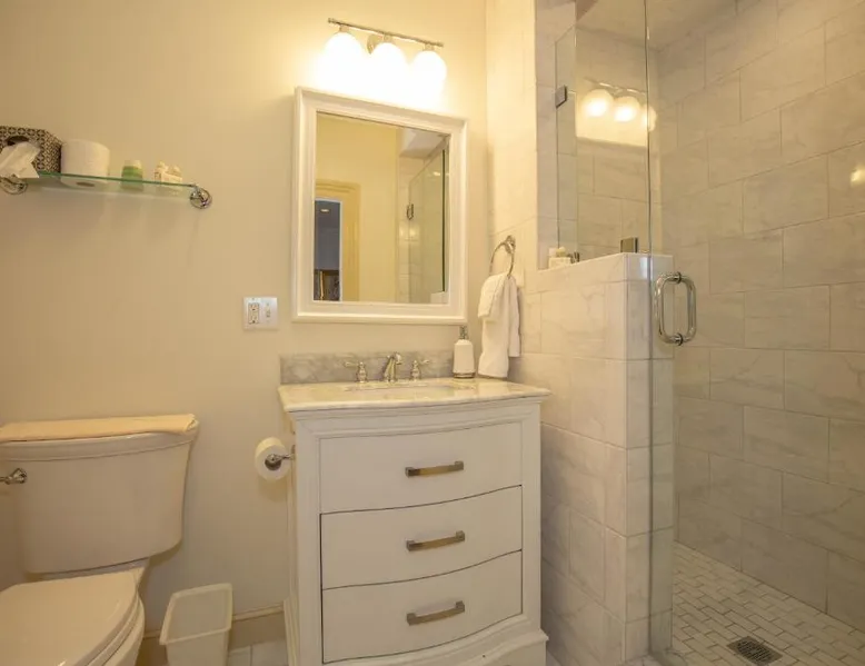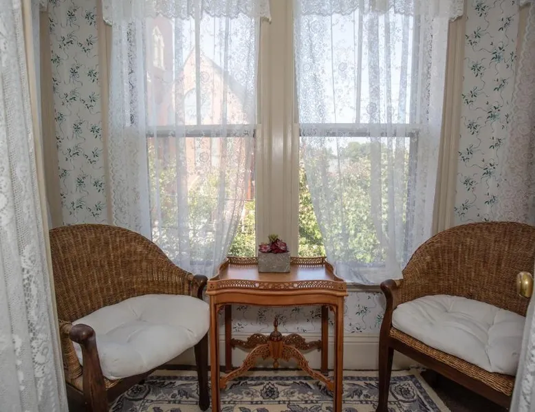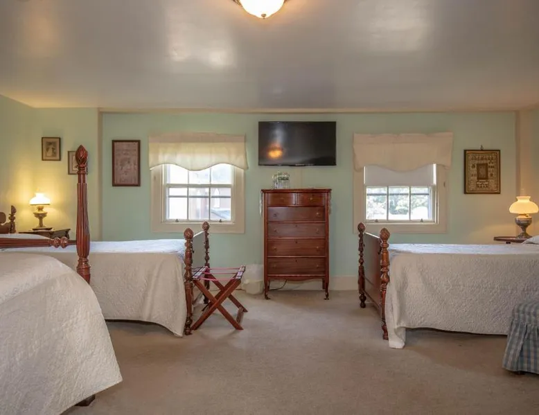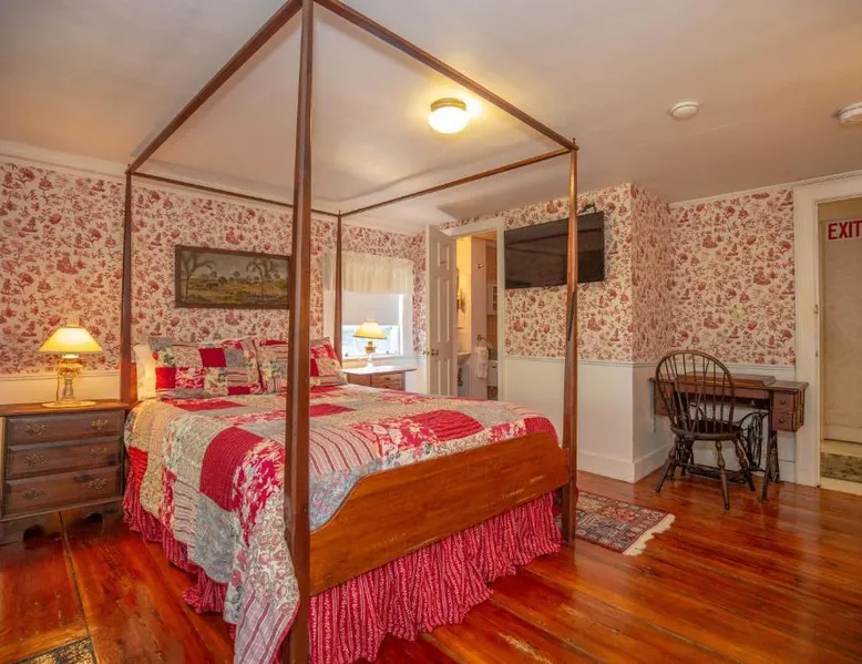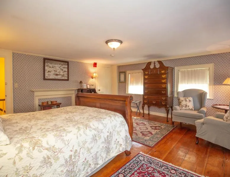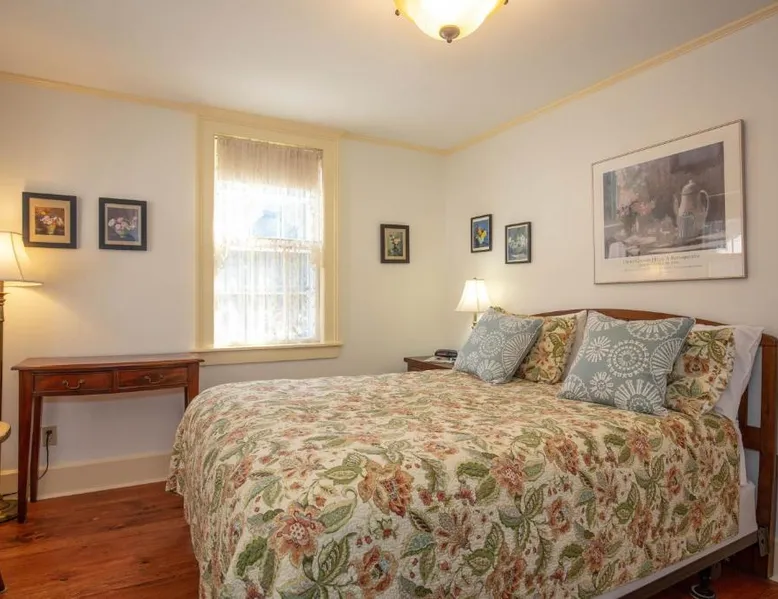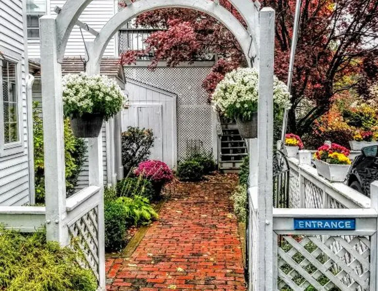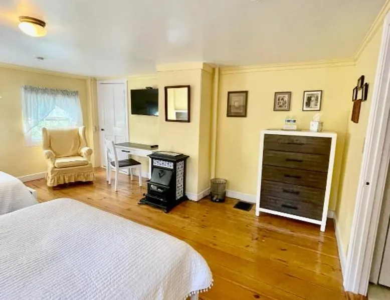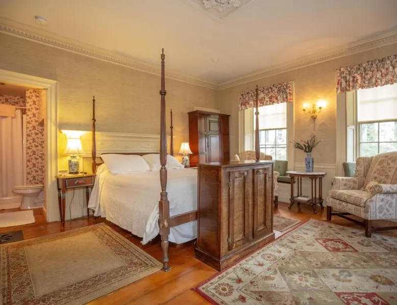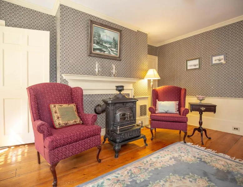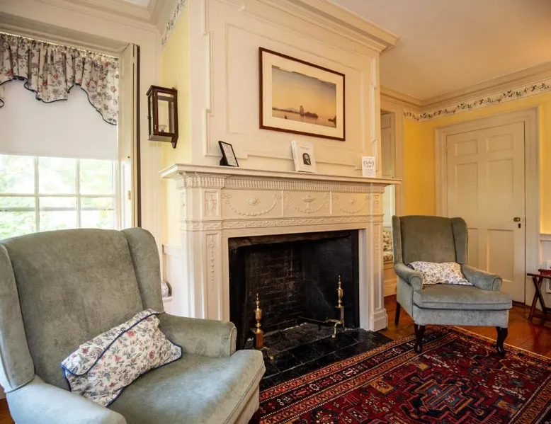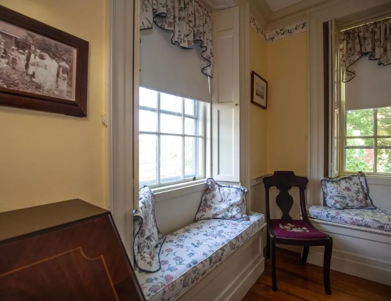 Housed in an historic building, this bed and breakfast is located in Newburyport, Massachuesttes, just 5 minutes’ walk from Waterfront Promenade Park on the Merrimack River. Free WiFi access is provided. Air conditioning is provided in each room at Clark Currier Inn. A private bathroom is also included and guests are offered towels and bed linens. Guests of the Clark Currier Inn can relax in the on-site garden, which features a gazebo. A parlor and a library are also available for guests who prefer to stay indoors, where they will find curated works of art throughout the building. The Newburyport town center is just 3 minutes’ walk from the B&B. Guests will find numerous dining options here, including Mission Oak Grill and Agave Mexican Bistro. The Custom House Maritime Museum is 2625 feet from Clark Currier Inn. Salisbury Beach State Reservation is 10 minutes’ drive away. This room room features an enclosed porch off the bathroom. It has cushioned window seats and colonial shutters. Antique photographs adorn the walls.
