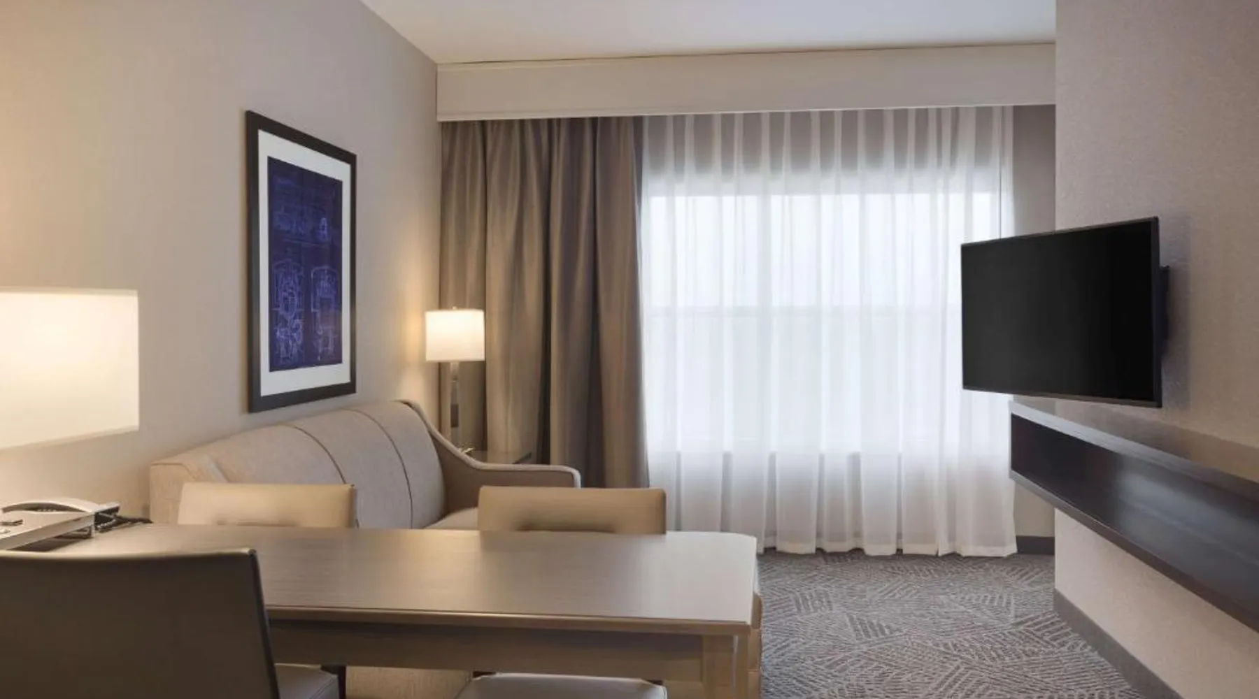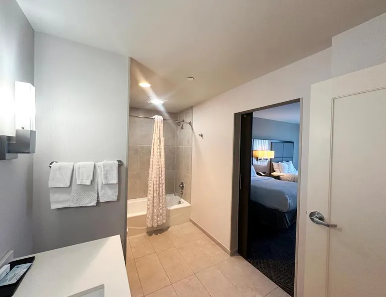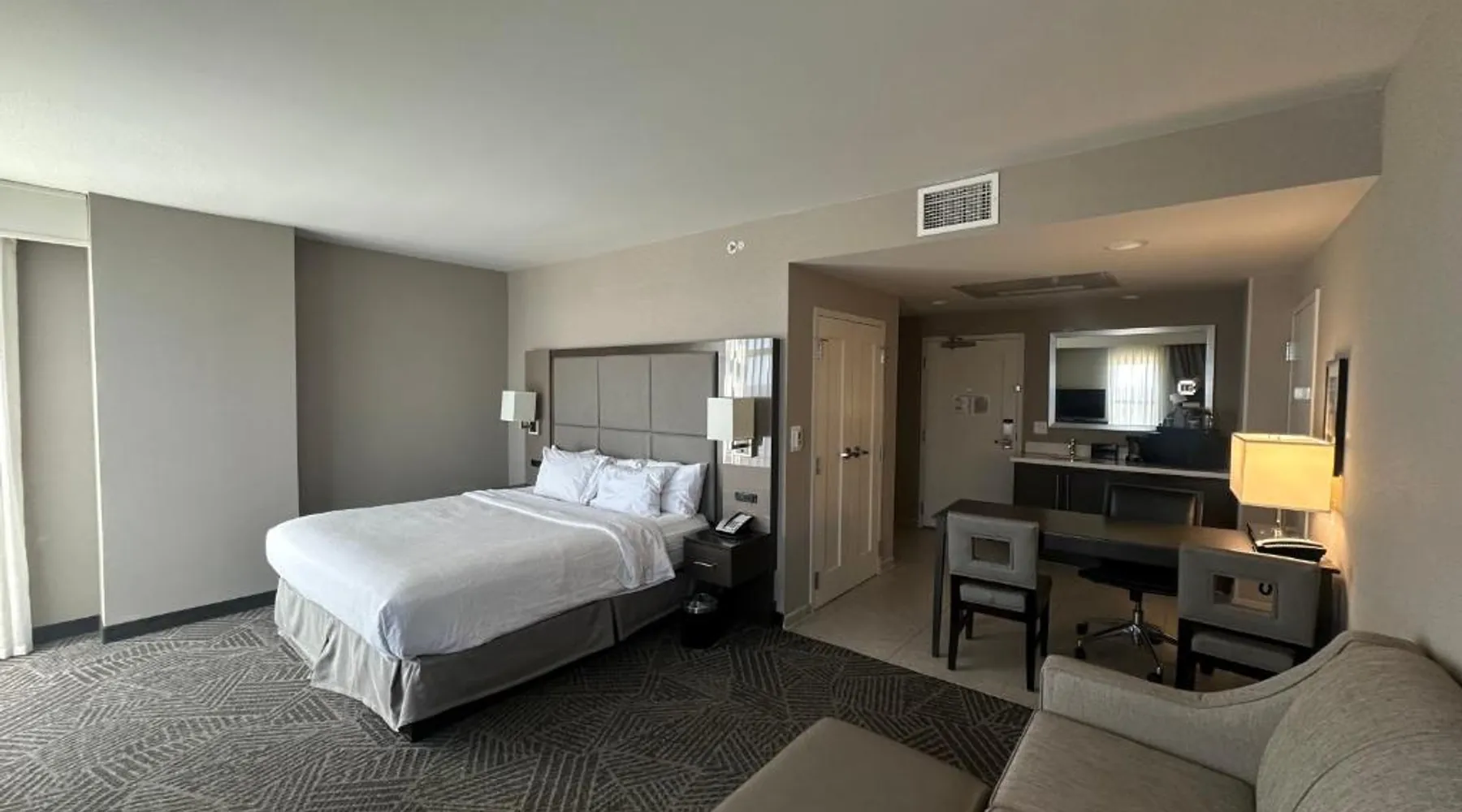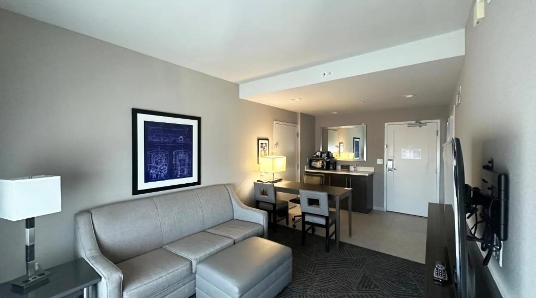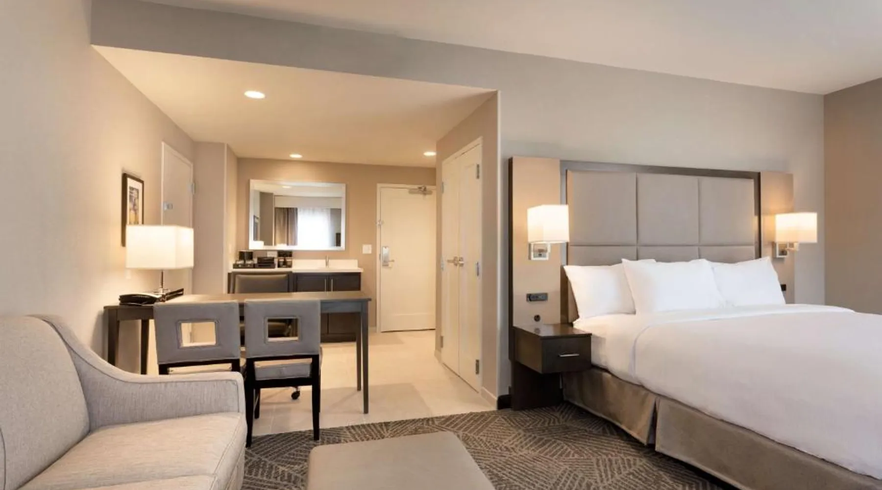Comfortable Accommodations: Rooms feature air-conditioning, free WiFi, sofa beds, and work desks. Additional amenities include free toiletries, microwaves, and TVs. Dining and Leisure: The family-friendly restaurant serves American cuisine with a buffet breakfast. Guests can also enjoy the indoor swimming pool, fitness center, terrace, and bar. Convenient Location: Located in Olathe, the hotel is 29 mi from Kansas City International Airport. Nearby attractions include the National World War I Museum at Liberty Memorial (18 mi) and Union Station Kansas City (19 mi). Guest Services: The property offers a 24-hour front desk, free on-site parking, room service, and a business area. Additional facilities include a hot tub, fitness room, and minimarket. This suite is air-conditioned and features a flat-screen TV with cable channels, a seating area and a safe deposit box. The unit offers 2 beds.