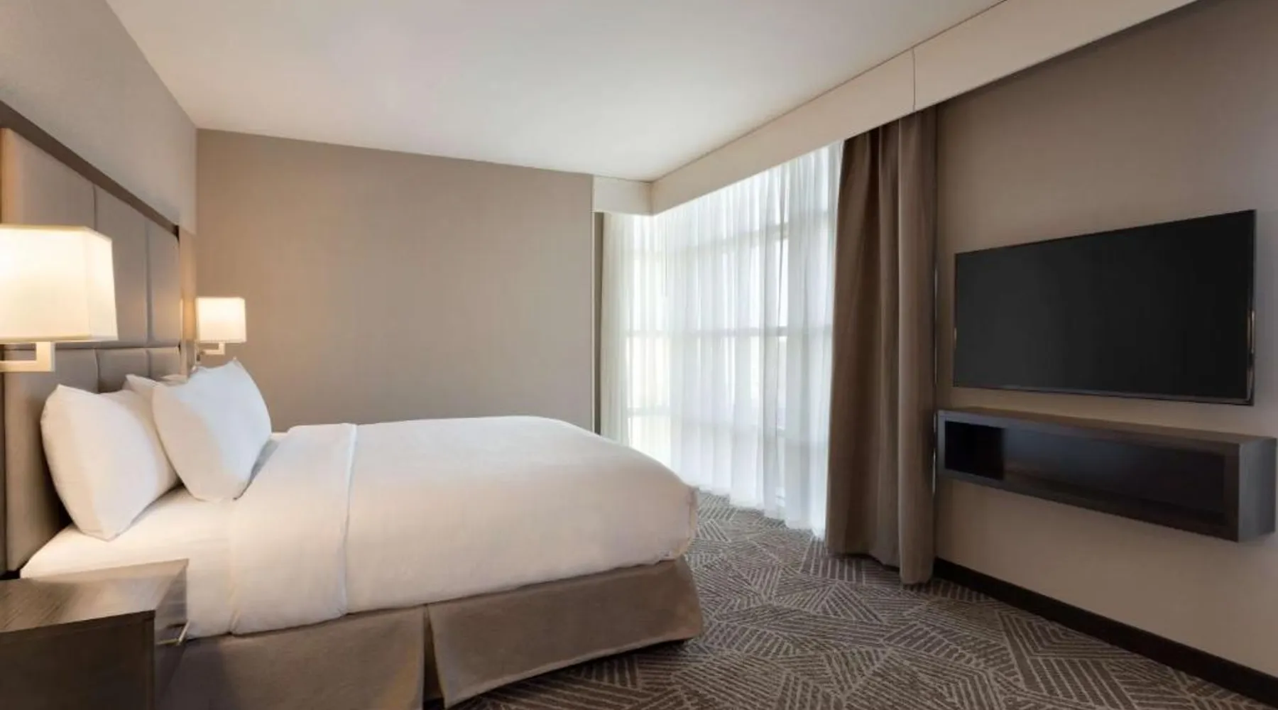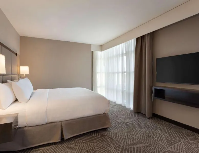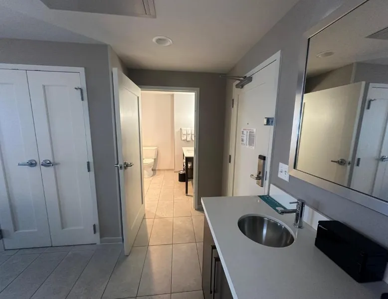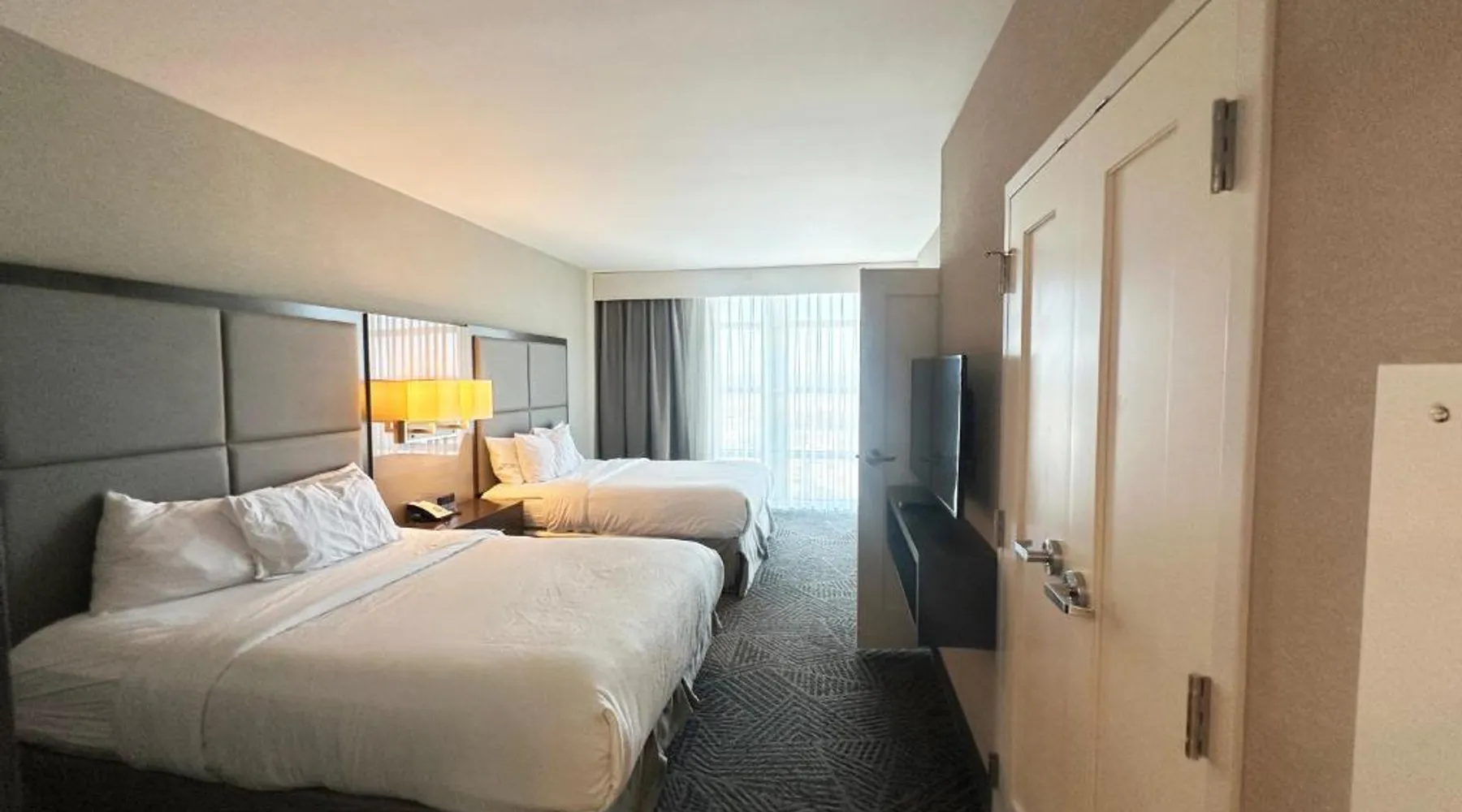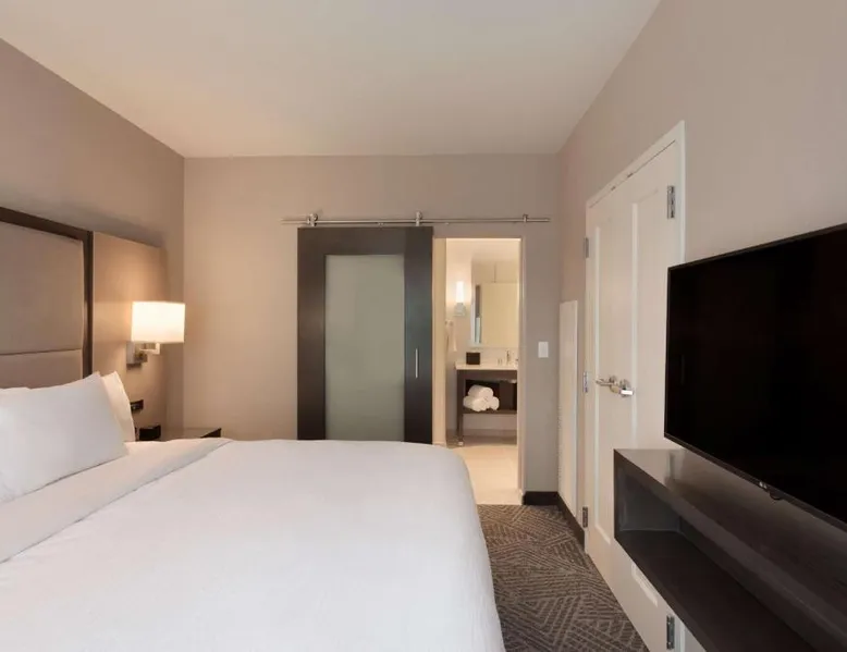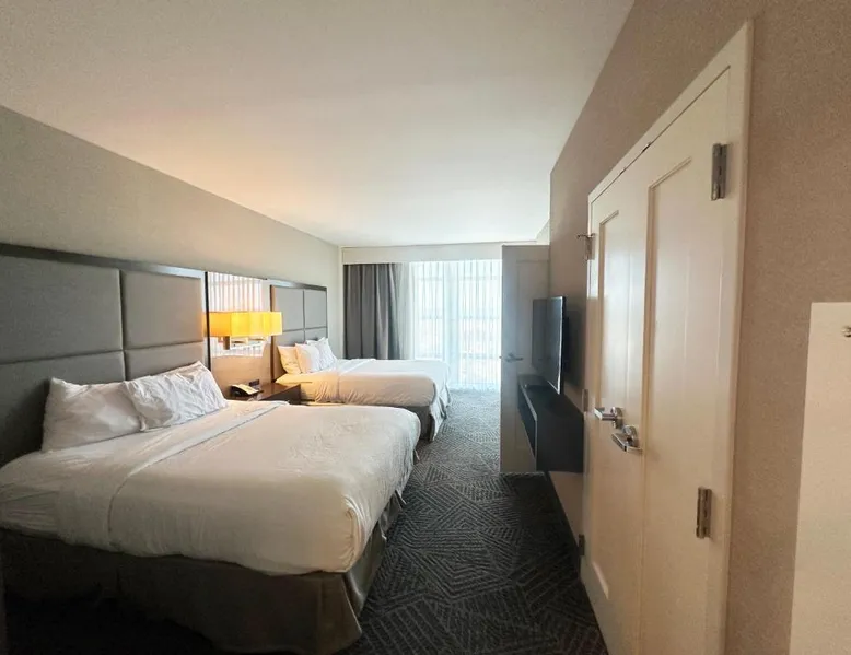 Comfortable Accommodations: Rooms feature air-conditioning, free WiFi, sofa beds, and work desks. Additional amenities include free toiletries, microwaves, and TVs. Dining and Leisure: The family-friendly restaurant serves American cuisine with a buffet breakfast. Guests can also enjoy the indoor swimming pool, fitness center, terrace, and bar. Convenient Location: Located in Olathe, the hotel is 29 mi from Kansas City International Airport. Nearby attractions include the National World War I Museum at Liberty Memorial (18 mi) and Union Station Kansas City (19 mi). Guest Services: The property offers a 24-hour front desk, free on-site parking, room service, and a business area. Additional facilities include a hot tub, fitness room, and minimarket. This suite is air-conditioned and features a flat-screen TV with cable channels, a seating area and a safe deposit box. The unit offers 2 beds.