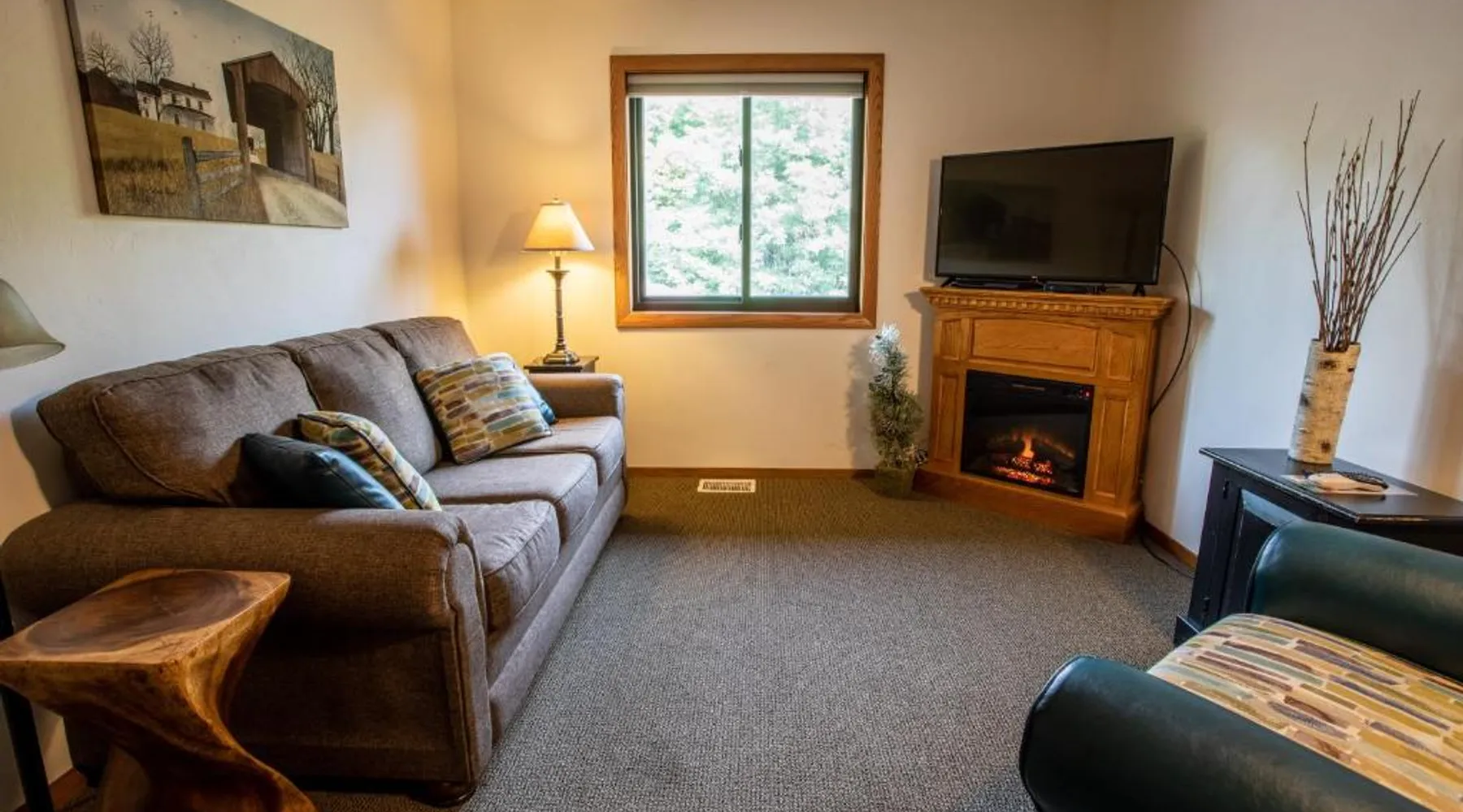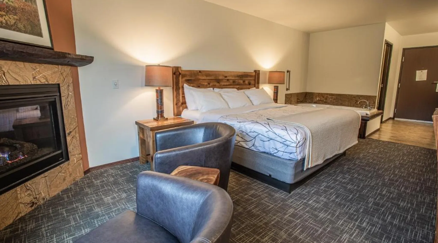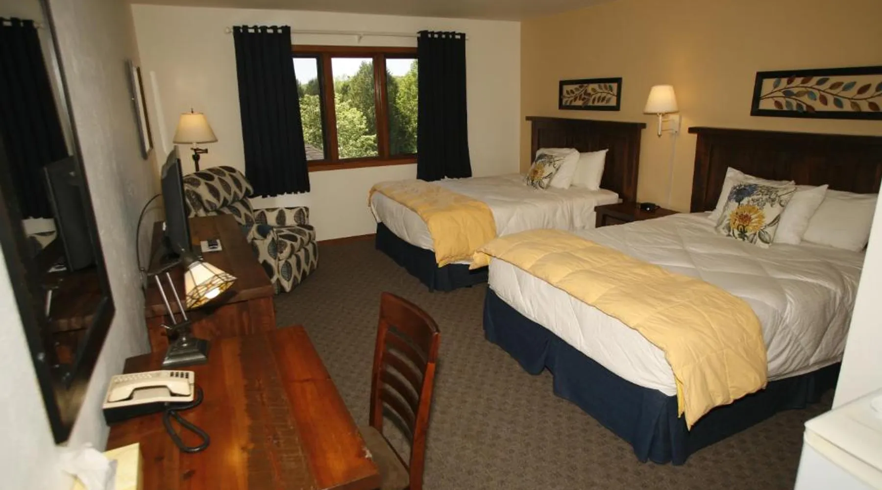 Featuring an indoor pool and hot tub, Open Hearth Lodge is located in Door County’s Sister Bay. The town center and access to Lake Michigan are 3 minutes’ drive away. Free WiFi access is available. Cable TV is provided in every air-conditioned room at Open Hearth Lodge. There is also a refrigerator and work desk. Featuring a shower, private bathrooms also come with a bath or shower and a hairdryer. Outdoor BBQ facilities and a fire pit are featured at Sister Bay Open Hearth Lodge. Pet friendly rooms are available in select rooms upon request. Other facilities offered at the property include access to hiking and biking trails and a children’s playground. The property offers free parking. Bay Ridge Golf Course is located across the street from this hotel. Peninsula State Park is 10 minutes’ drive away. Cable TV is included in this room, along with a hairdryer and refrigerator for convenience. Pets are not allowed in this room.