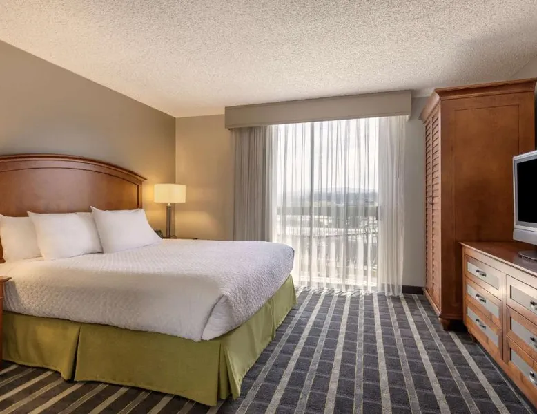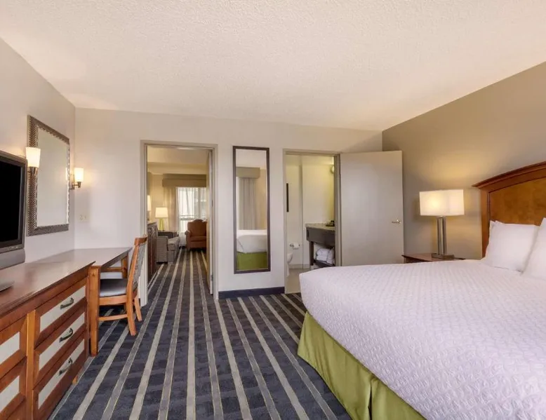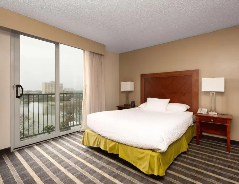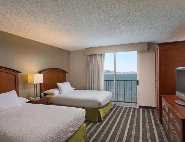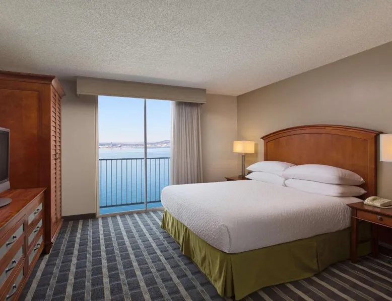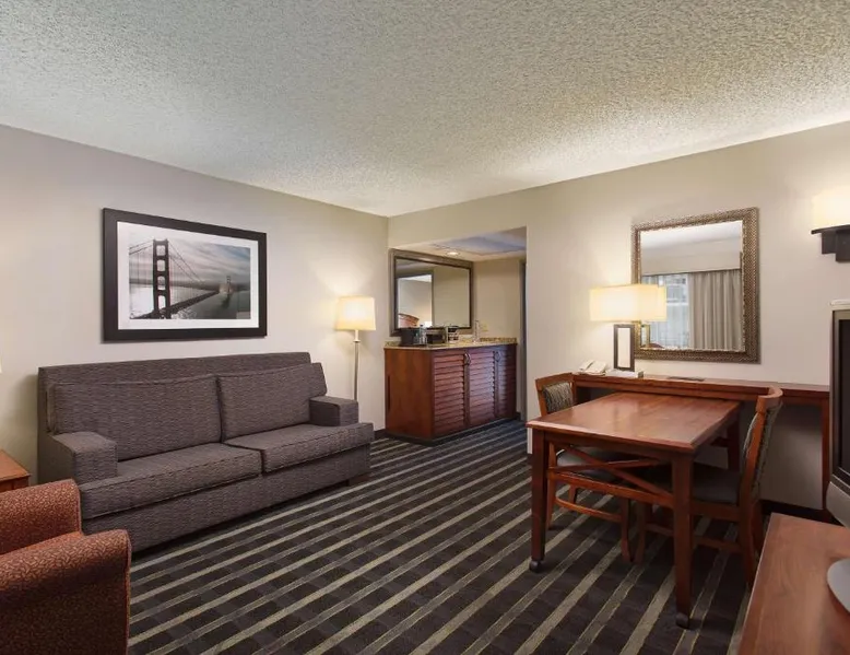 Located on San Francisco Bay, this hotel offers spacious 2-room suites and relaxing services. There is a paid transfer service to San Francisco International Airport, 1.9 mi away. San Francisco Embassy Suites is just minutes from a Bay Area Rapid Transit (BART) rail station. Monster Park, home of the San Francisco 49ers, is just a short drive away. Guests can also easily play a game of golf, visit the Golden Gate Bridge or explore Chinatown. Wake up with a free cooked-to-order breakfast at Embassy Suites San Francisco Airport Waterfront or stop by for refreshments at the nightly manager's reception. This suite features views of the bay and a cable TV. A microwave, small fridge, and coffee and tea-making facilities are also included in this room.